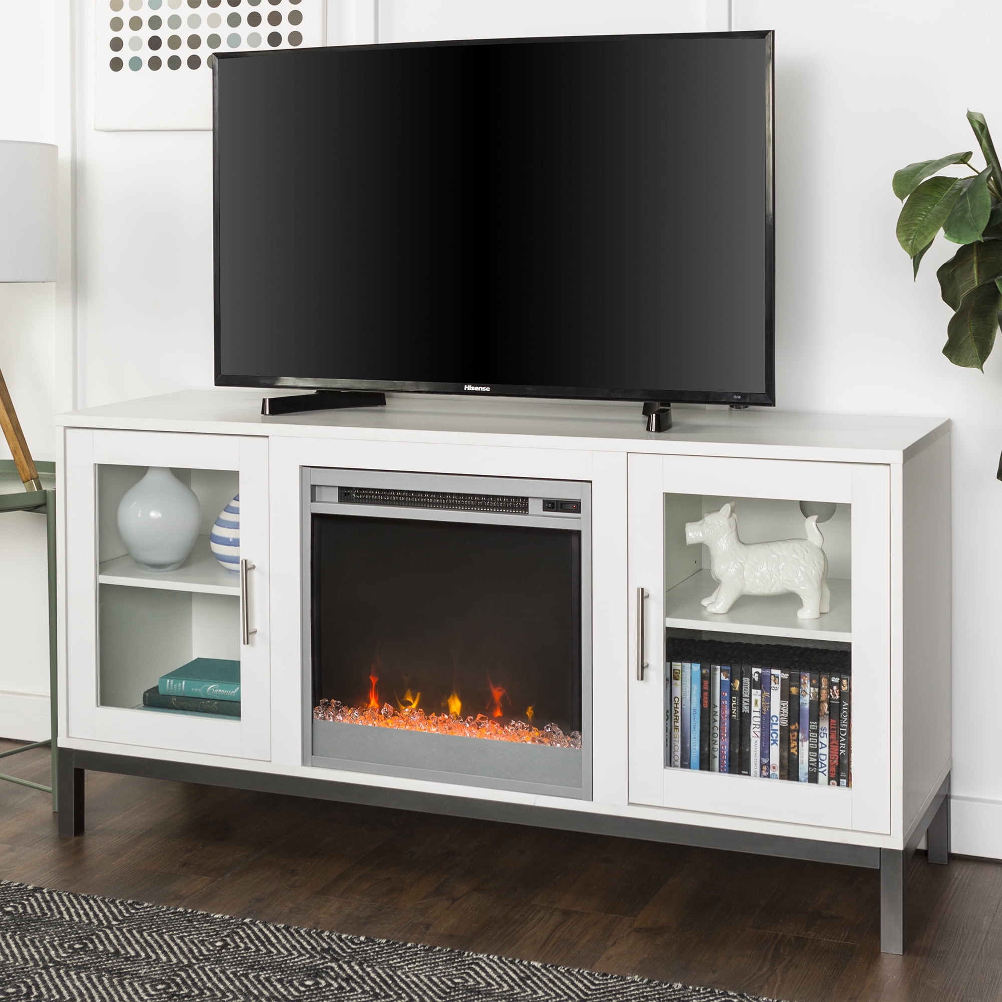Walker Edison Modern Fireplace TV Stand for TVs up to 58″, White