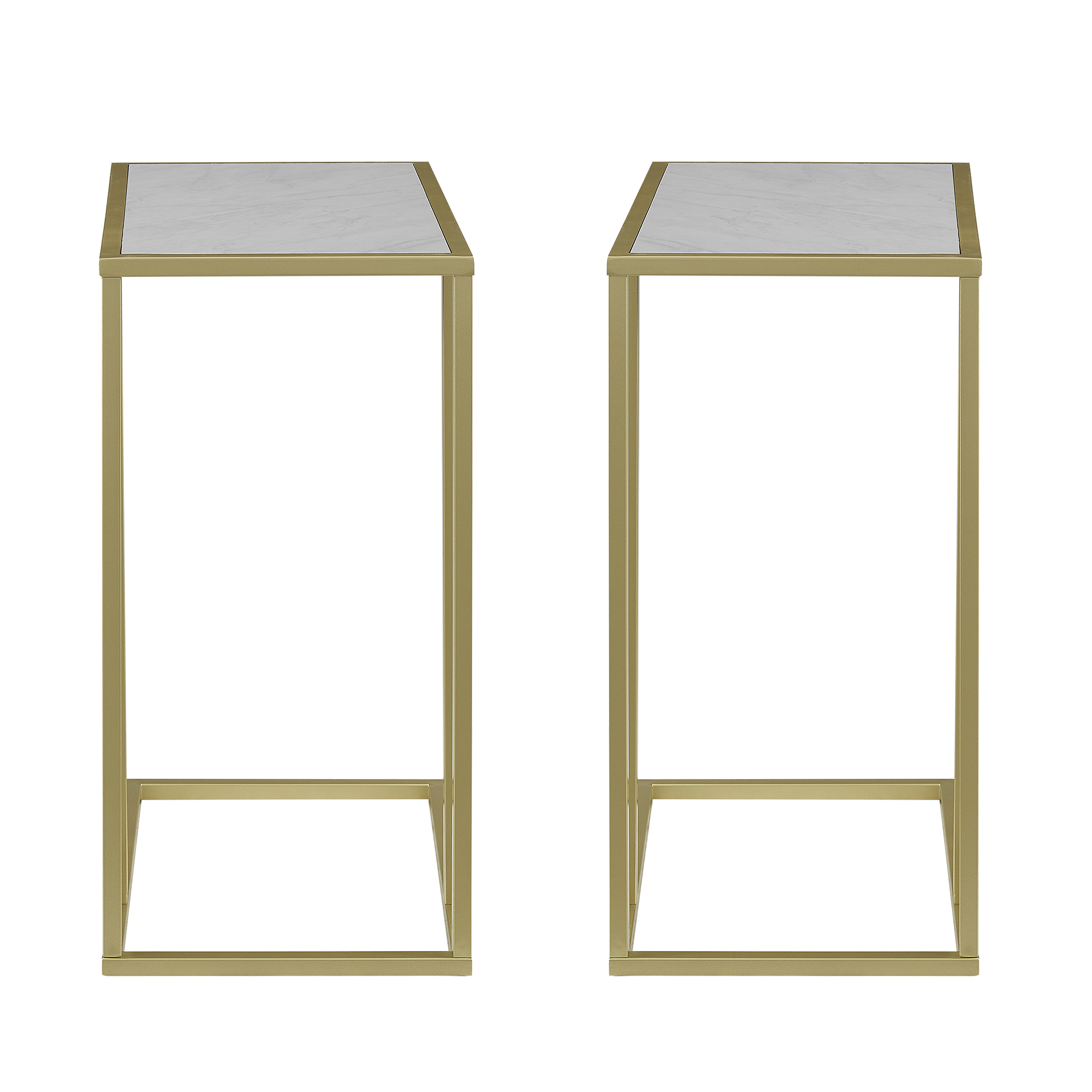 Includes 2 side tables Glam, modern style Faux white marble finish Open C-silhouette Rectangle tabletop Use in any room as a workspace or accent piece Made from warp-resistant MDF wood, durable laminate, and powder-coated steel Ships ready-to-assemble with step-by-step instructions Assembled Dimensions: 24″ H x 11.8″ L x 8″ W Packaged Dimensions: 3” H x 25” L x 16” W