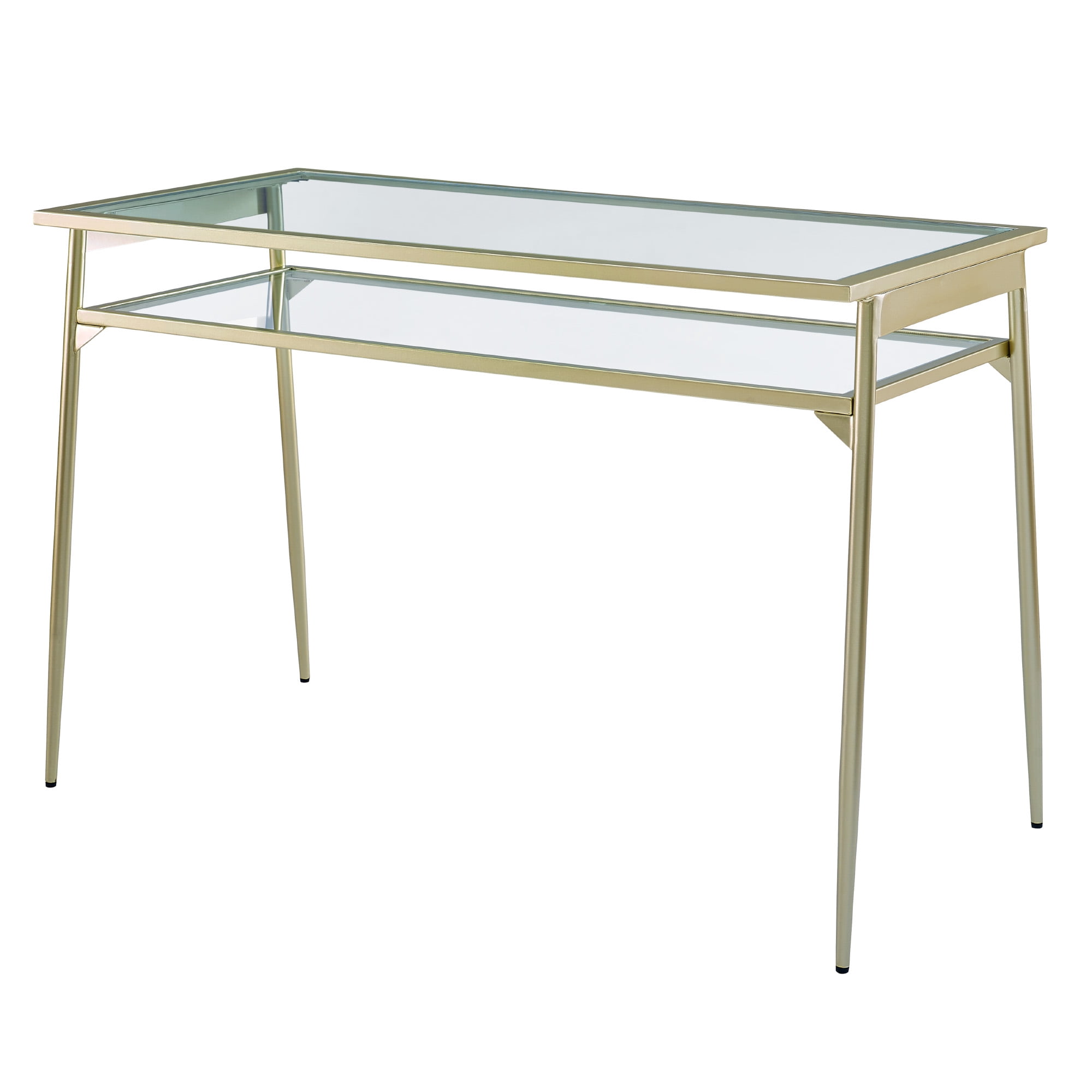 Walker Edison Modern Glass Tiered Writing Desk, Gold