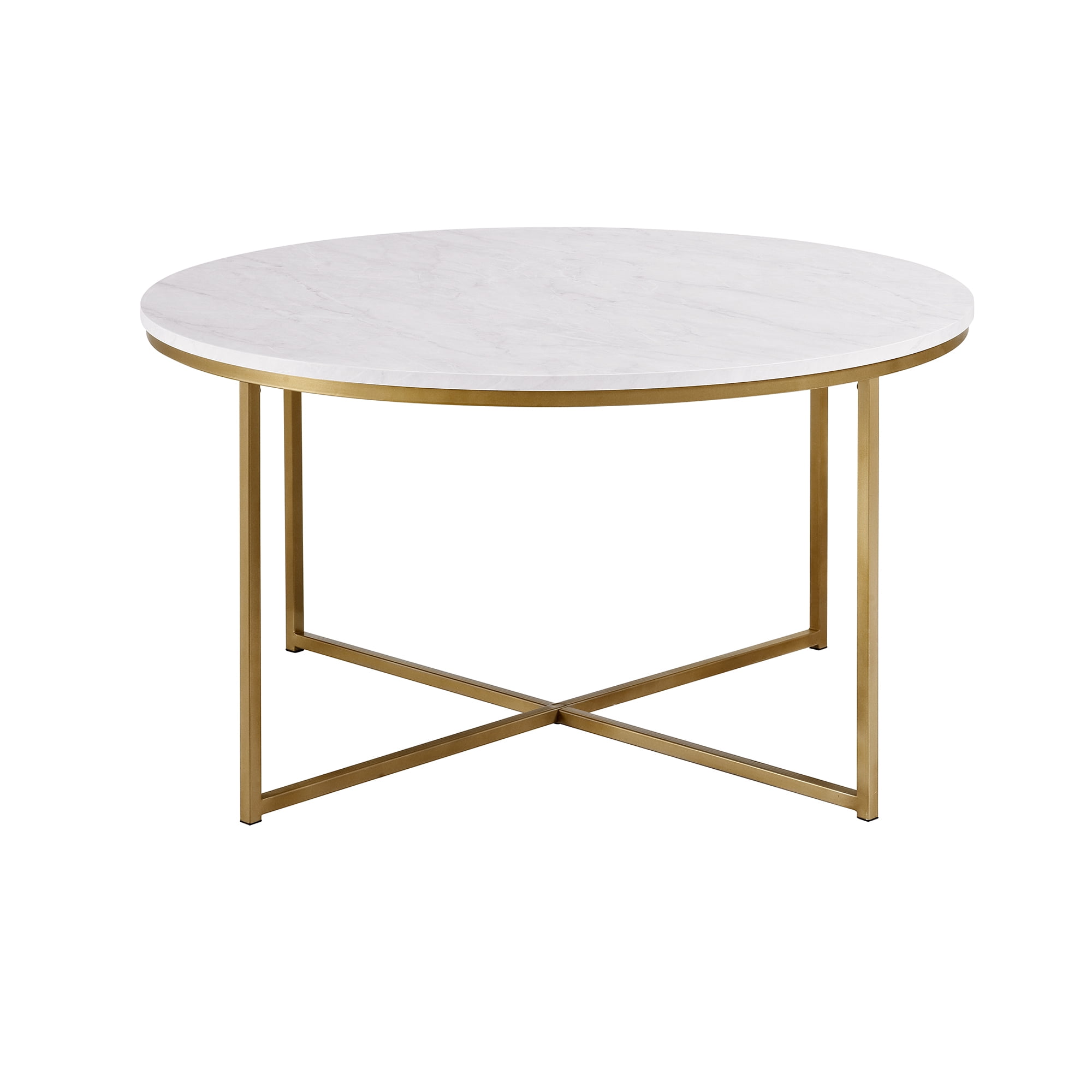 Walker Edison Modern Round Coffee Table, Faux White Marble/Gold