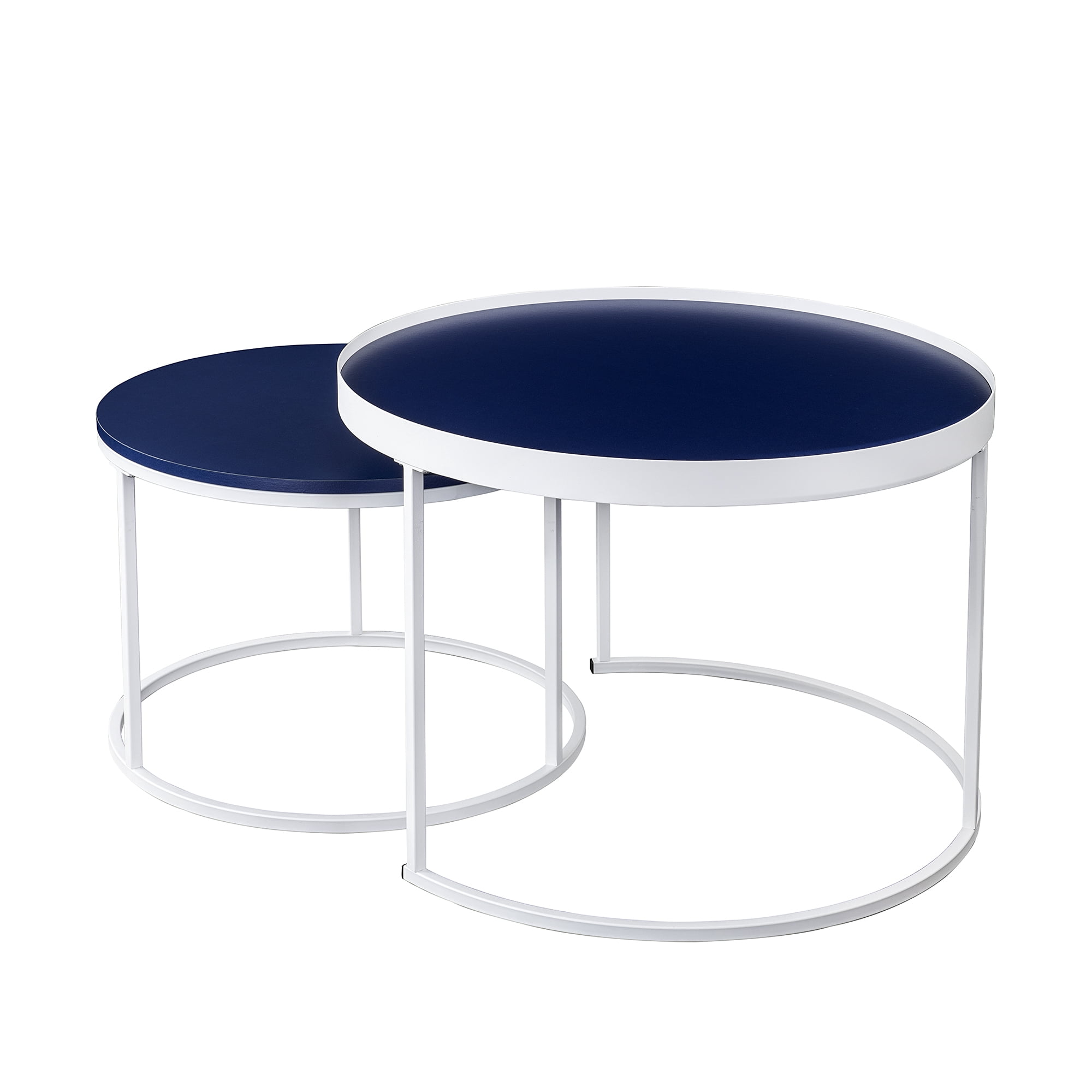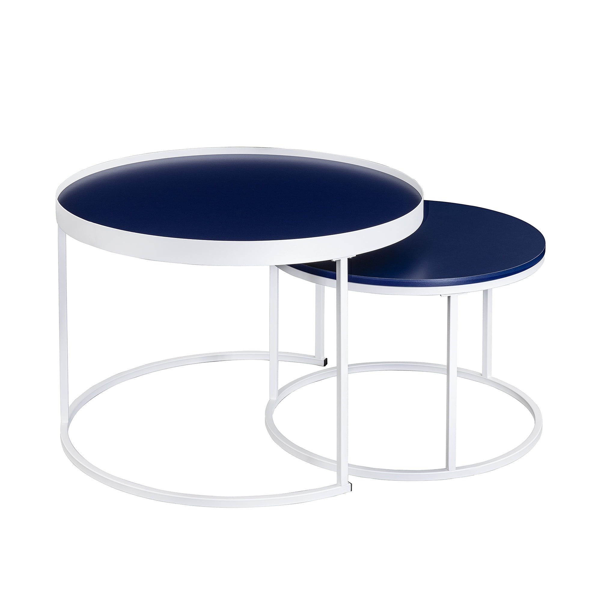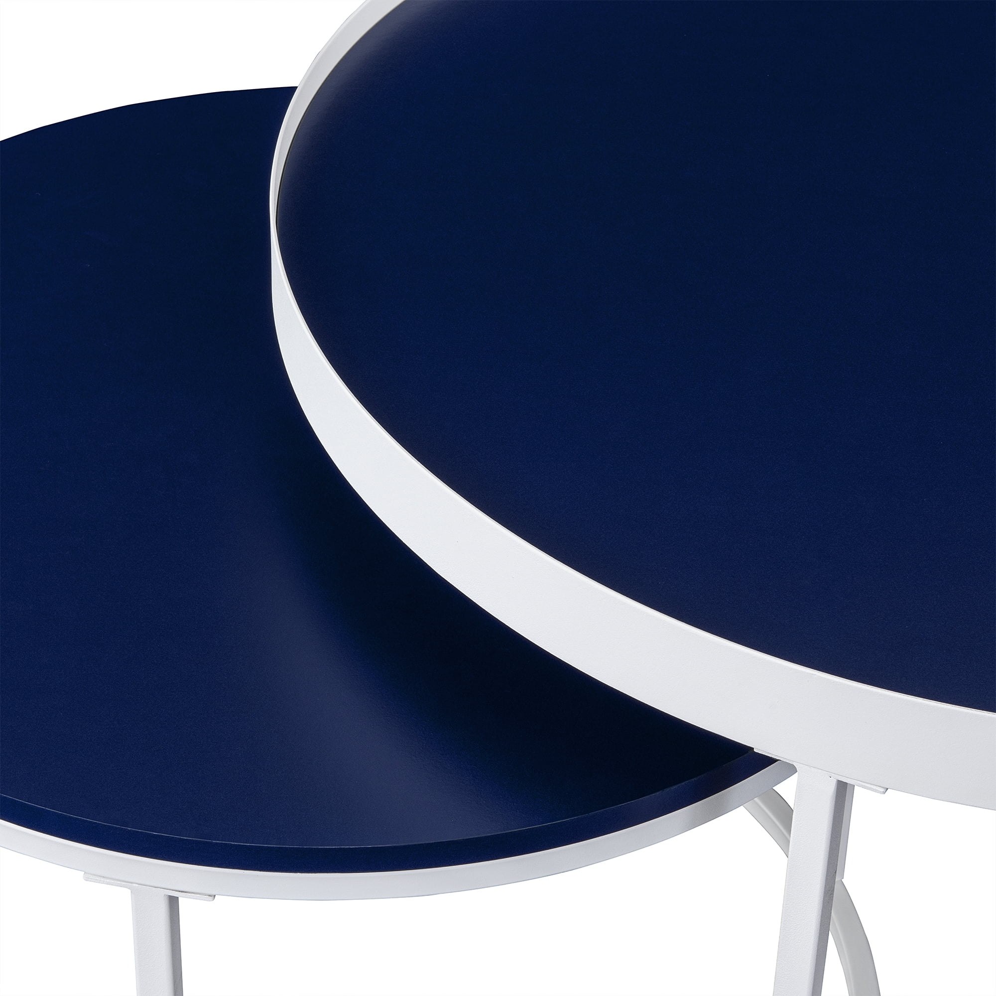 Walker Edison Modern Round Nesting Coffee Tables, Set of 2, White/Blue