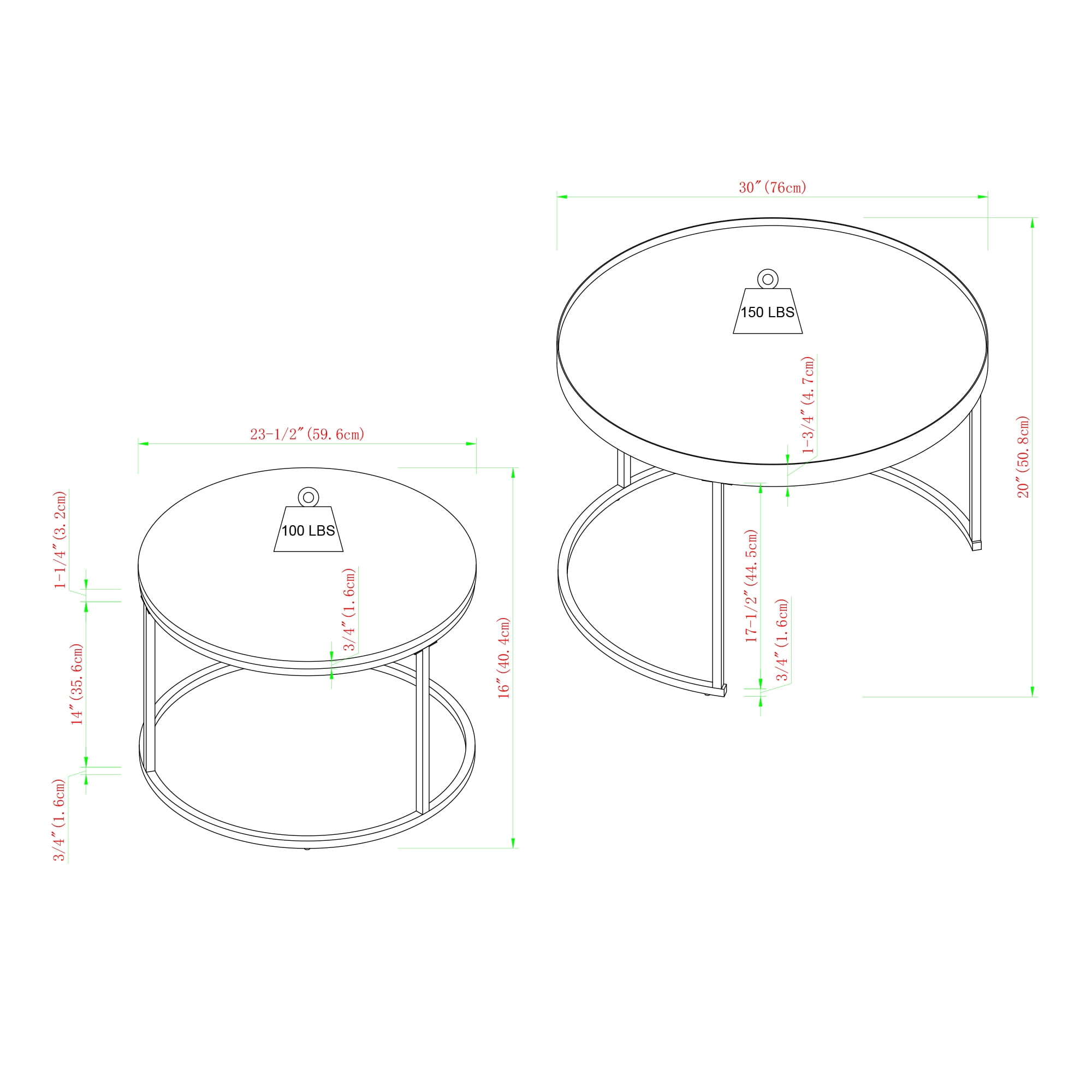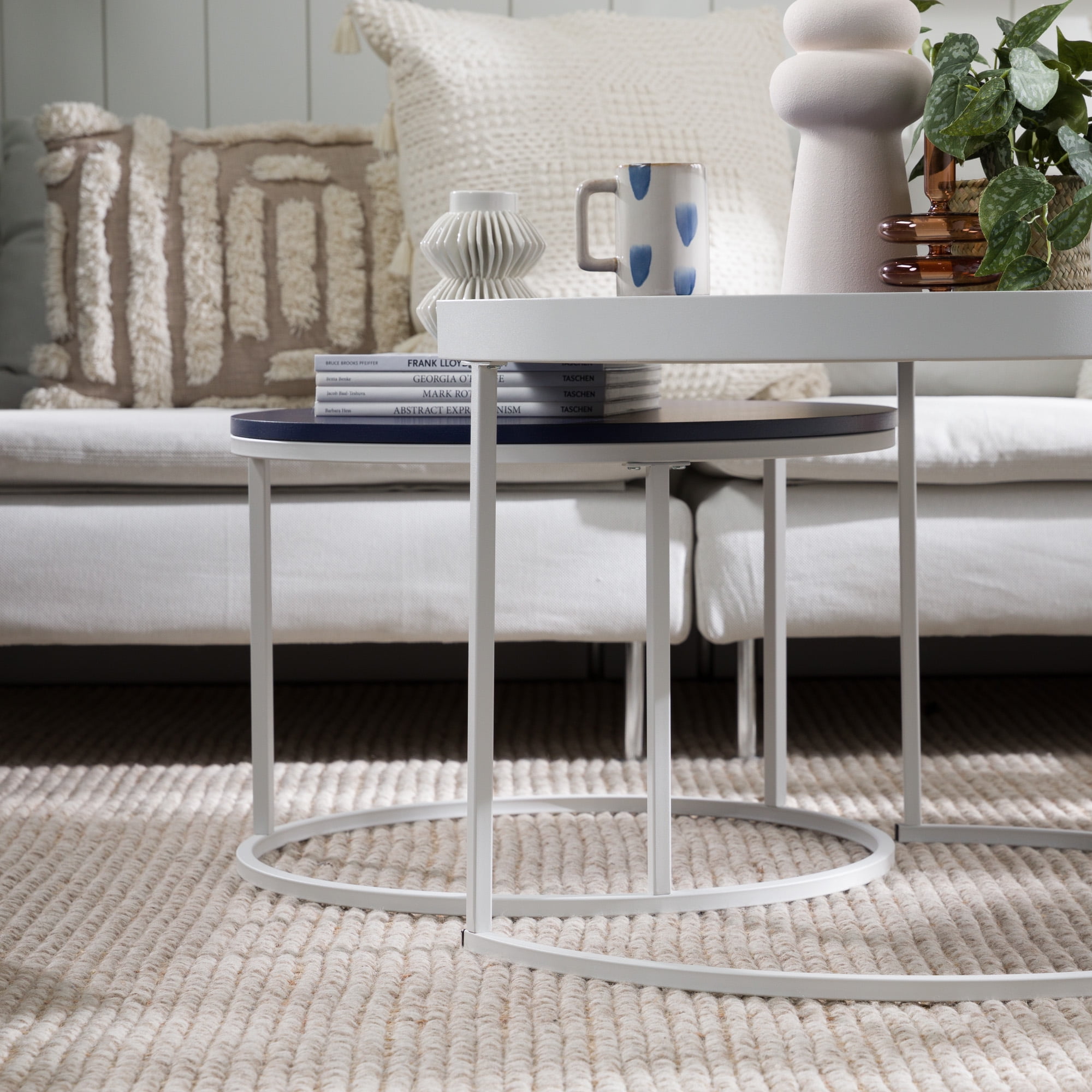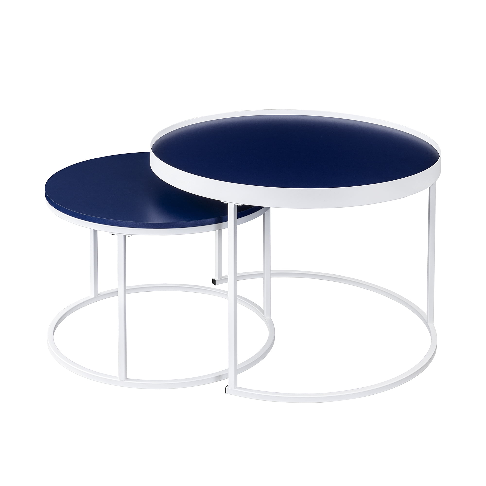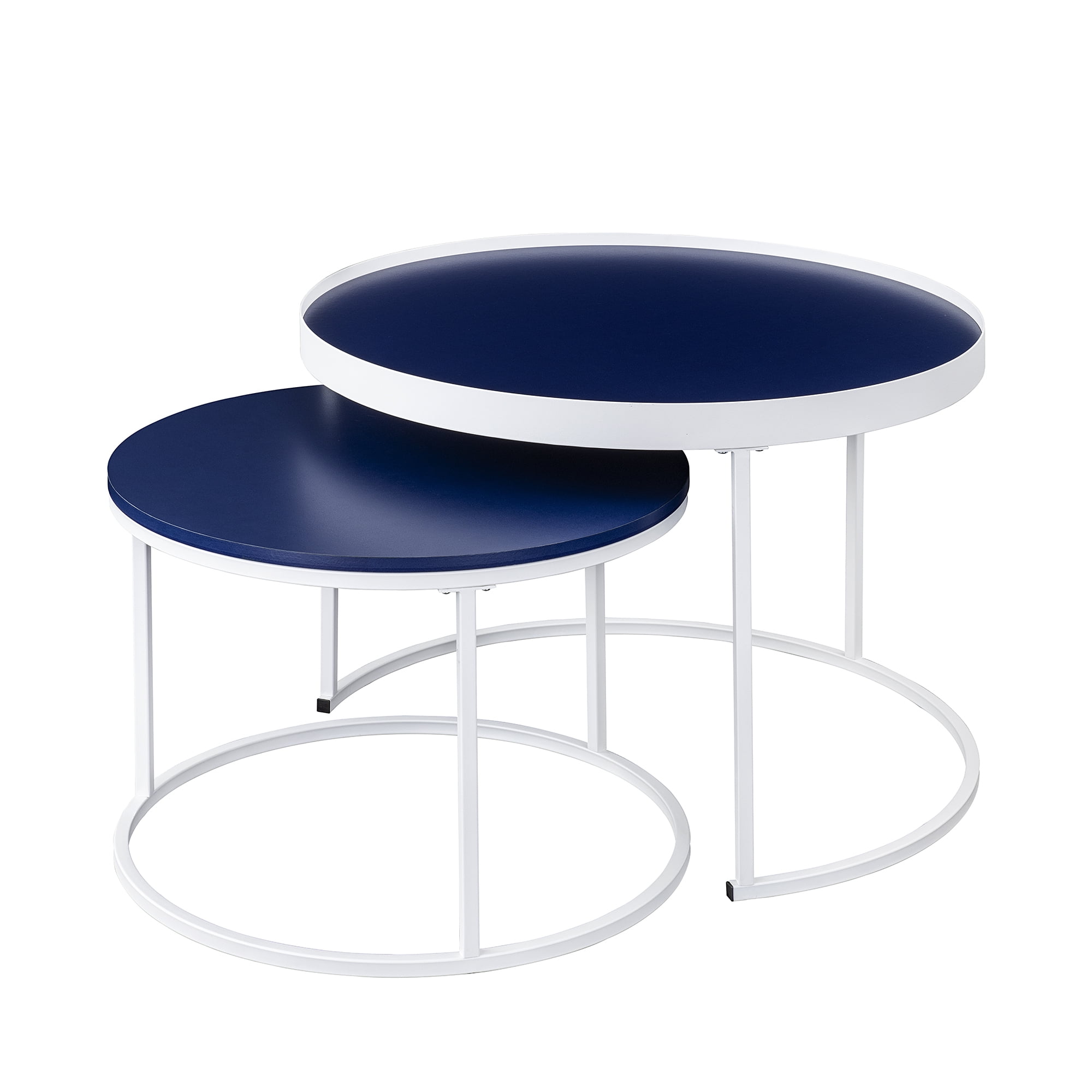 Walker Edison Modern Round Nesting Coffee Tables, Set of 2, White/Blue
