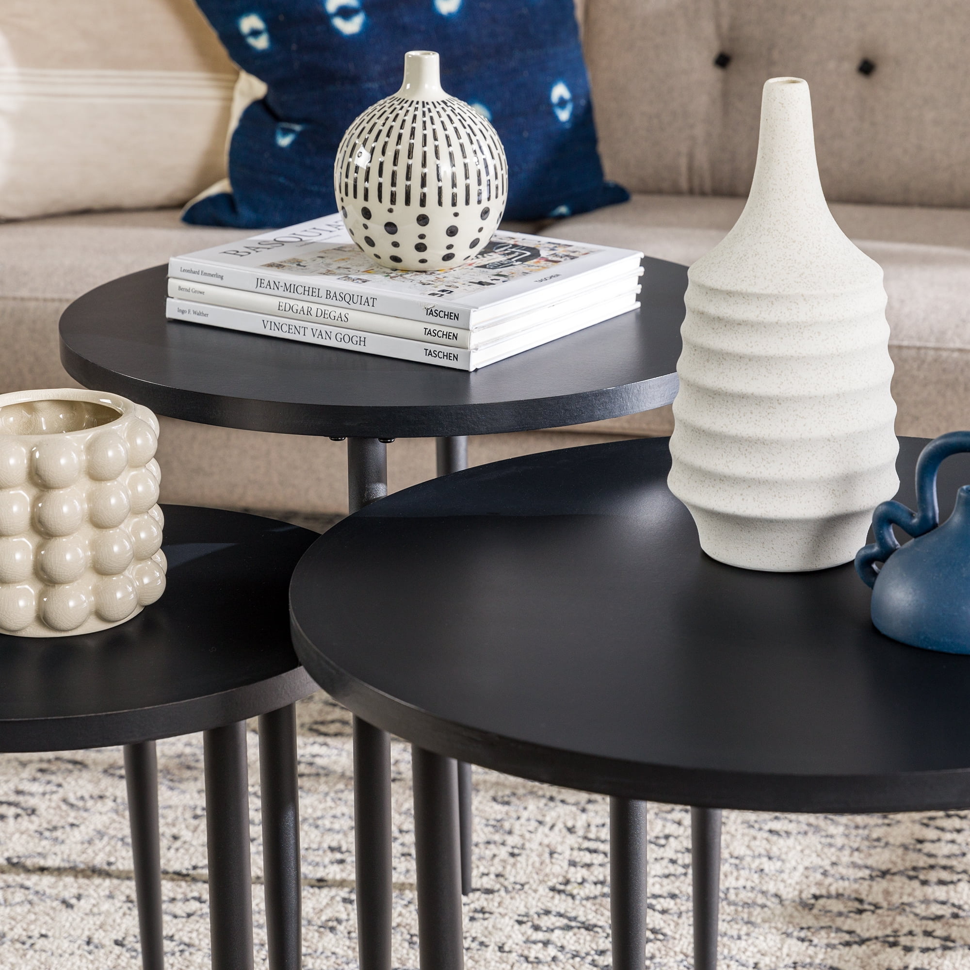 Walker Edison Modern Round Nesting Coffee Tables, Set of 3, Solid Black