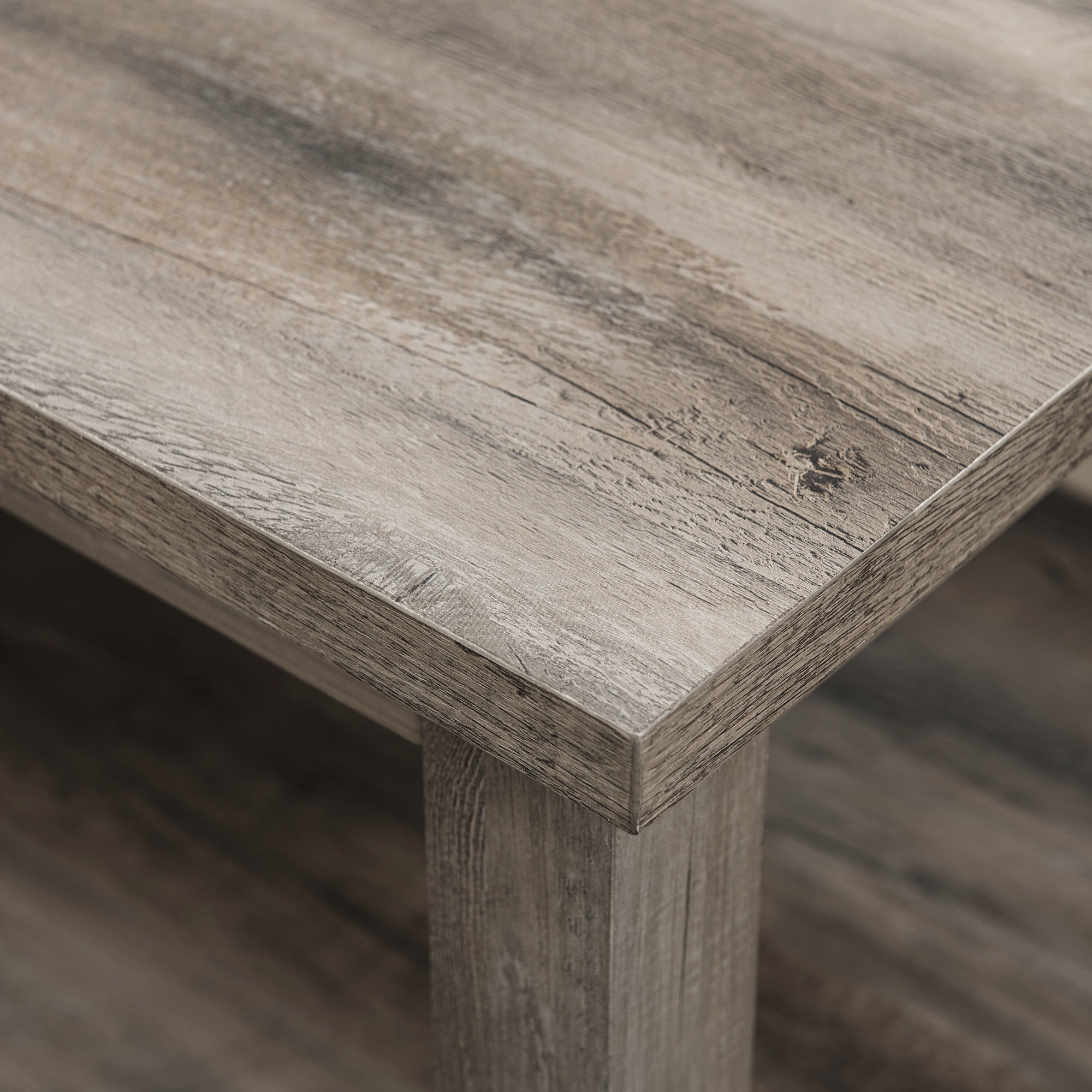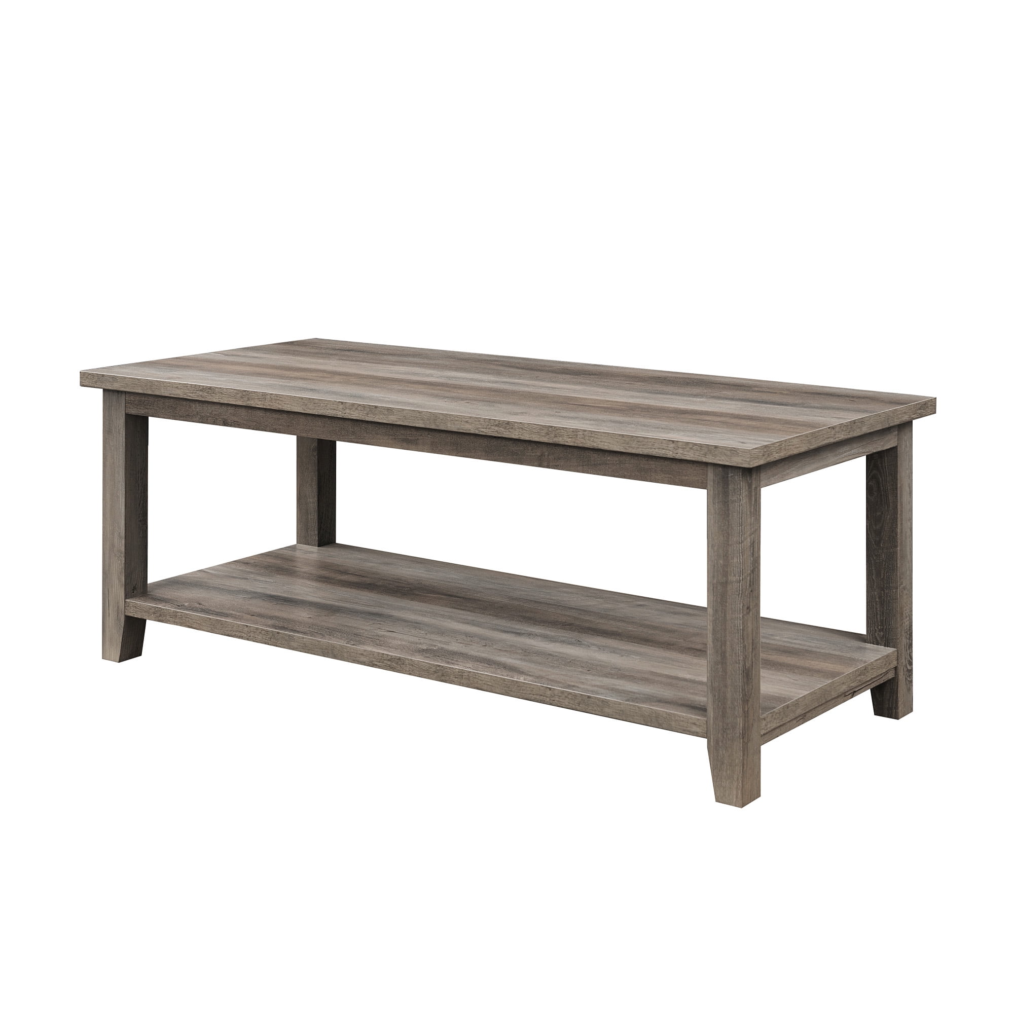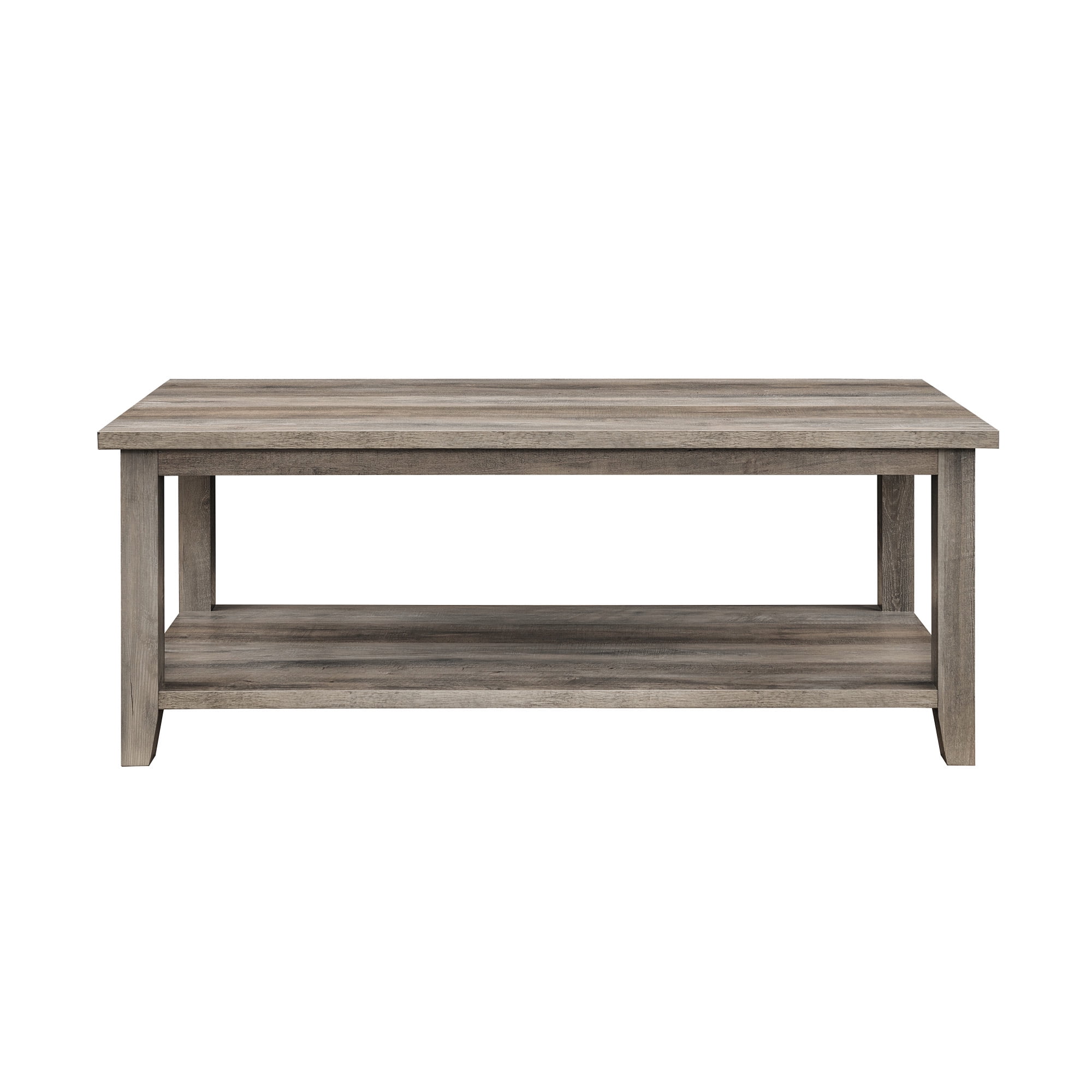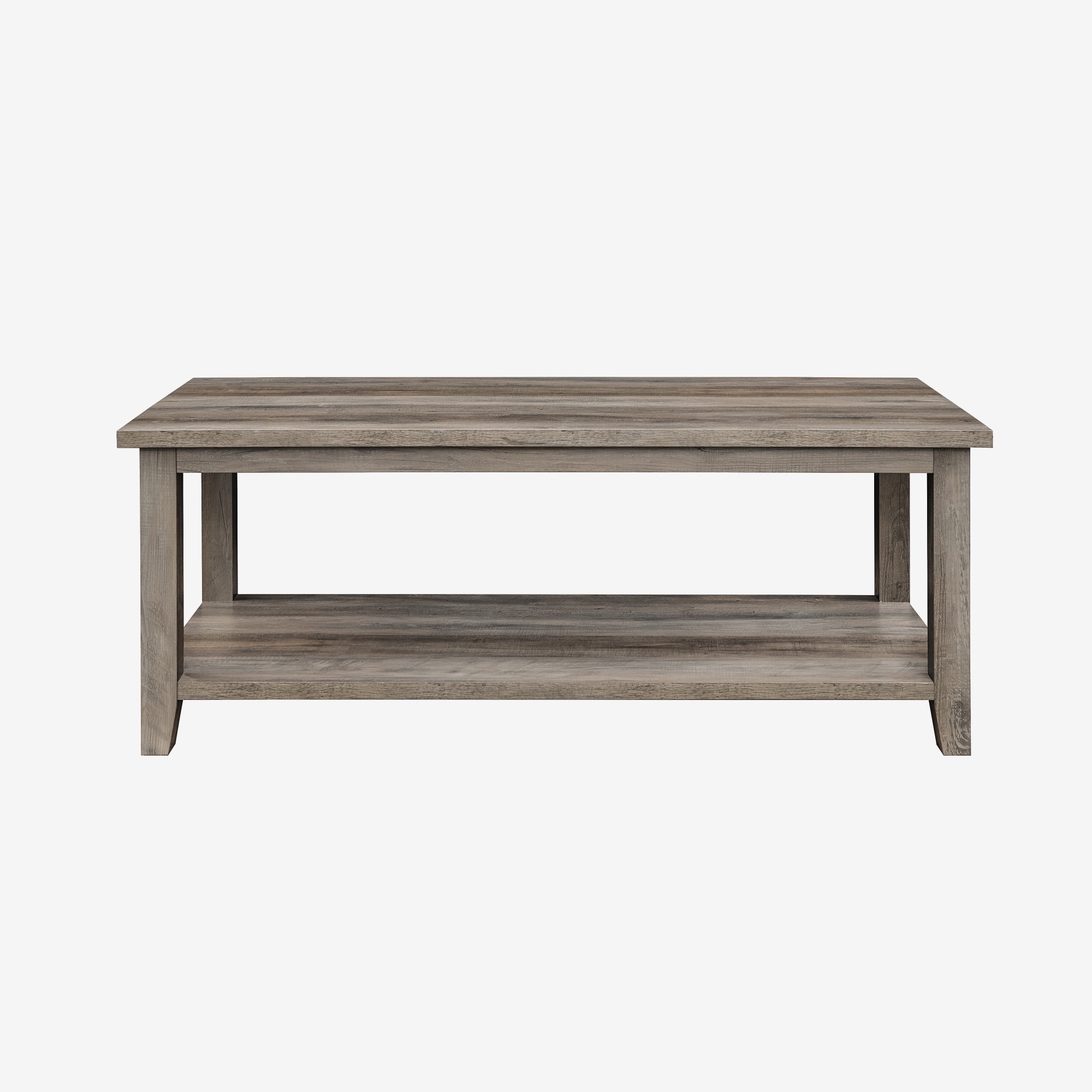 Walker Edison Modern Rustic Coffee Table with Shelf, Grey Wash