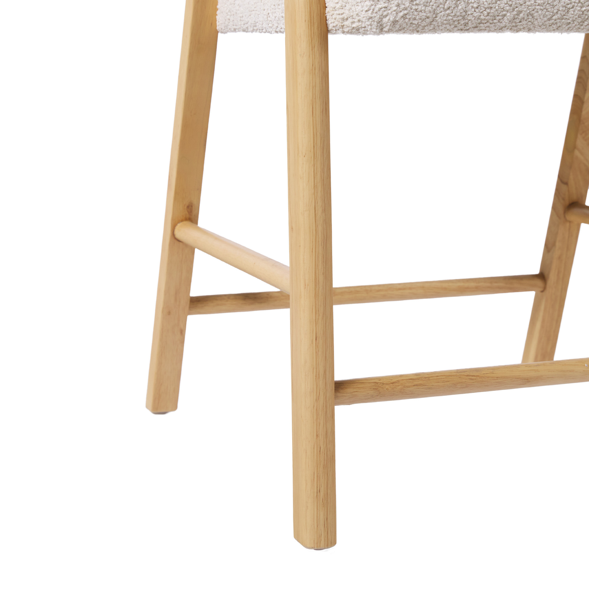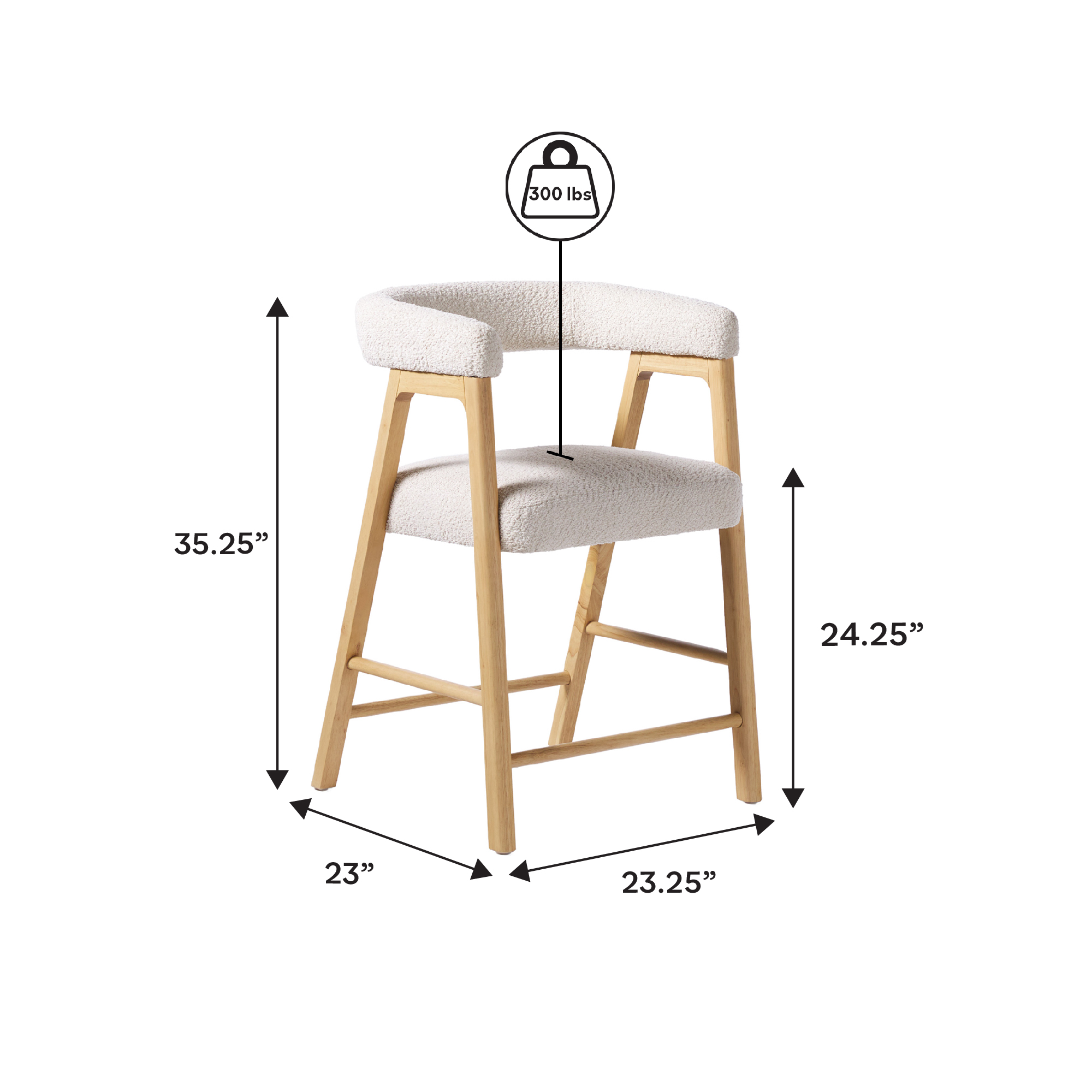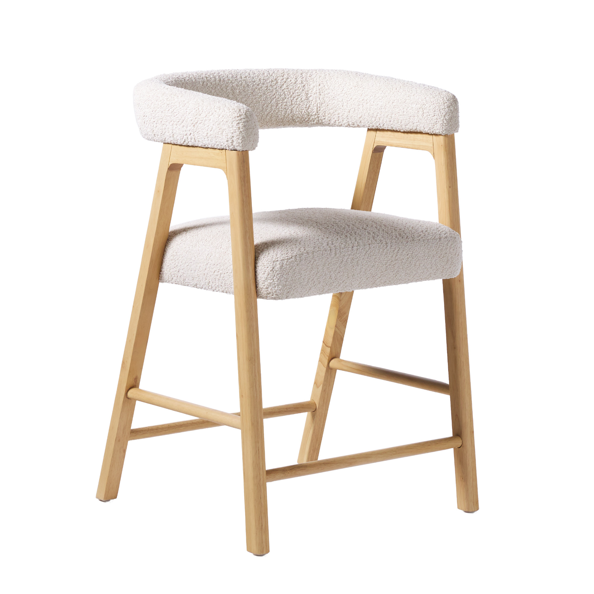 Walker Edison Modern Solid Wood Counter Stool with Curved Back and Boucle, Ivory