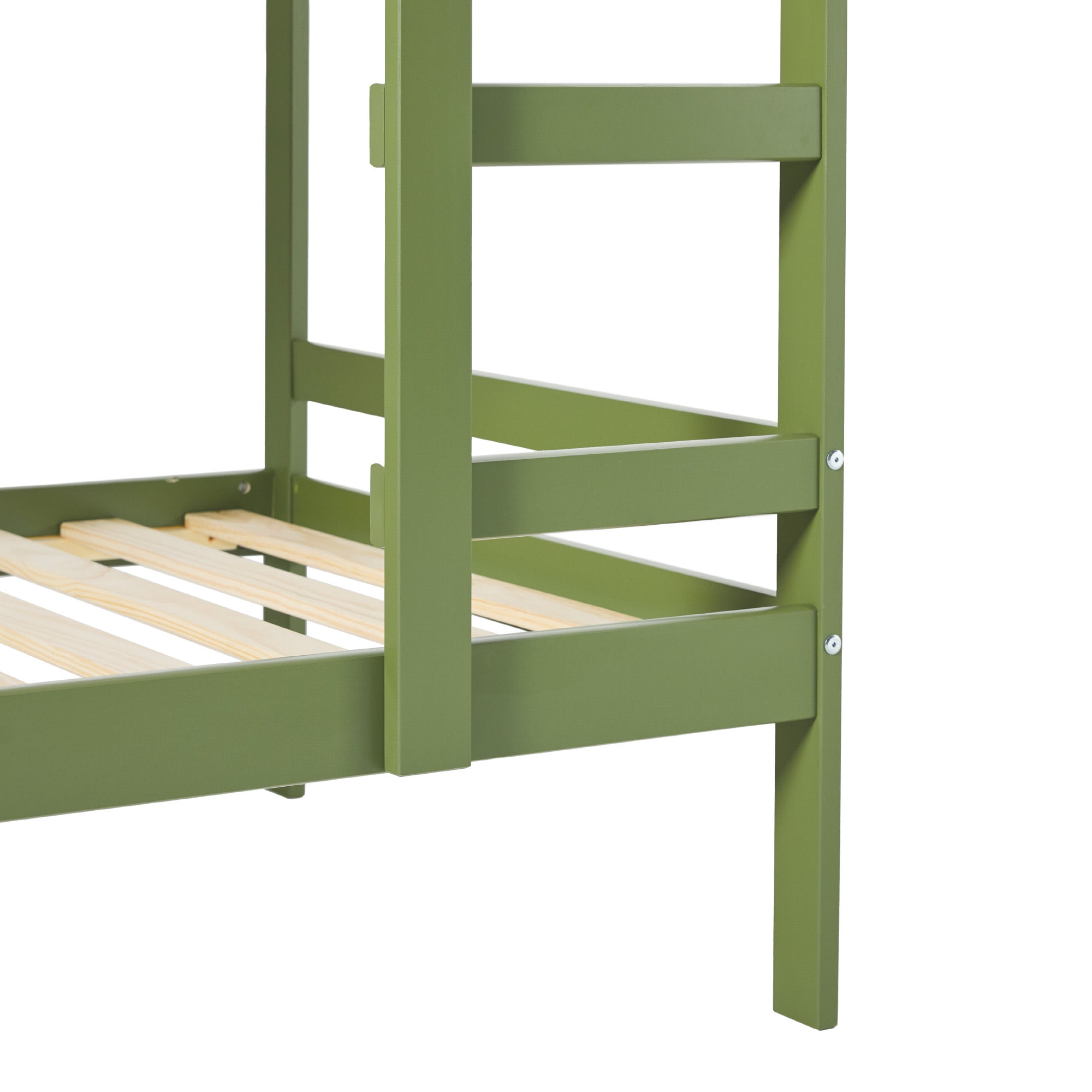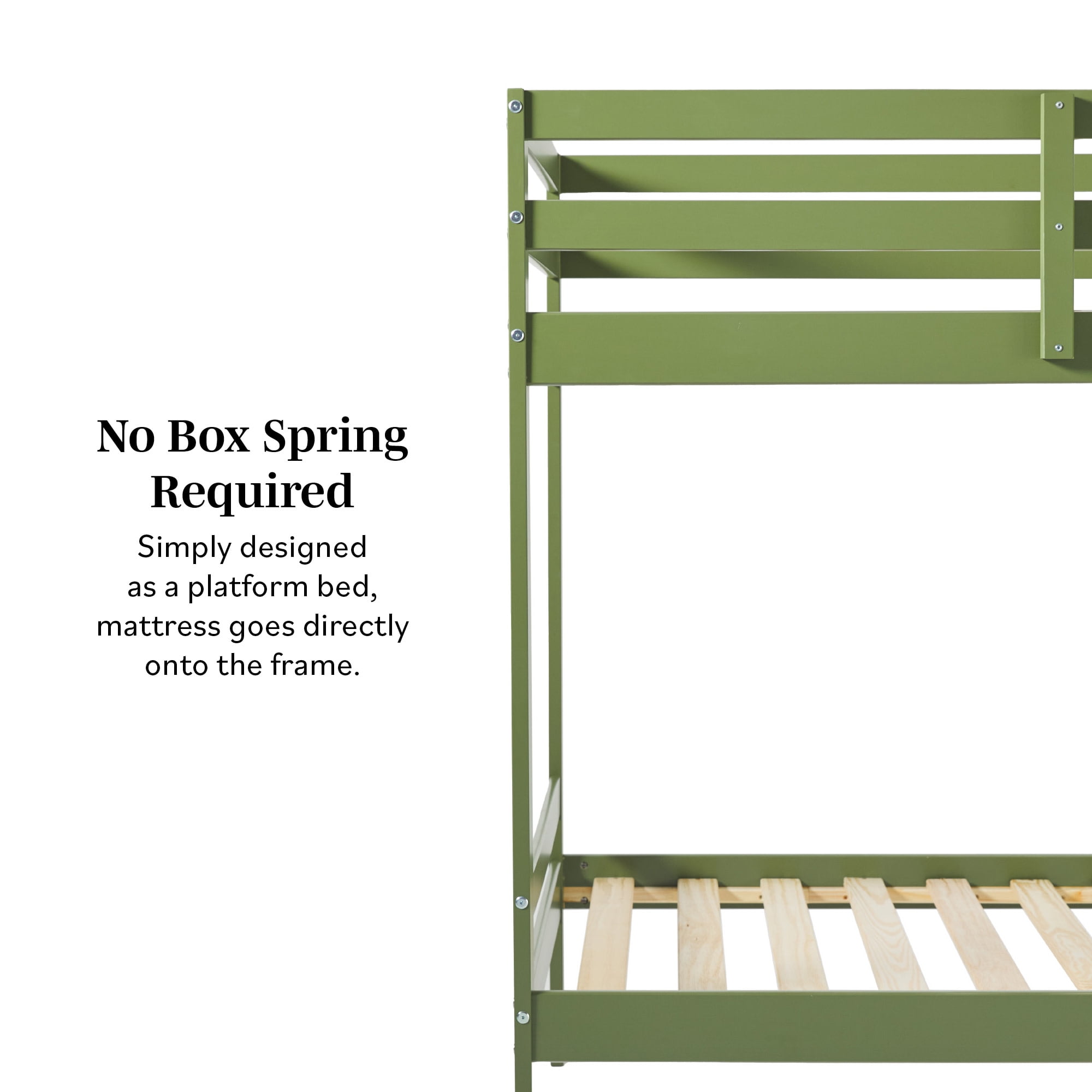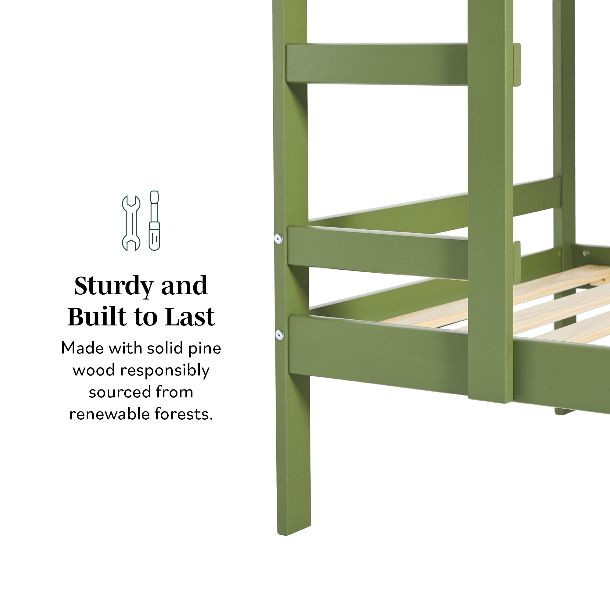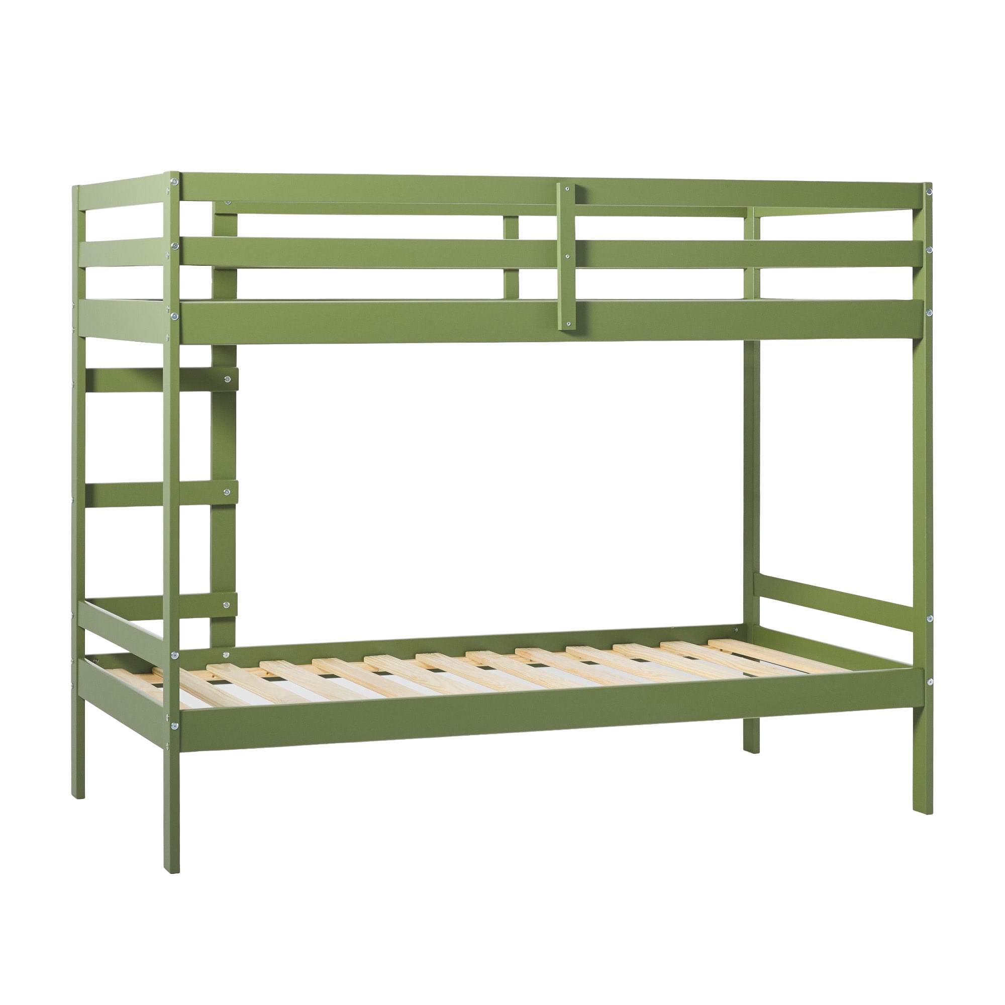 Walker Edison Modern Solid Wood Twin Over Twin Bunk Bed, Olive Green