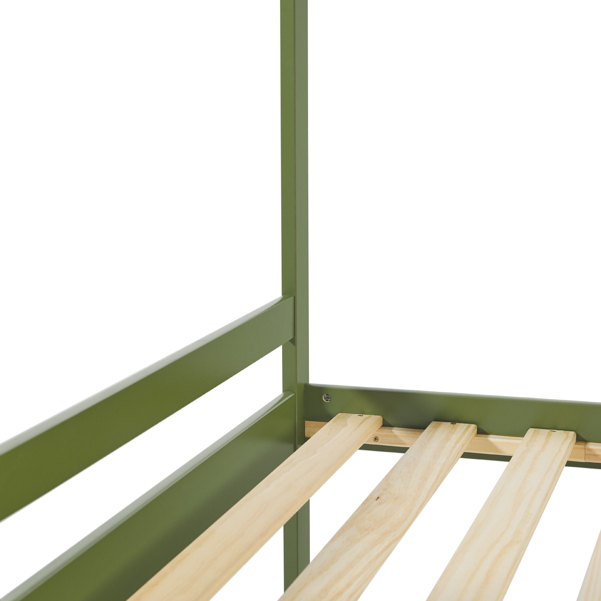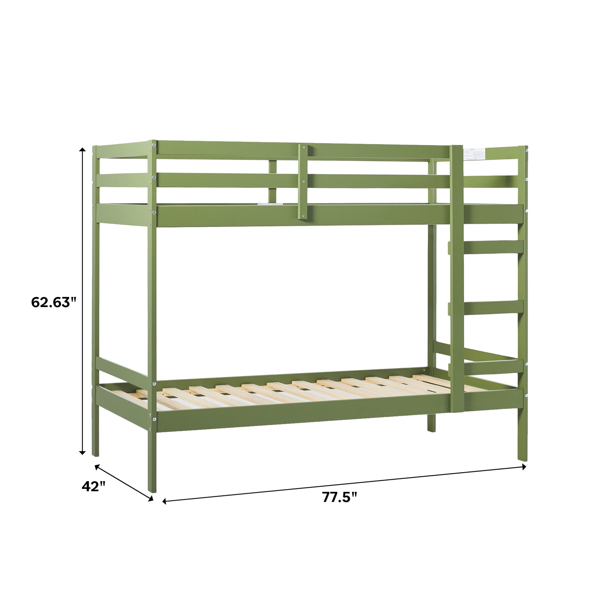 Modern style Painted olive green 26 pine wood slats Comfortable, rounded ladder rungs Made from solid wood Ships ready-to-assemble with step-by-step instructions Assembled dimensions 62.63″ H x 77.5″ L x 42″ W 103 LBS Packaged dimensions 9″ H x 83″ L x 14″ W