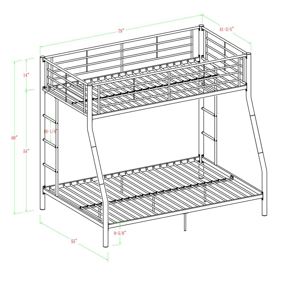Walker Edison Premium Twin Over Full Metal Bunk Bed, White: With a steel construction and a powder-coated finish In a contemporary style to flatter your kid’s bedroom Fits a standard twin and full-size mattress Conforms to consumer product safety standards The idea for space-saving needs Maximum recommended upper mattress thickness: 9″ Walker Edison bunk bed does not include mattresses or bedding Ships ready to assemble with step-by-step instructions Dimensions: 79″ W x 55″D x 68″ H