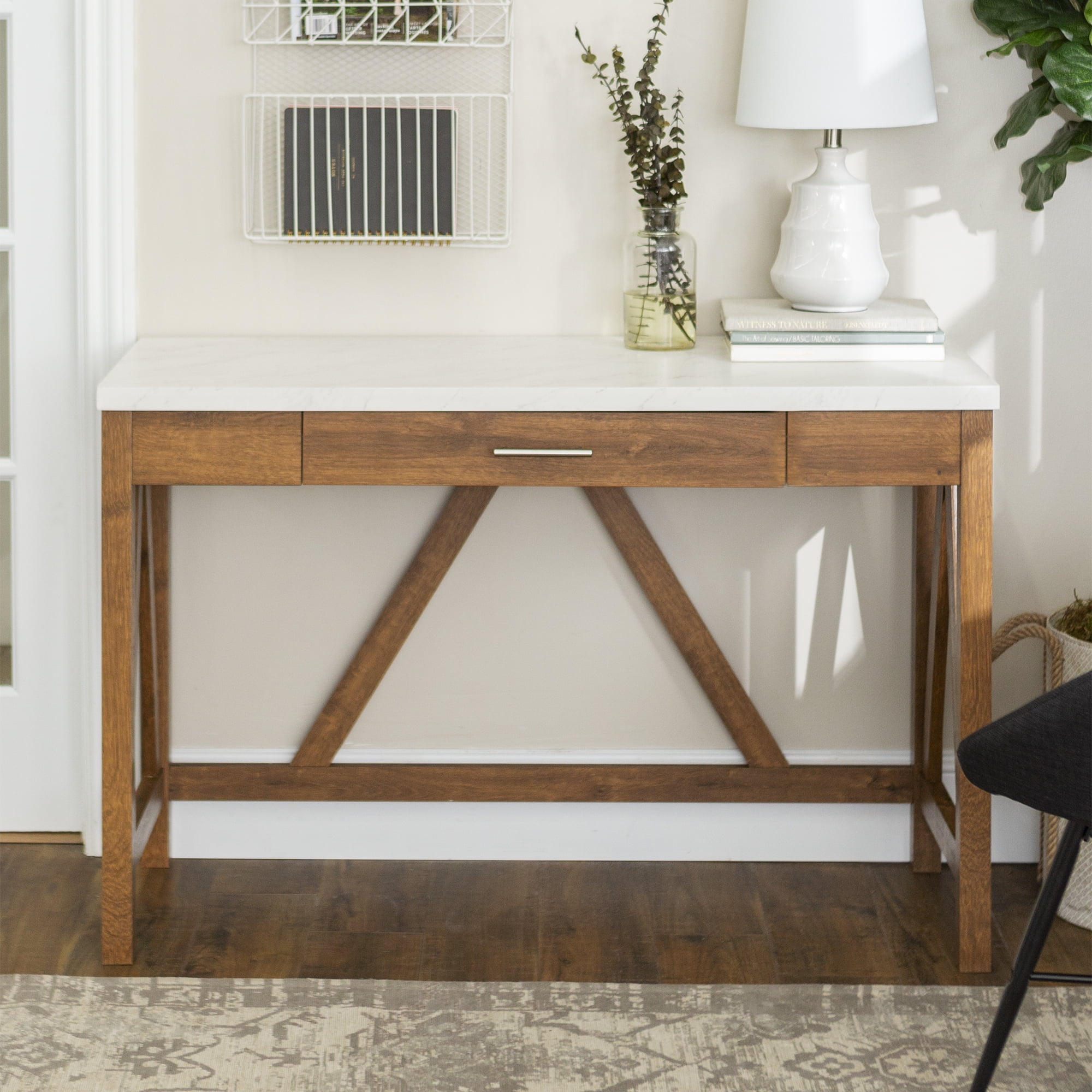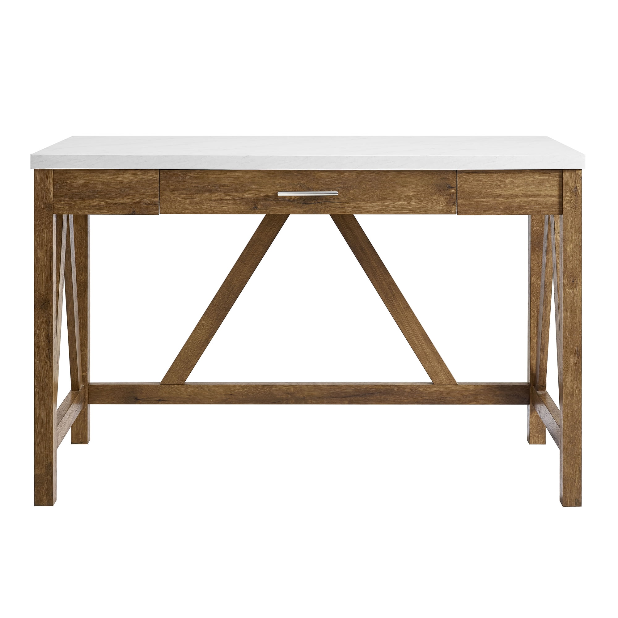 Walker Edison Rustic Farmhouse Computer Writing Desk with Drawer, Natural Walnut/White Marble