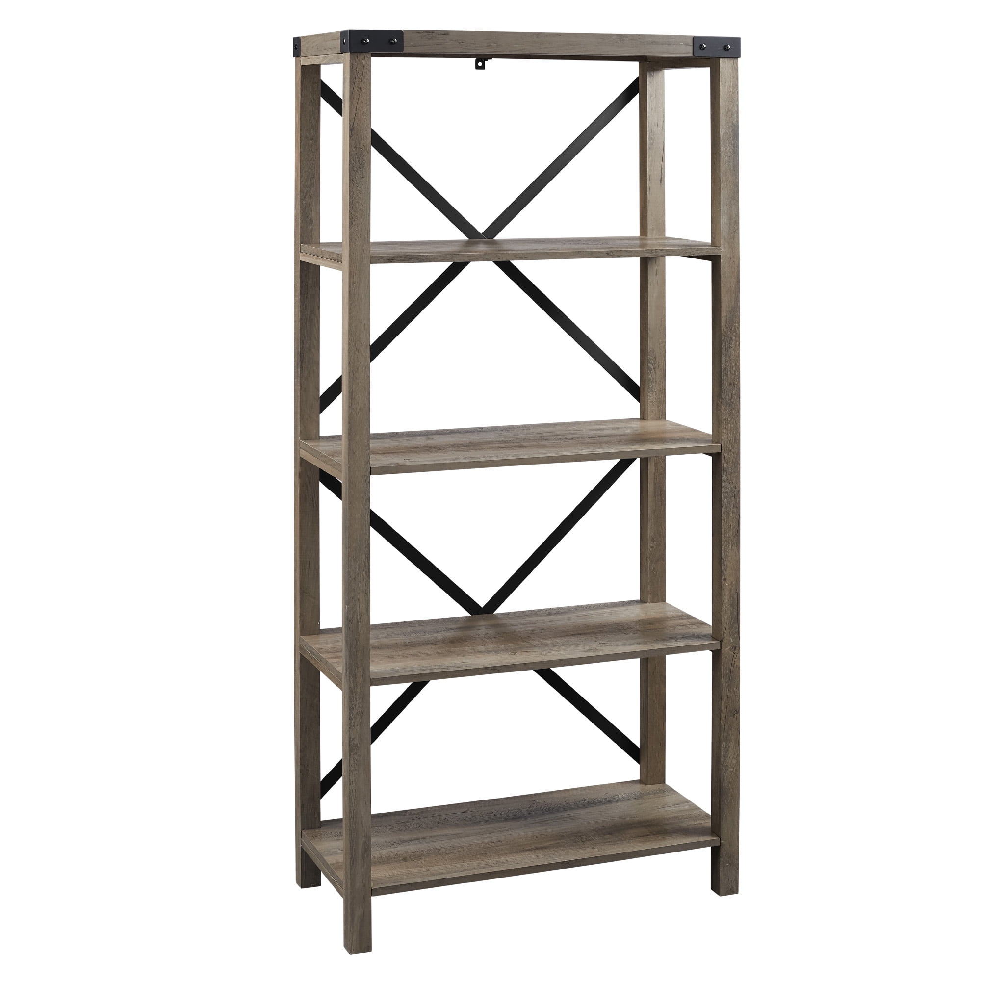 Walker Edison Rustic Industrial 4-Shelf Bookshelf, Gray Wash