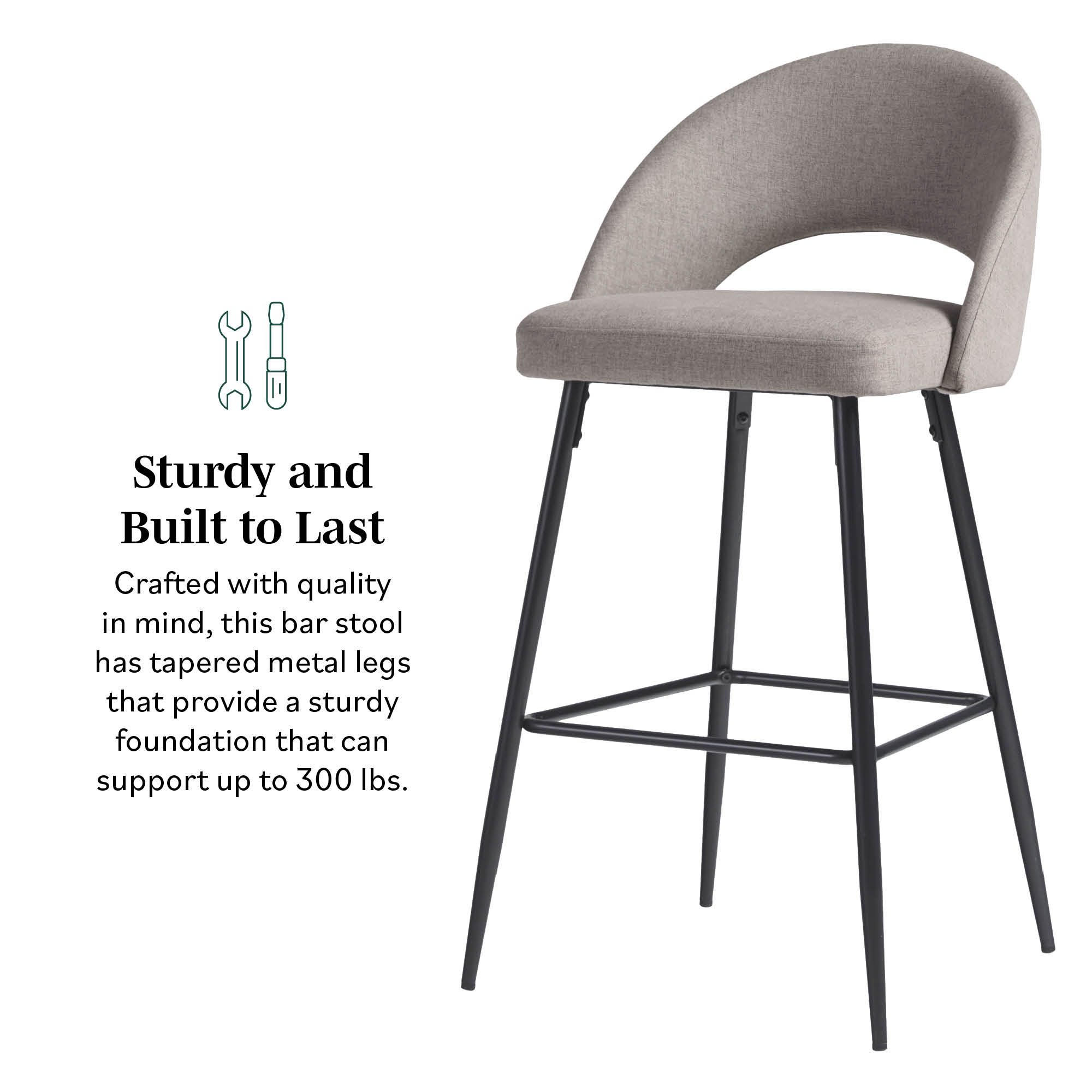 Walker Edison Set of 2 Modern Bar-Height Upholstered Barstools, Mushroom