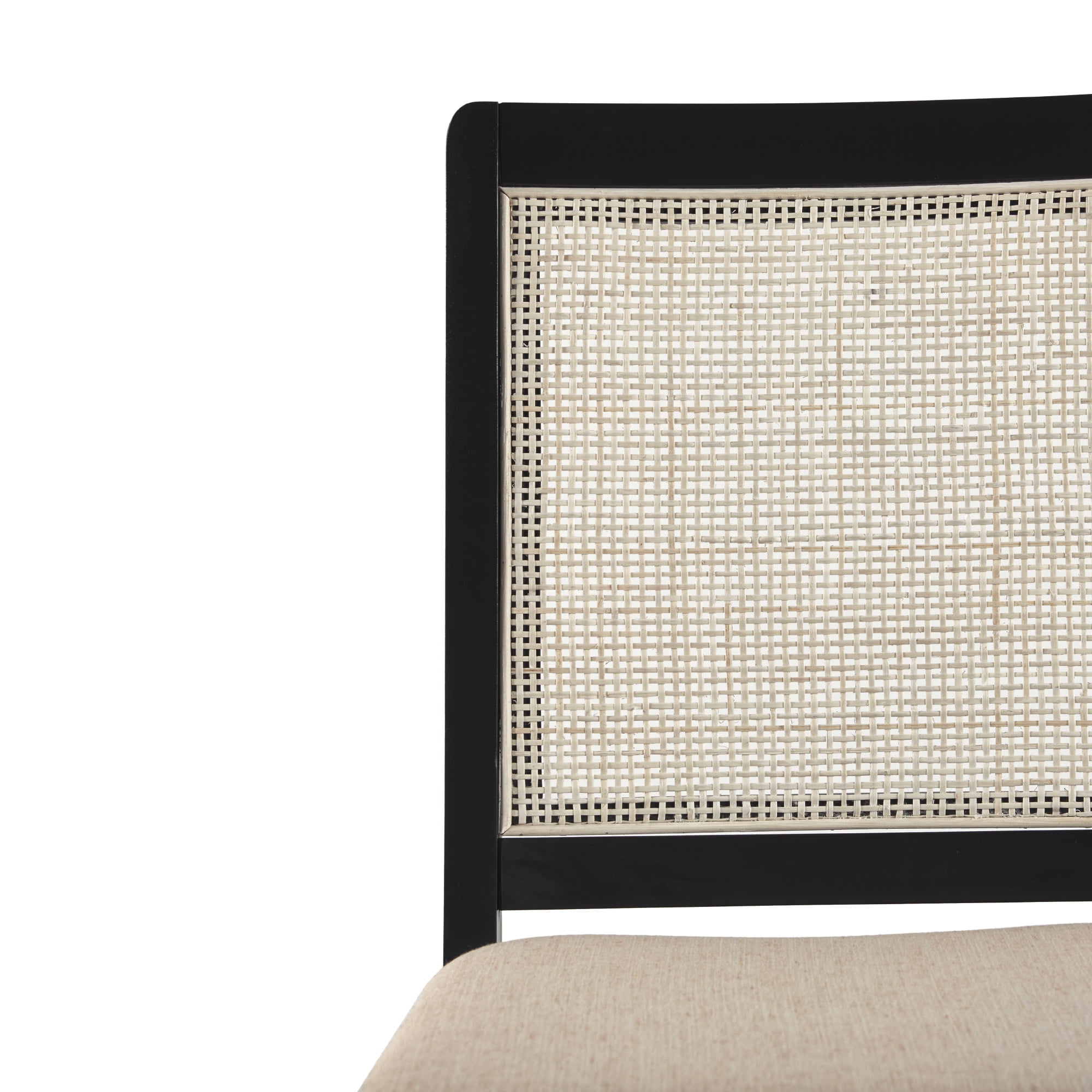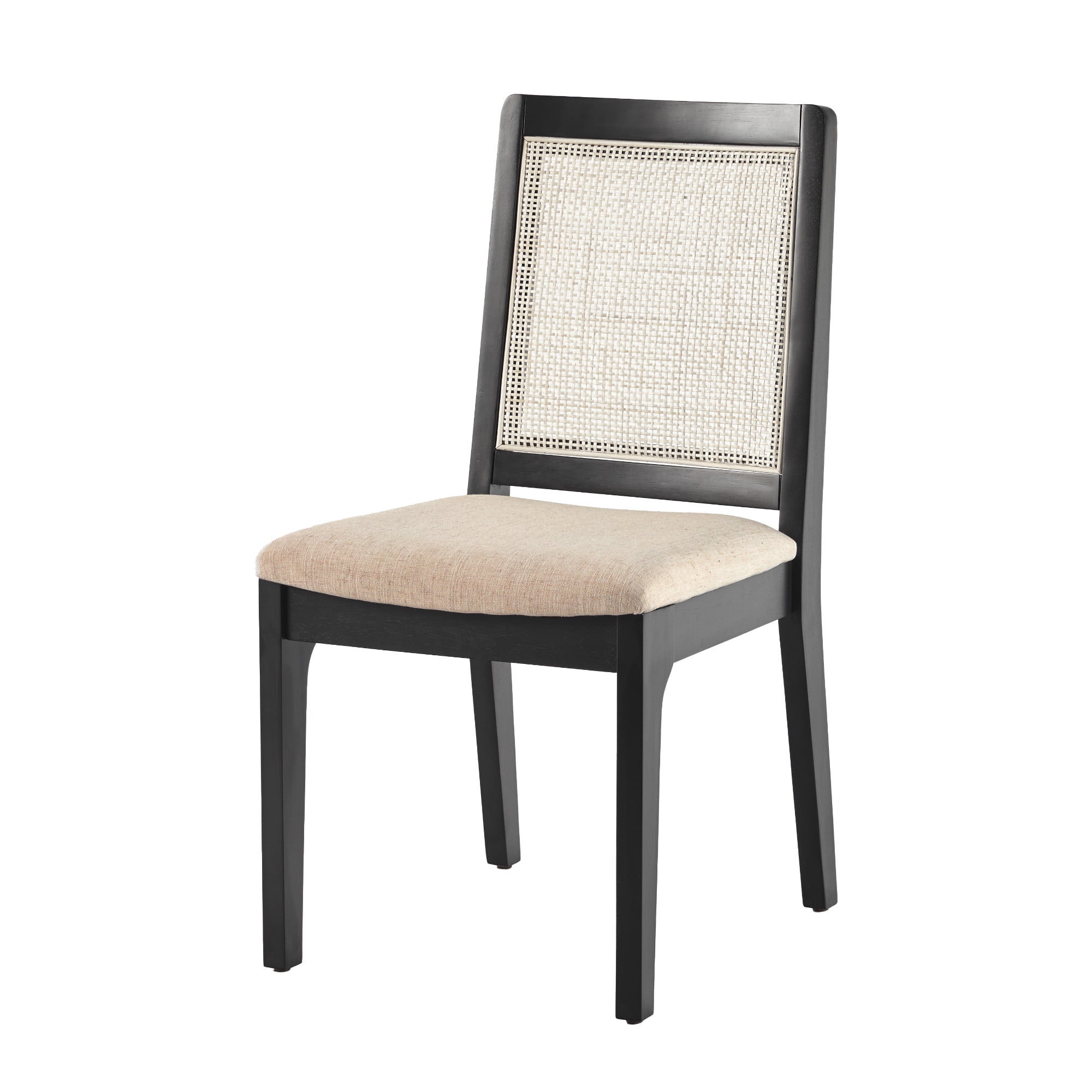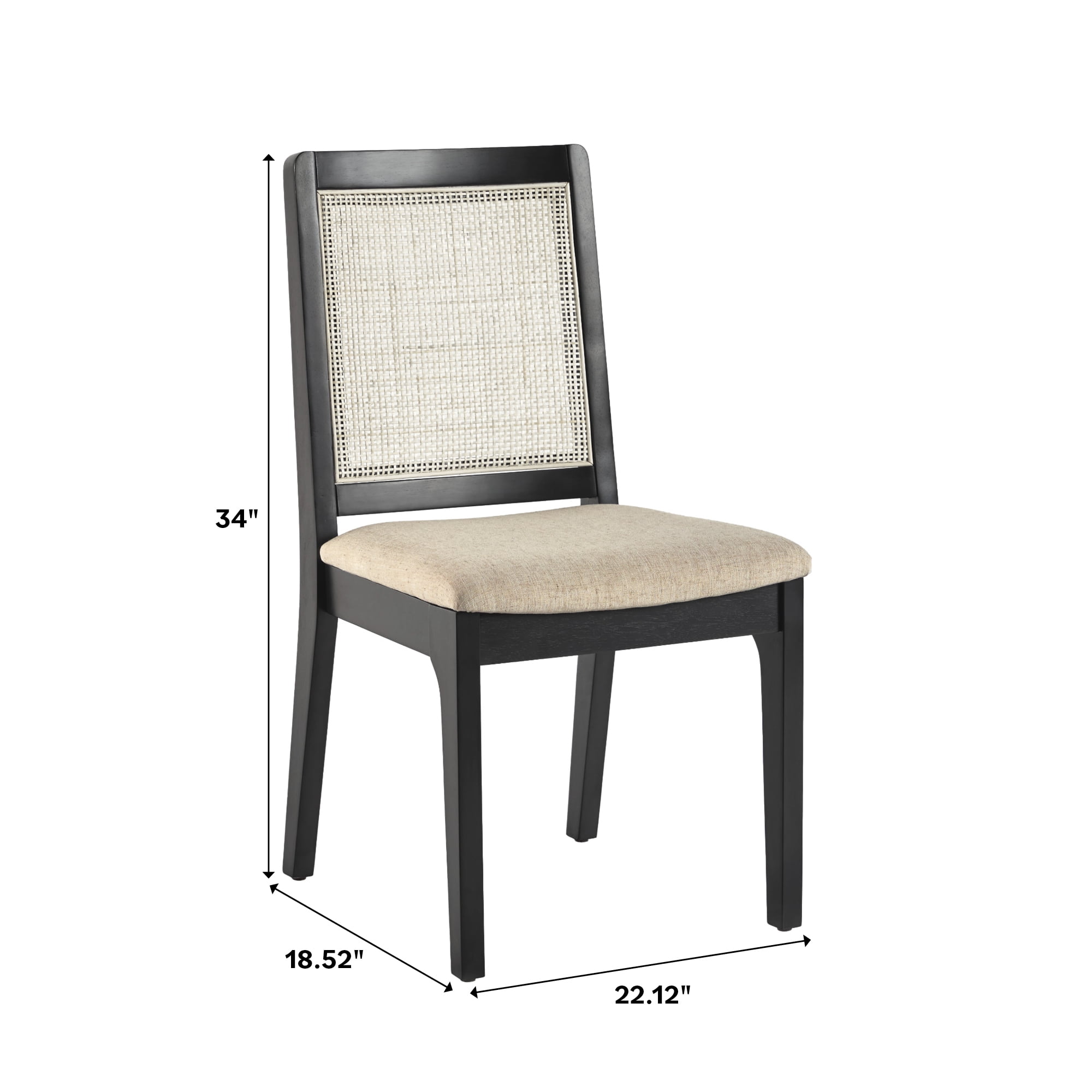 Modern style with rattan back Painted black Set of 2 Adjustable foot levelers Easy-to-clean woven upholstery Made from durable solid wood Ships ready-to-assemble with step-by-step instructions Assembled dimensions 34” H x 17” L x 20 ½” W Packaged dimensions 11.25″ H x 41.38″ L x 21″ W