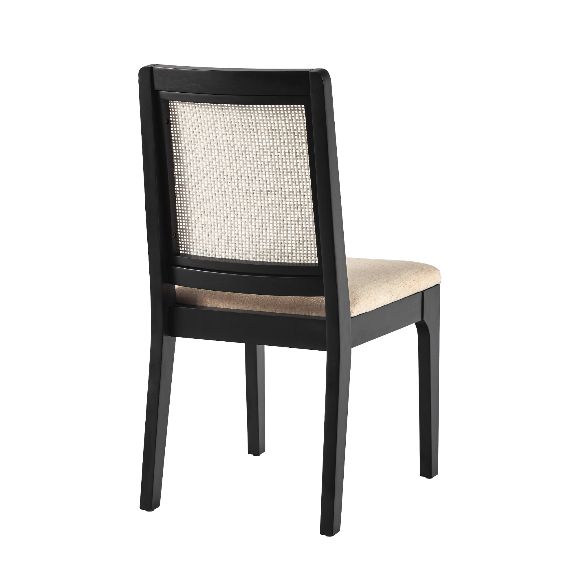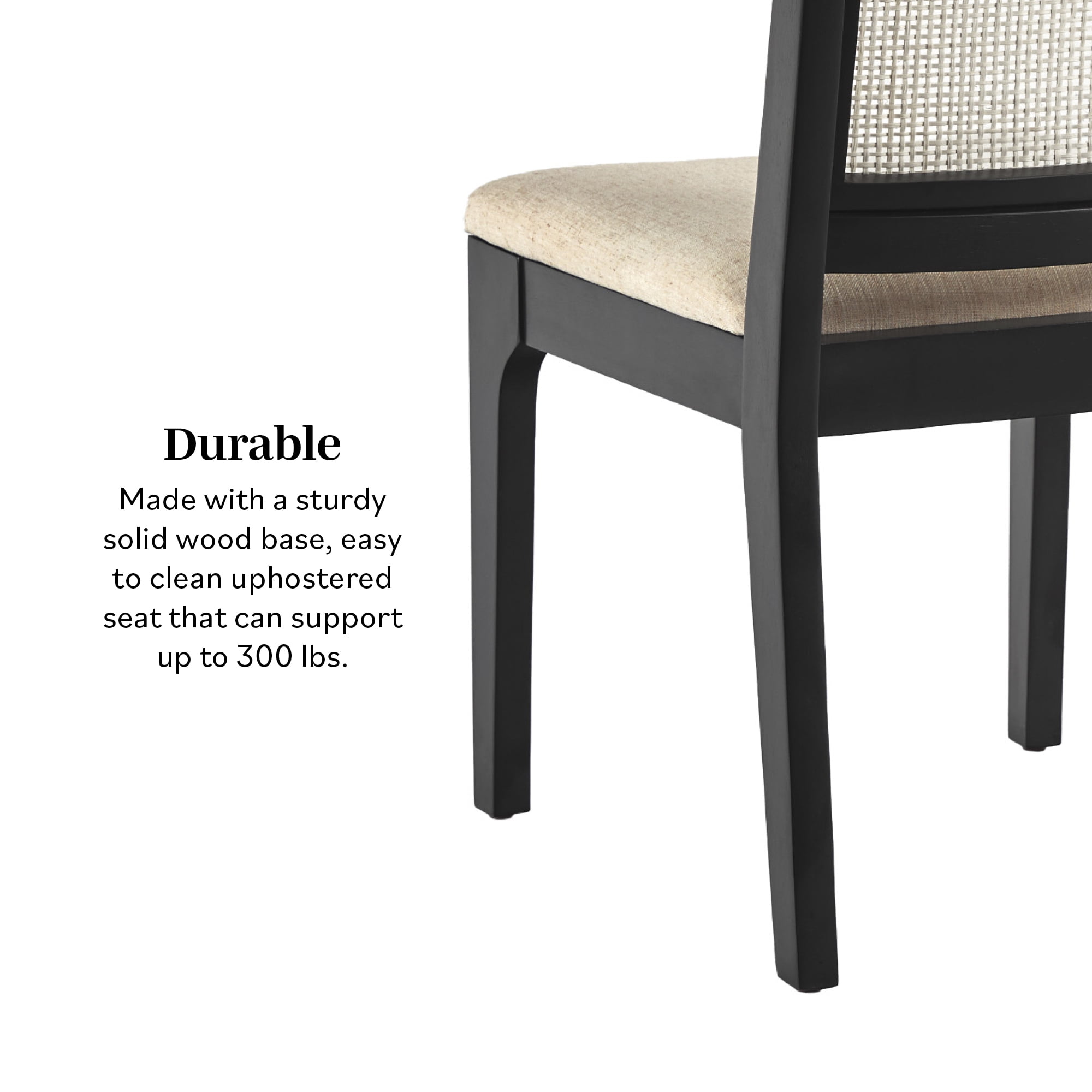 Walker Edison Solid Wood and Rattan Dining Chair, Set of 2, Black