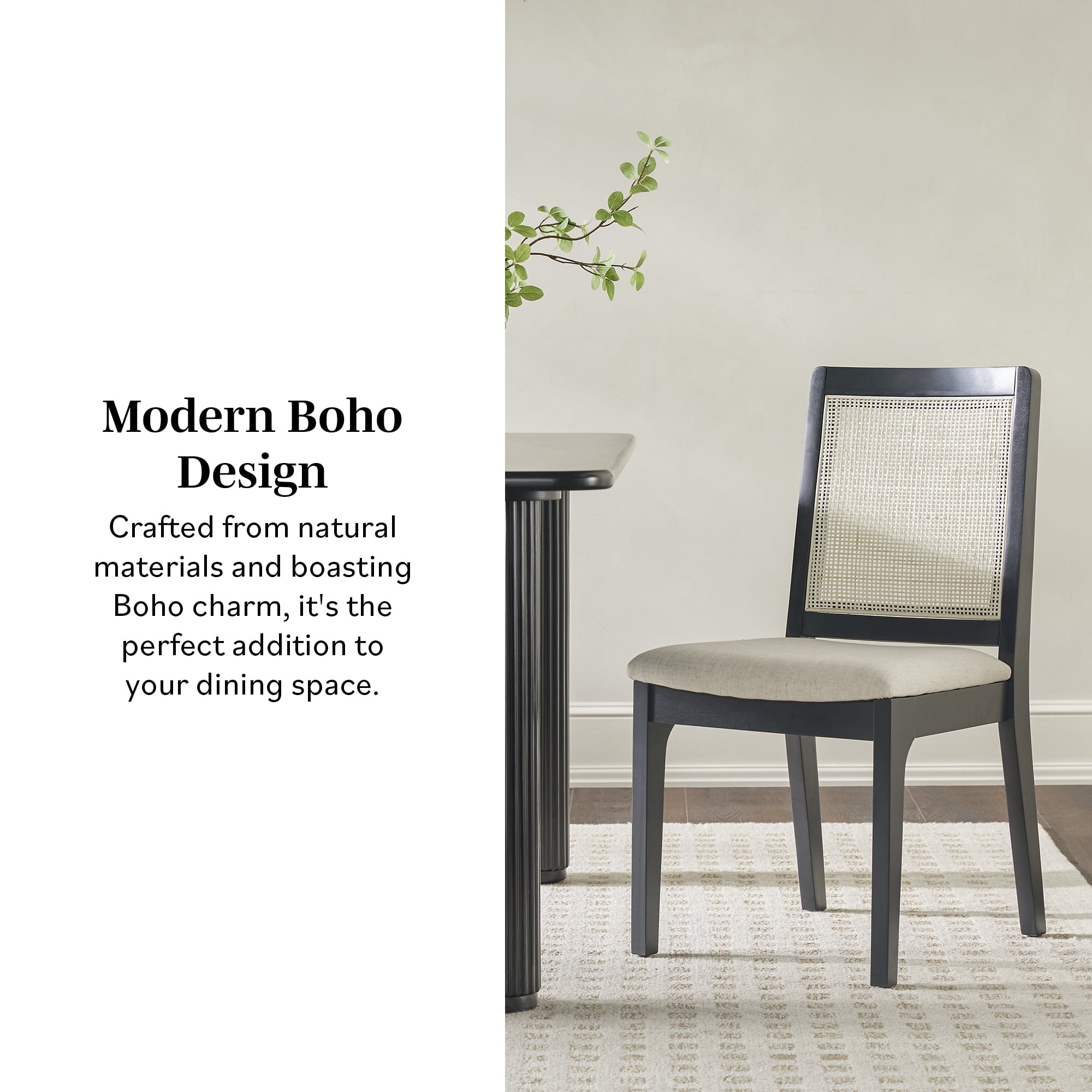 Add some coastal charisma to your table with a Set of 2 Boho Rattan Back Dining Chairs from Saracina Home. The solid wood base and woven upholstery seat make these chairs durable, comfortable, and easy to clean, and the rattan panel adds an on-trend detail. Pair these dining chairs with boho, contemporary, or transitional decor.