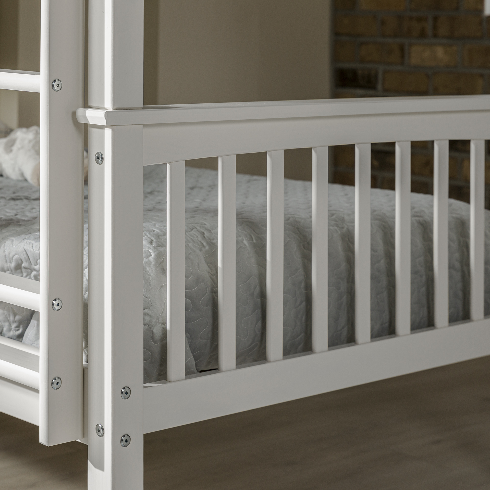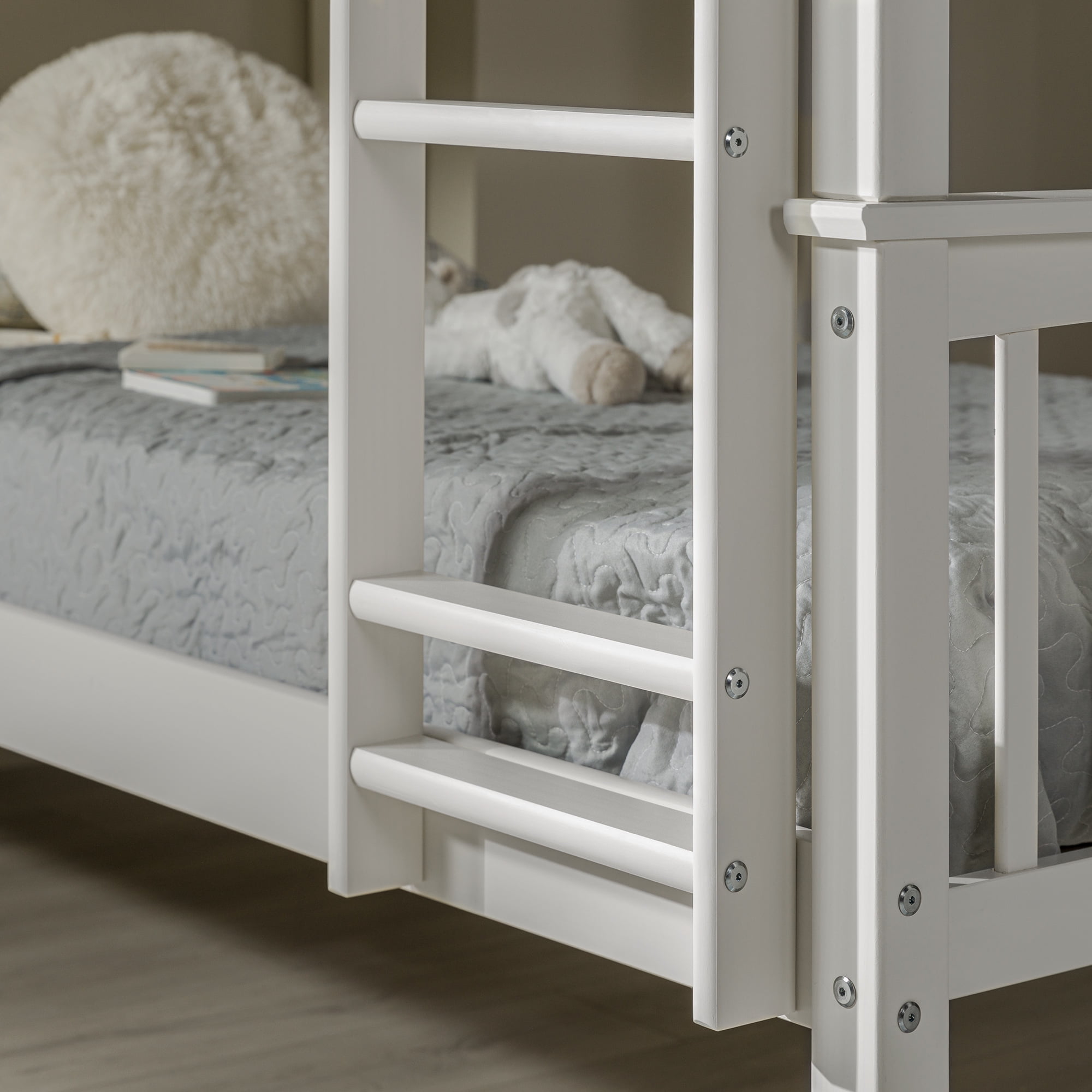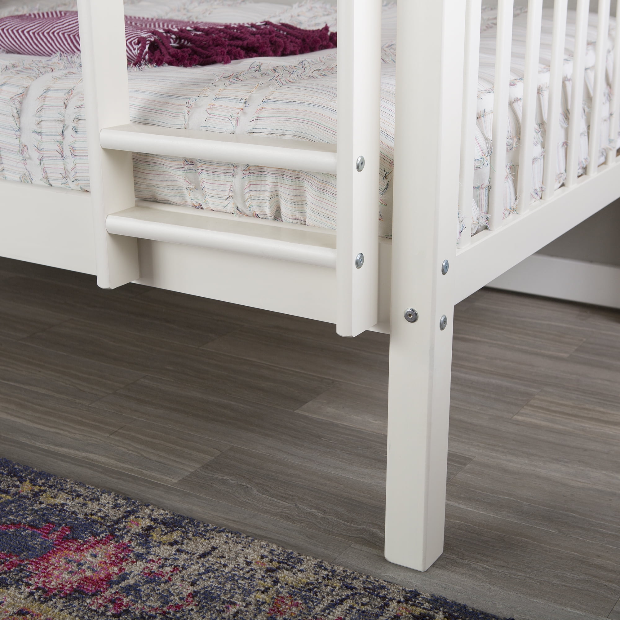 Save space while giving your children’s bedroom a bonus of fun with this Walker Edison solid wood twin bunk bed. Finished in a trendy and clean color, it’s sure to fit any room in your home. Featuring safety guardrails and an integrated ladder that is reliably constructed. Unlike other beds, it easily and safely converts into two twin beds for your convenience when the kids are old enough to need a little more space.