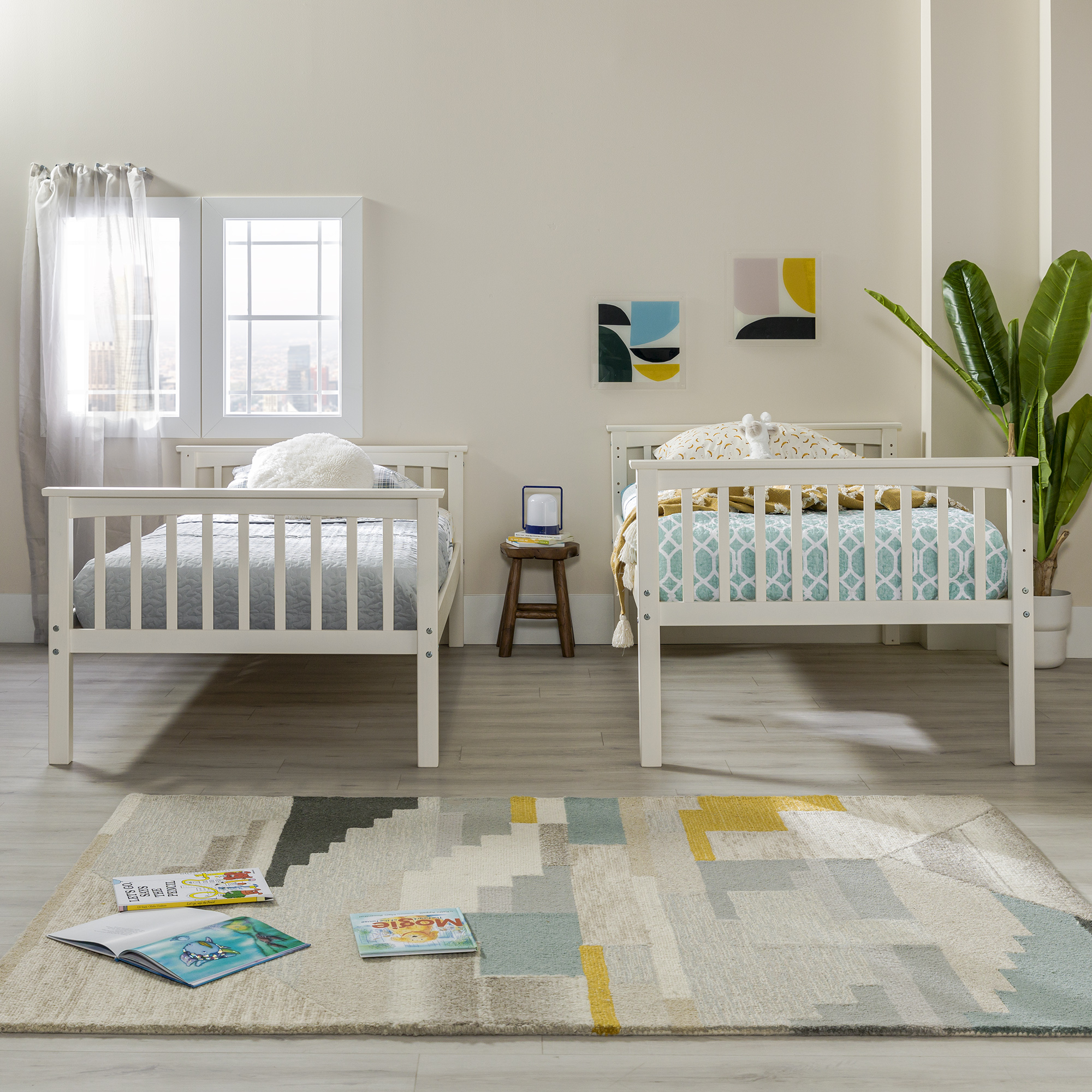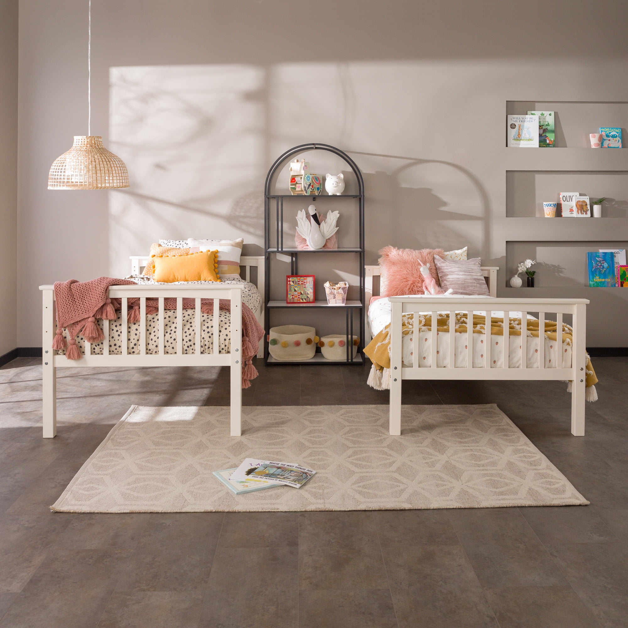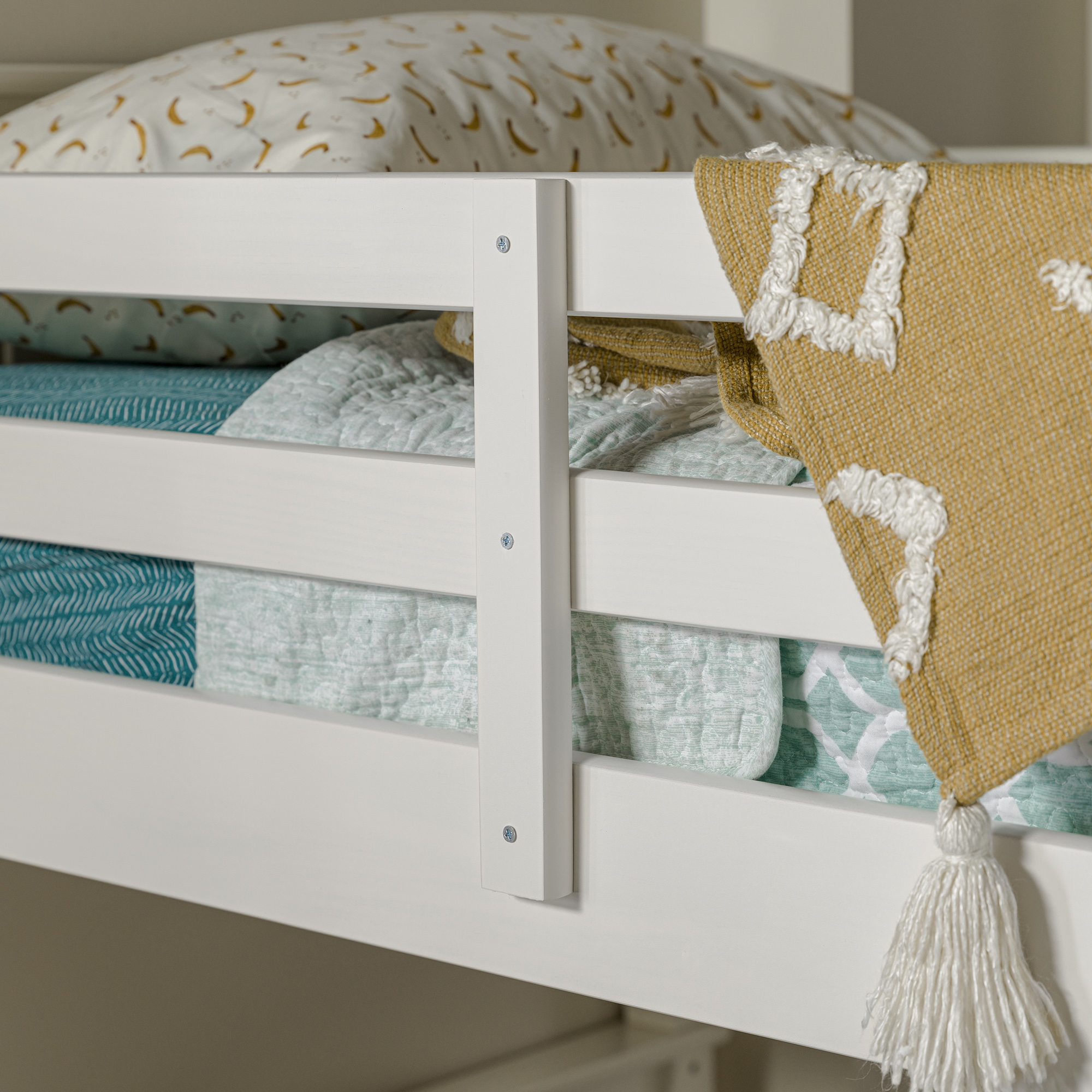 Save space while giving your children’s bedroom a bonus of fun with this Walker Edison solid wood twin bunk bed. Finished in a trendy and clean color, it’s sure to fit any room in your home. Featuring safety guardrails and an integrated ladder that is reliably constructed. Unlike other beds, it easily and safely converts into two twin beds for your convenience when the kids are old enough to need a little more space.