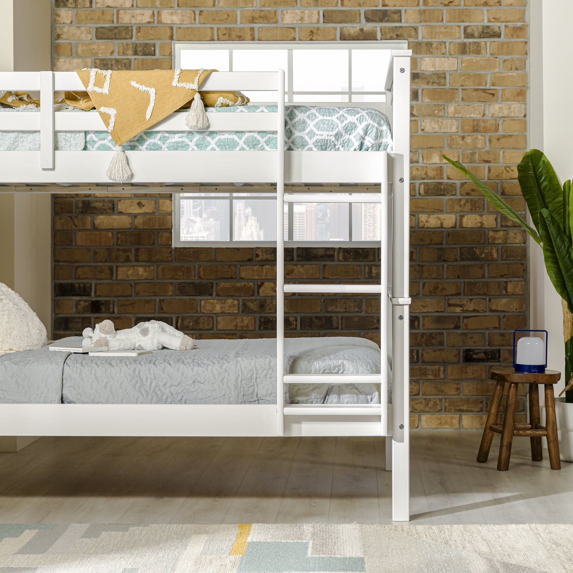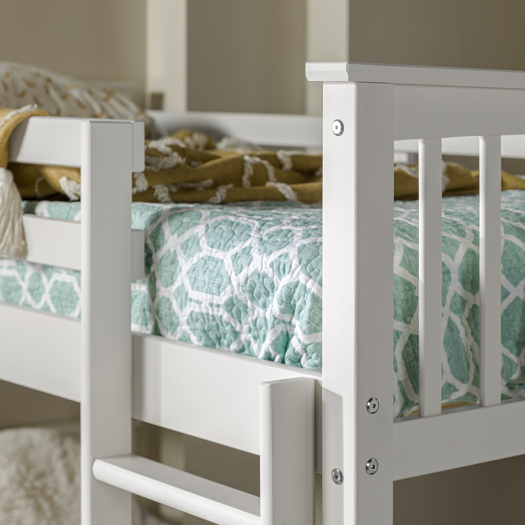 Walker Edison Solid Wood Twin Over Twin Mission Design Bunk Bed – White