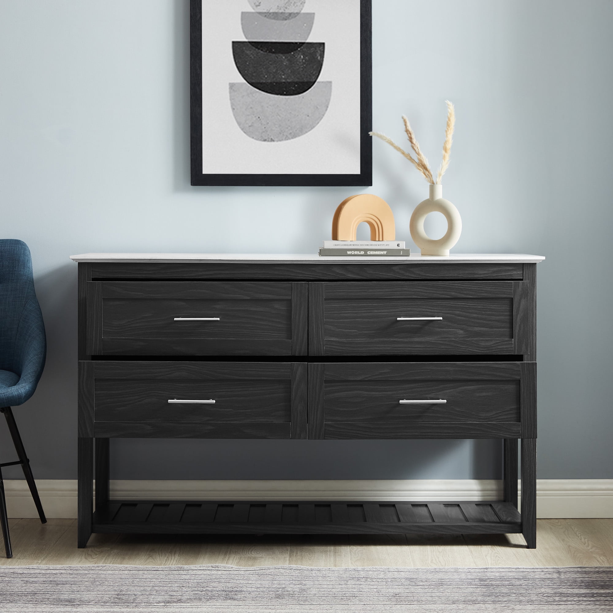 Walker Edison Transitional 54” 4-Drawer Dining Buffet, Graphite/White Marble
