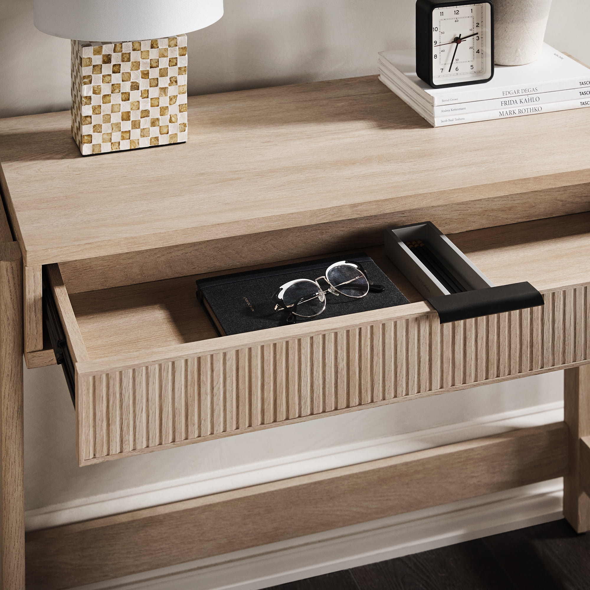Walker Edison Transitional Reeded Writing Desk with Drawer, Coastal Oak