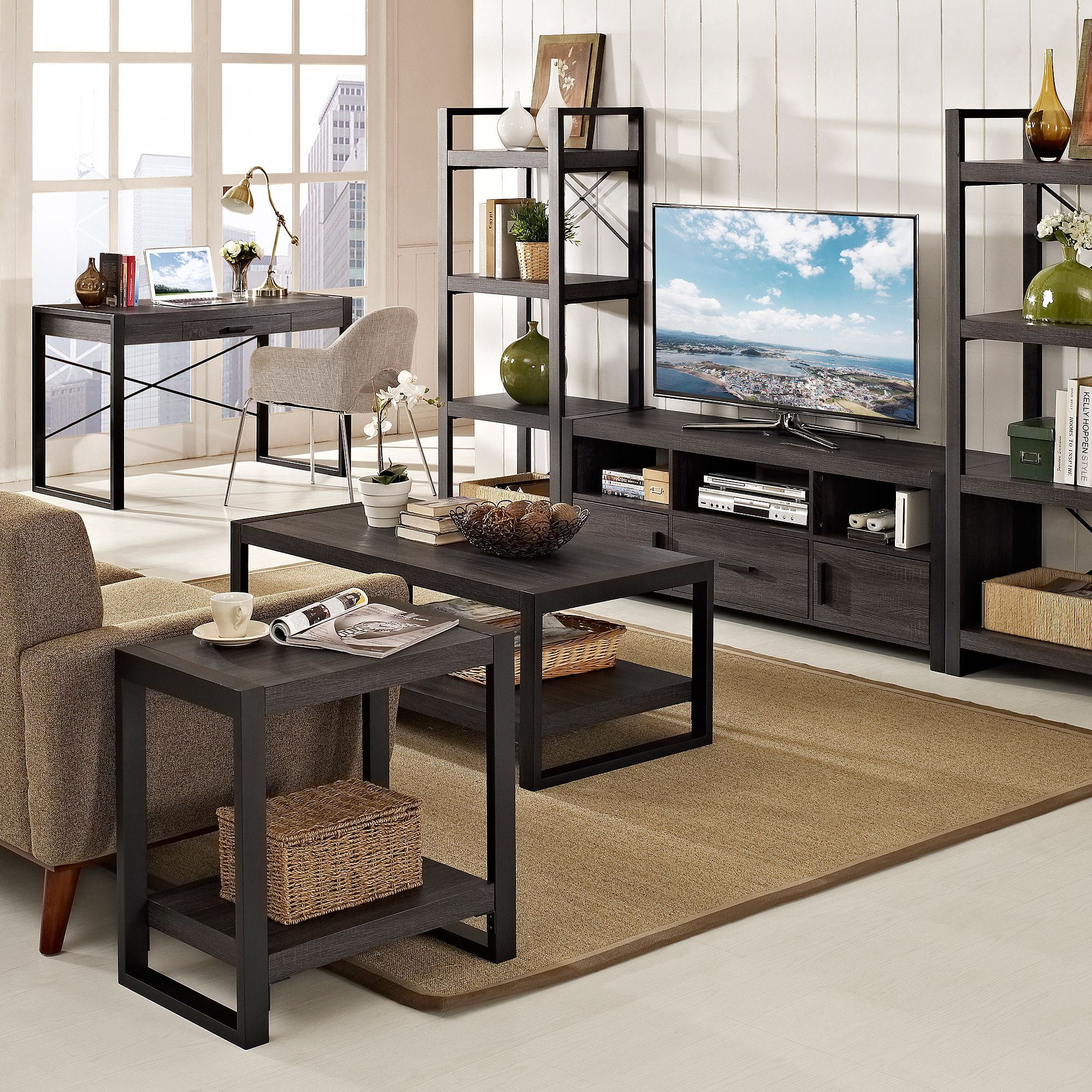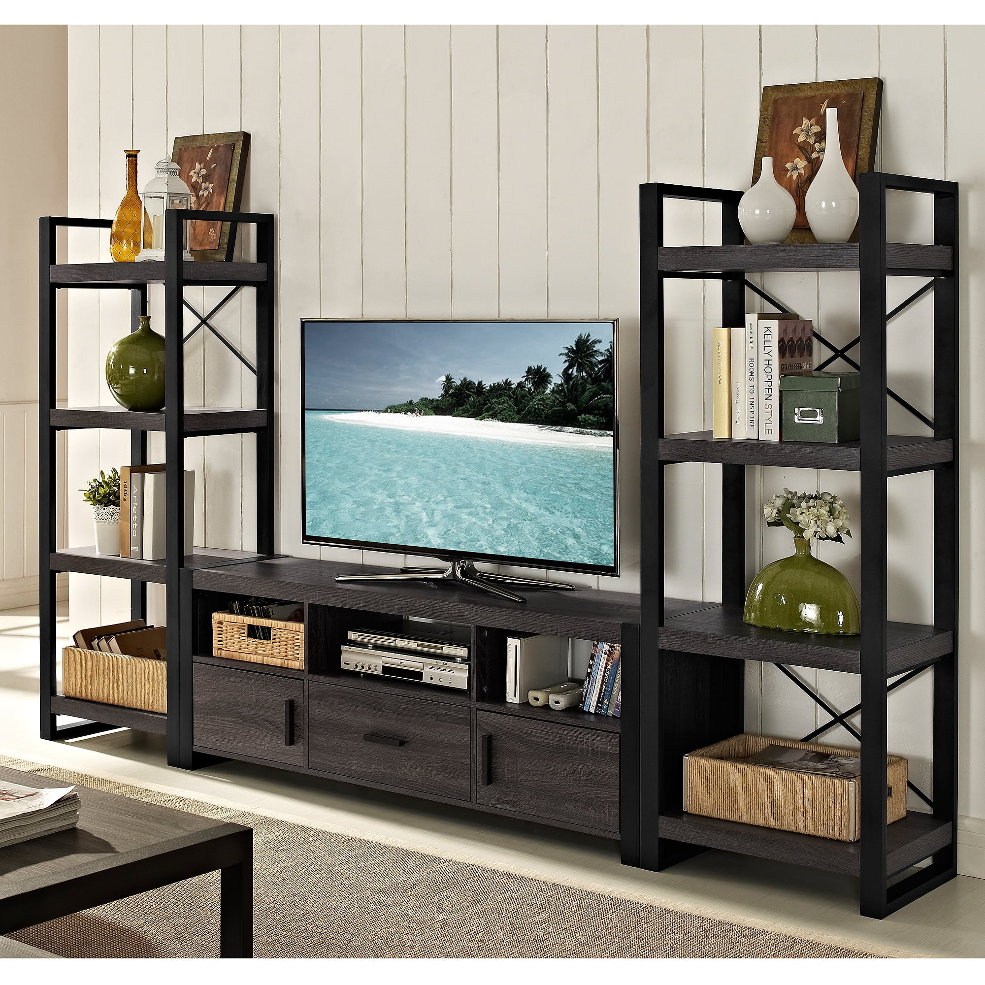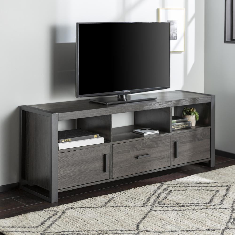 Walker Edison Urban Industrial TV Stand for TVs up to 66″ – Charcoal