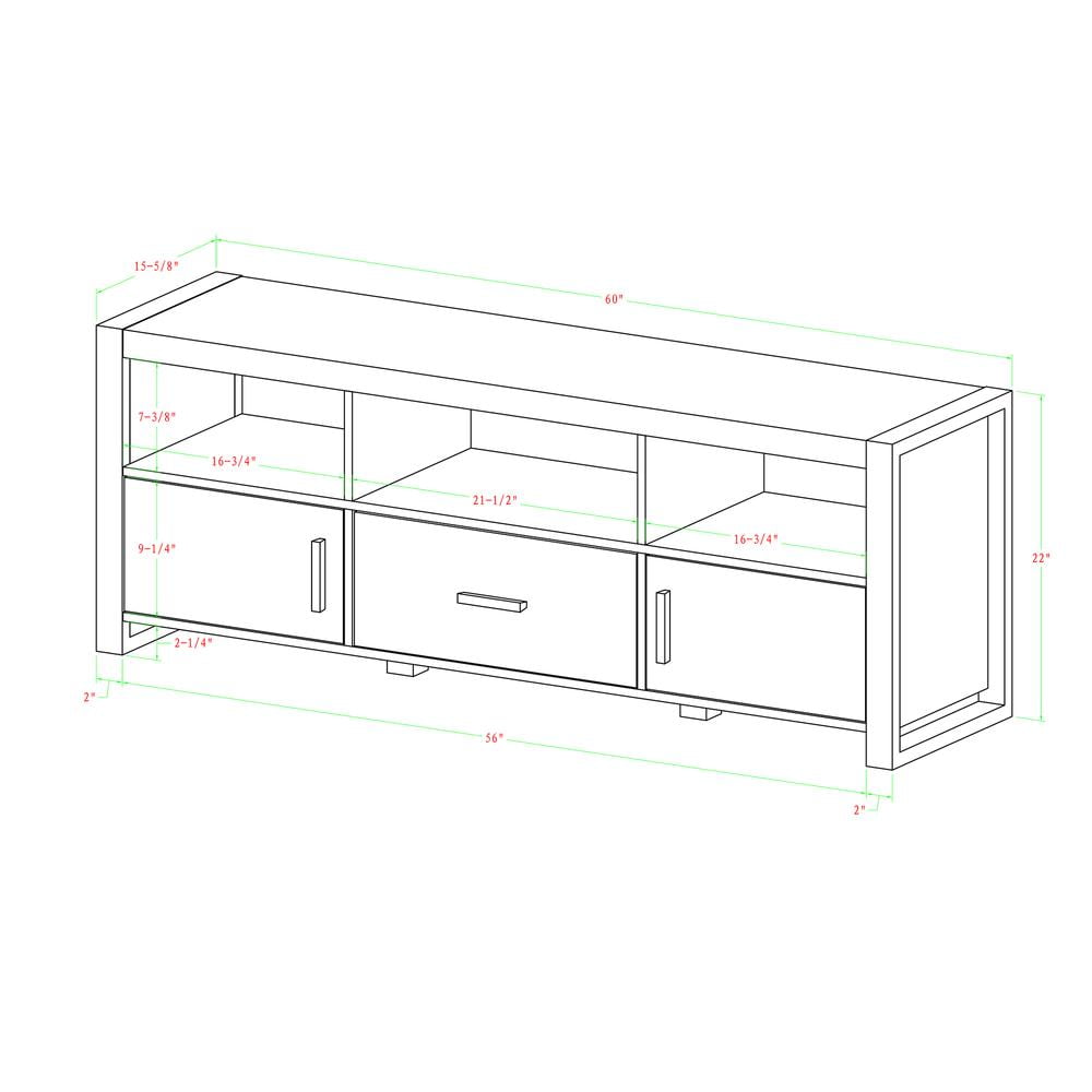 Your living or entertainment room can look even more stylish with this apartment AH City Grove Black and Charcoal TV Stand. This piece of furniture offers ample storage for your media components, gaming devices and other electronic accessories. Crafted from durable manufactured wood, this flat panel TV stand is designed for TVs up to 65″ wide. The versatile make features a large drawer, two side cabinets and an open shelving system with a cable management function at the back. This TV stand with drawer ships ready to assemble and can be set up in no time. The piece is designed by Angelo Surmelis.