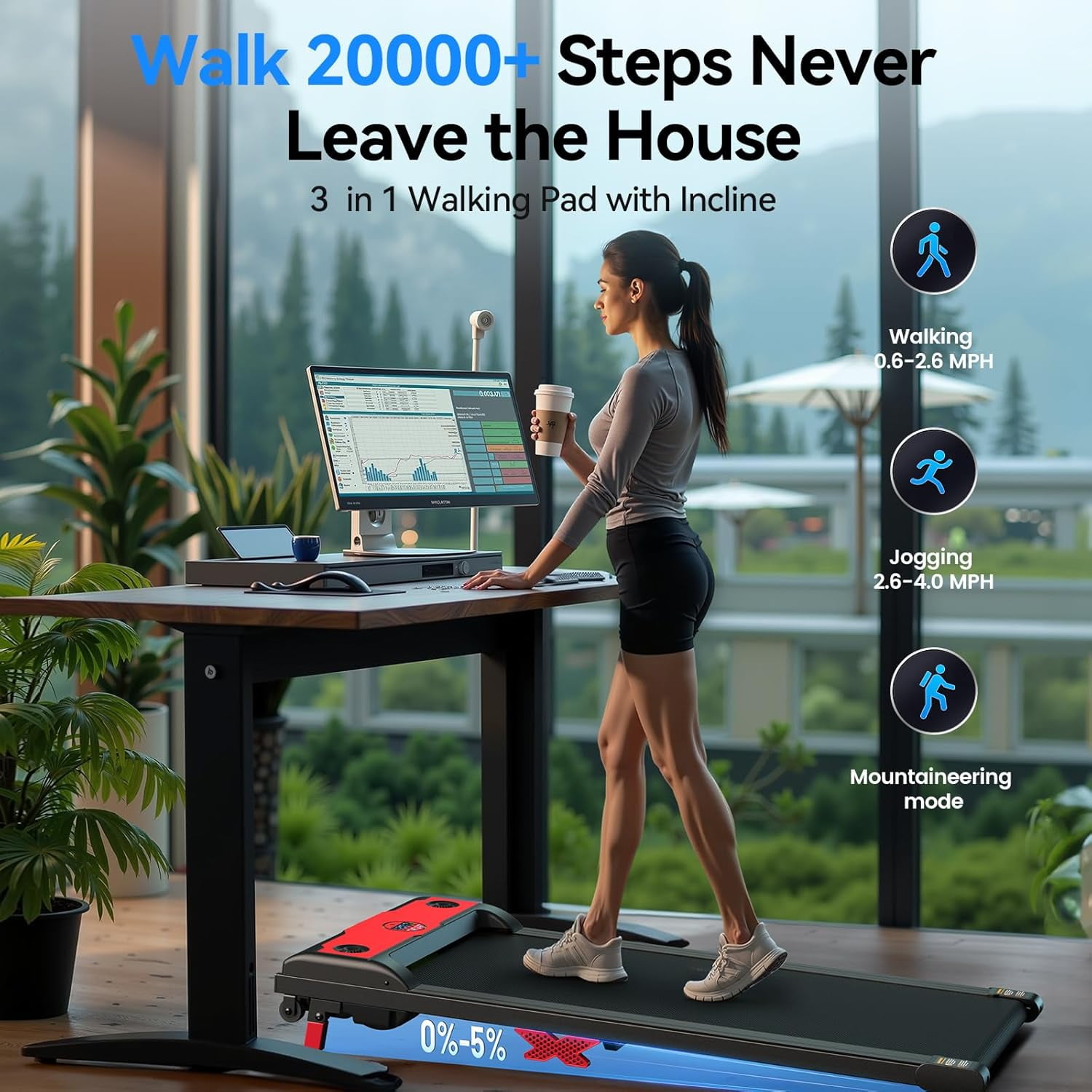 Walking Pad with Incline, 2.5HP Under Desk Treadmill, 3 in 1 Portable Treadmill with Remote Control, LED Display, Hidden Safety Switch, Mini Walking Jogging Machine for Home Office
