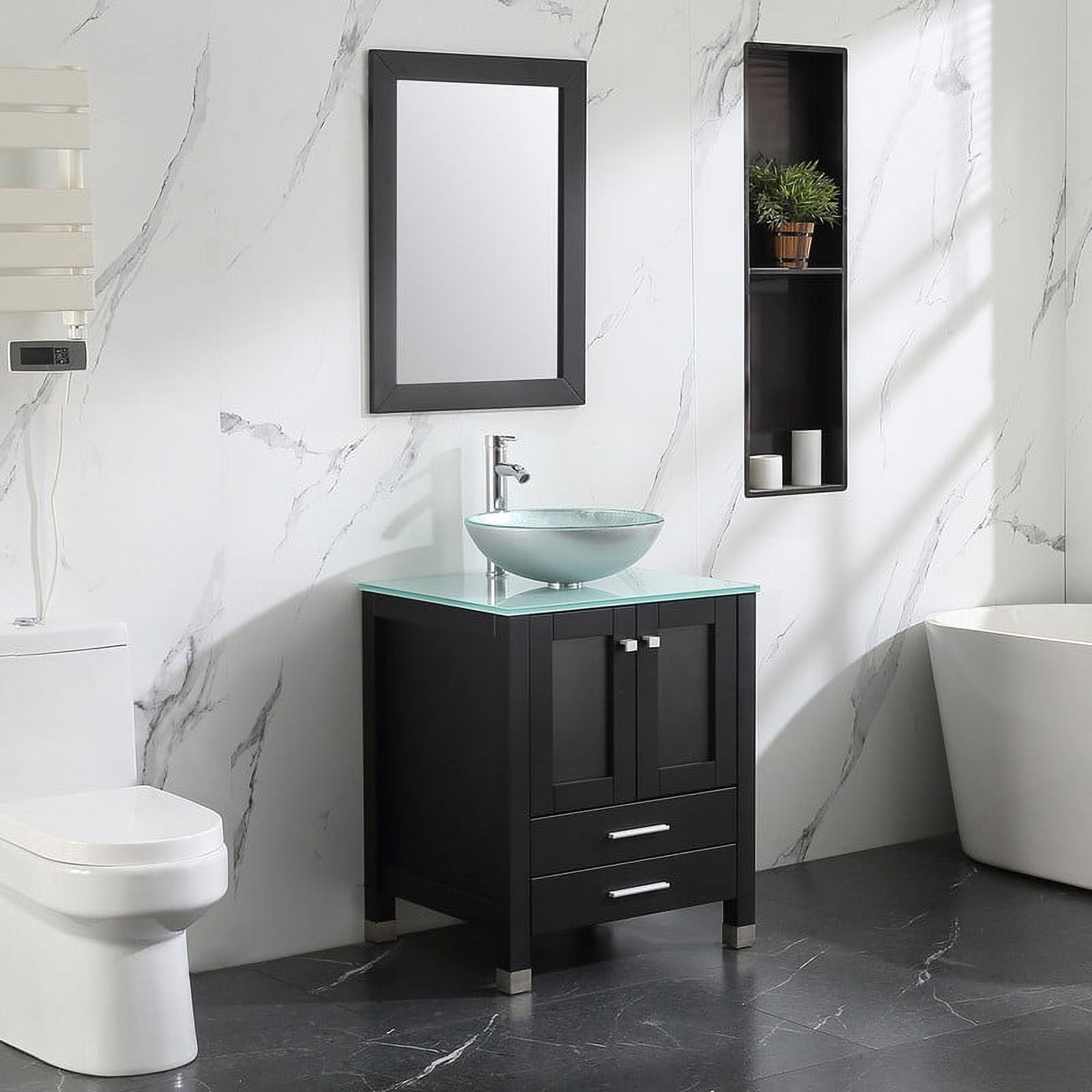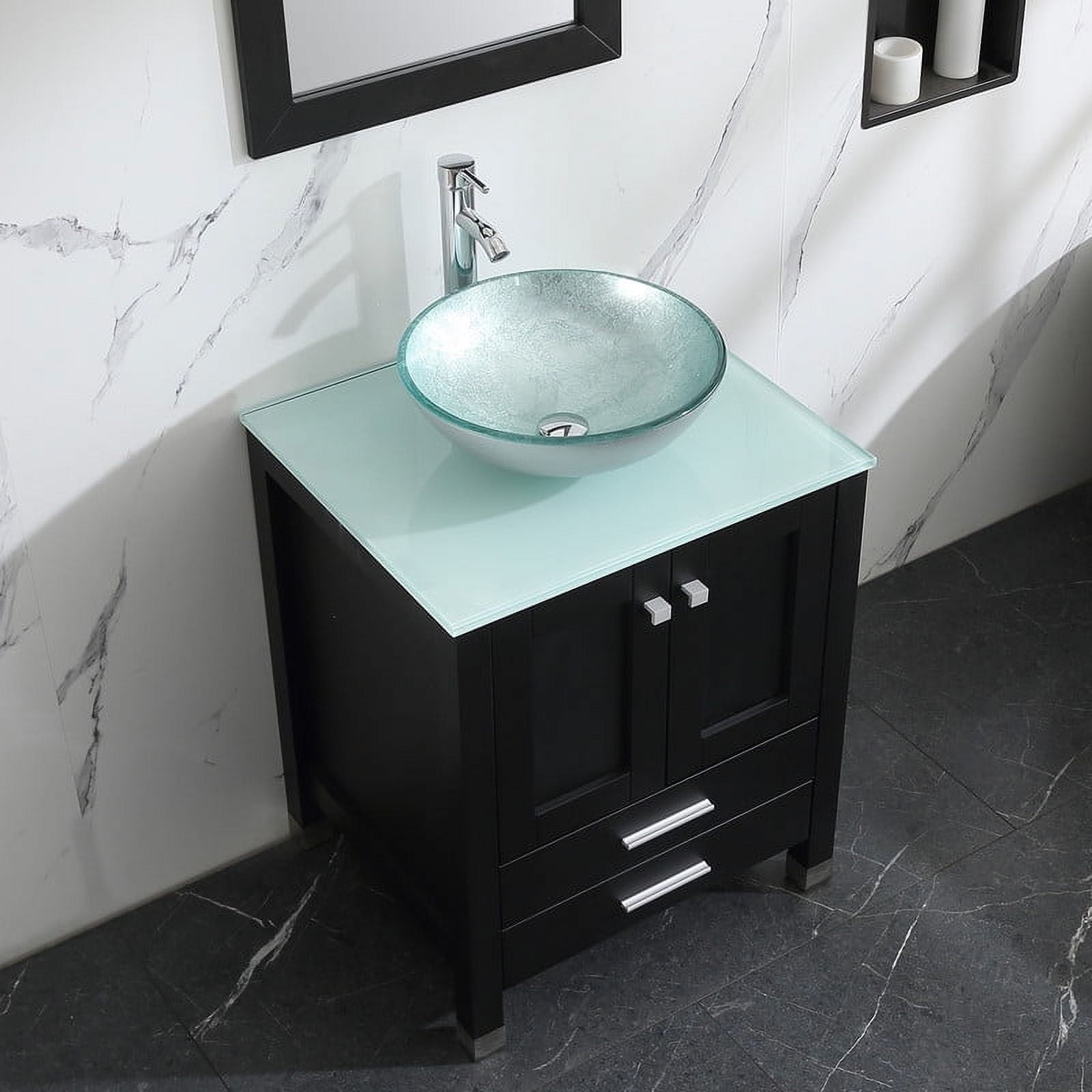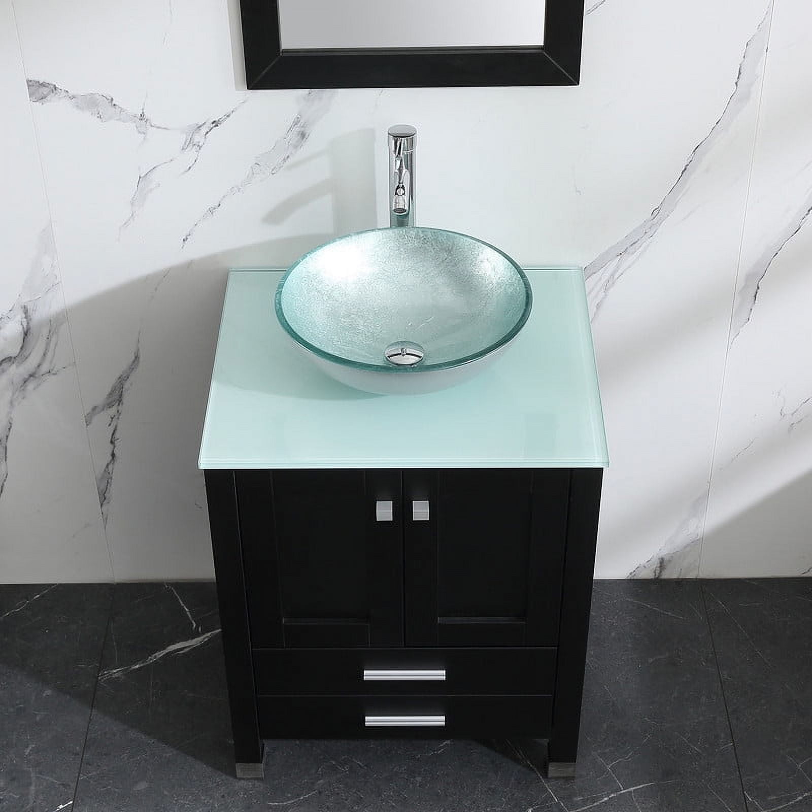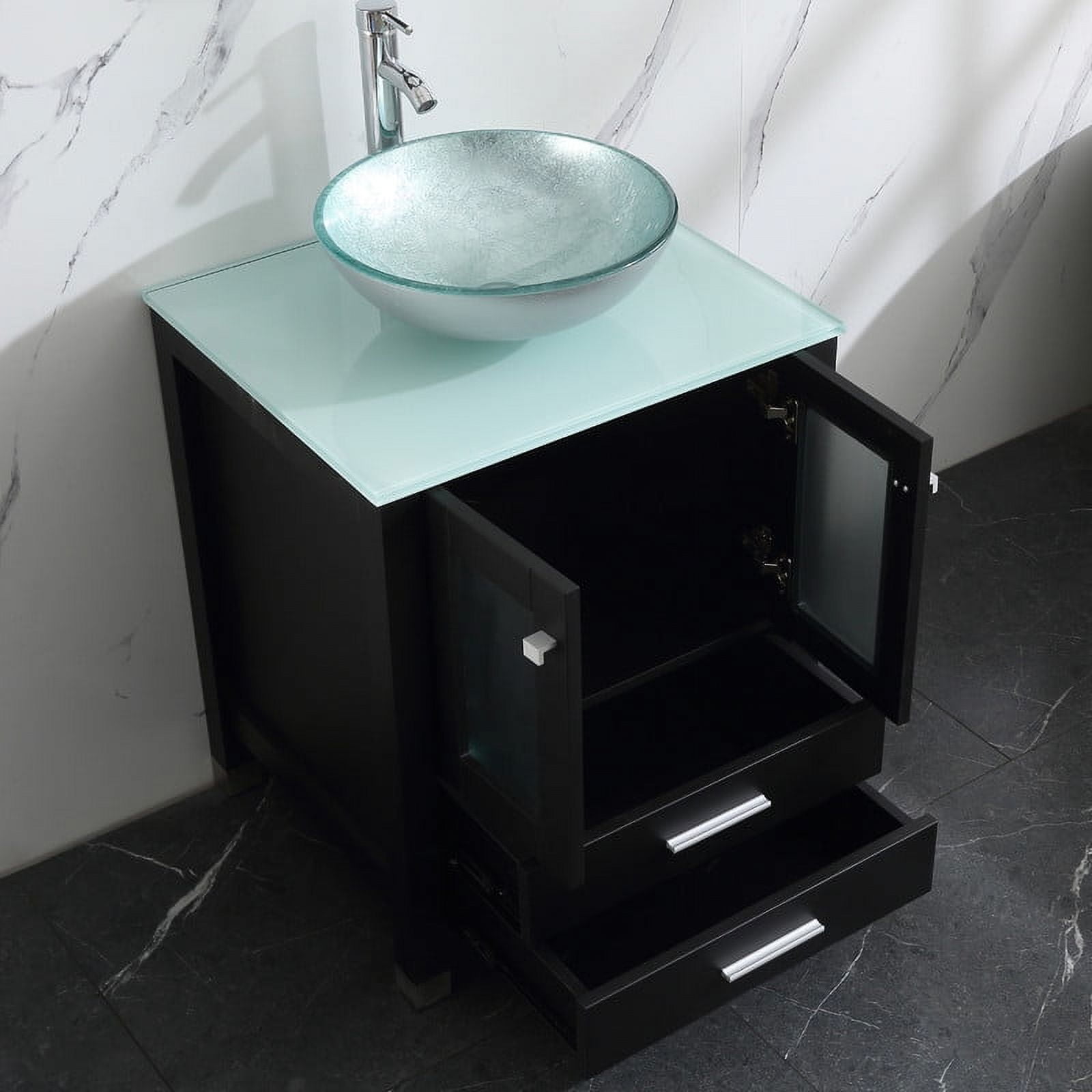 Walsport 24″ Luxurious Bathroom Vanity and Sink Combo Cabinet with Silver Glass Vessel Sink and Faucet Pop Up Drain,Black