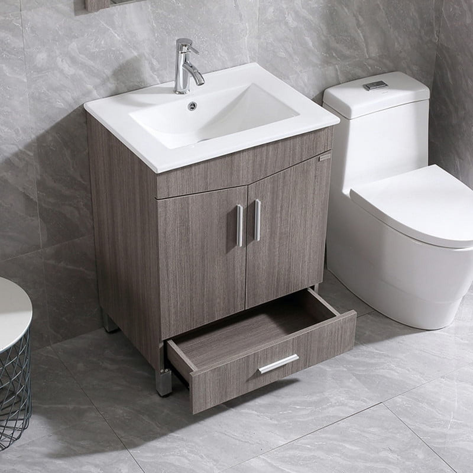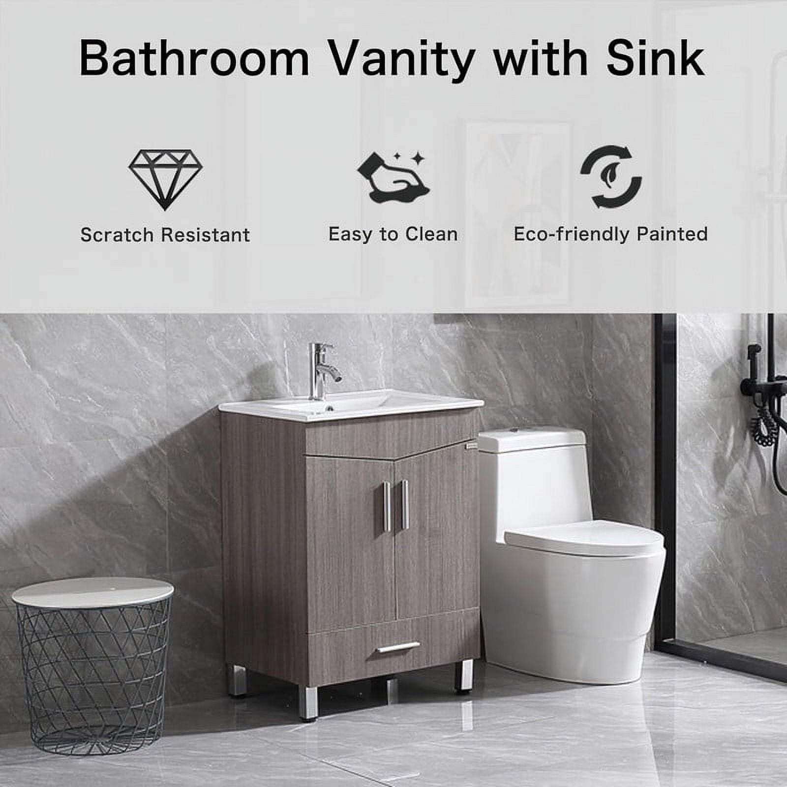 Walsport 24″ Luxurious Bathroom Vanity with Sink Combo/Mirror/Faucet Vanities Set Cabinet,Modern Bathroom Vanity Cabinet with Pop Up Drain,Wood Color