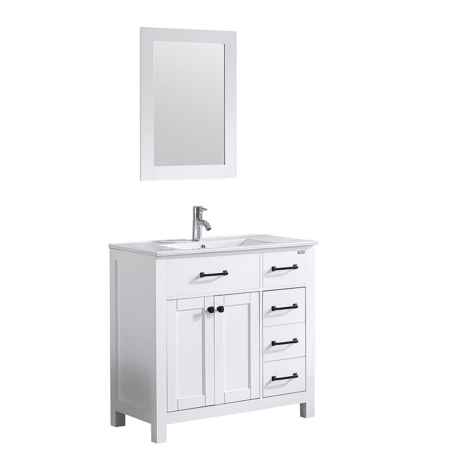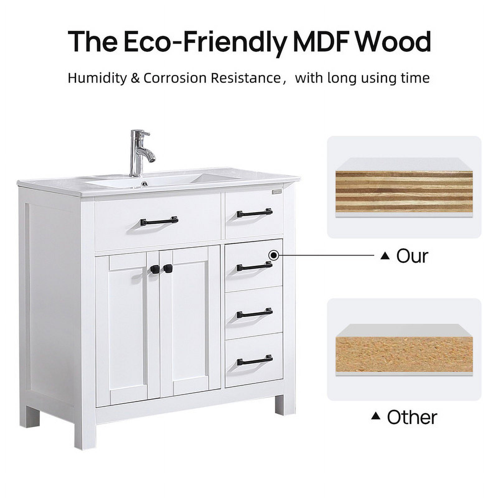 Walsport 36″ Luxurious Bathroom Vanity with Sink Top, Modern Bathroom Vanities with 2-Door and 5 Drawers Cabinet , Solid Wood Bathroom Cabinet with Undermount Ceramic Sink, White
