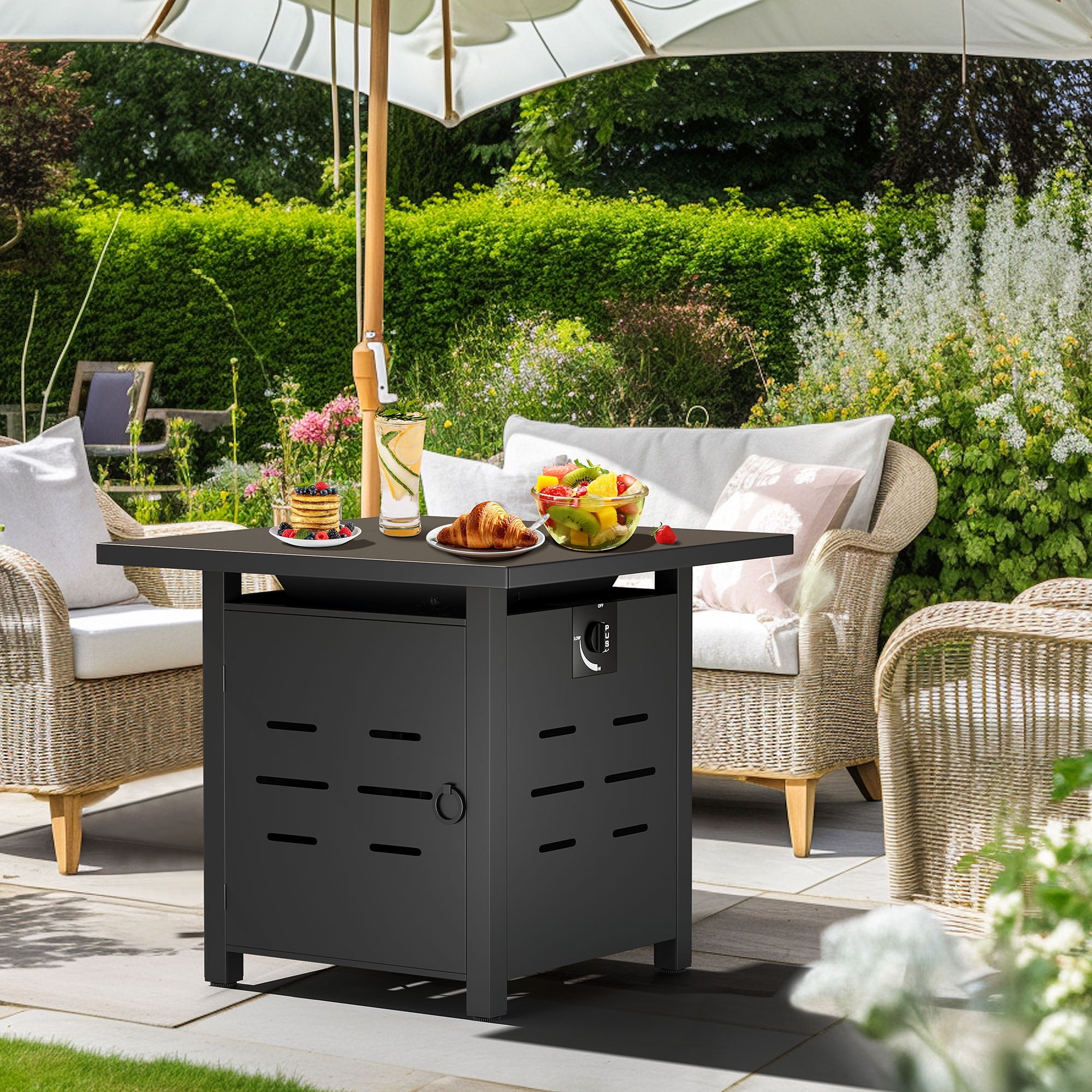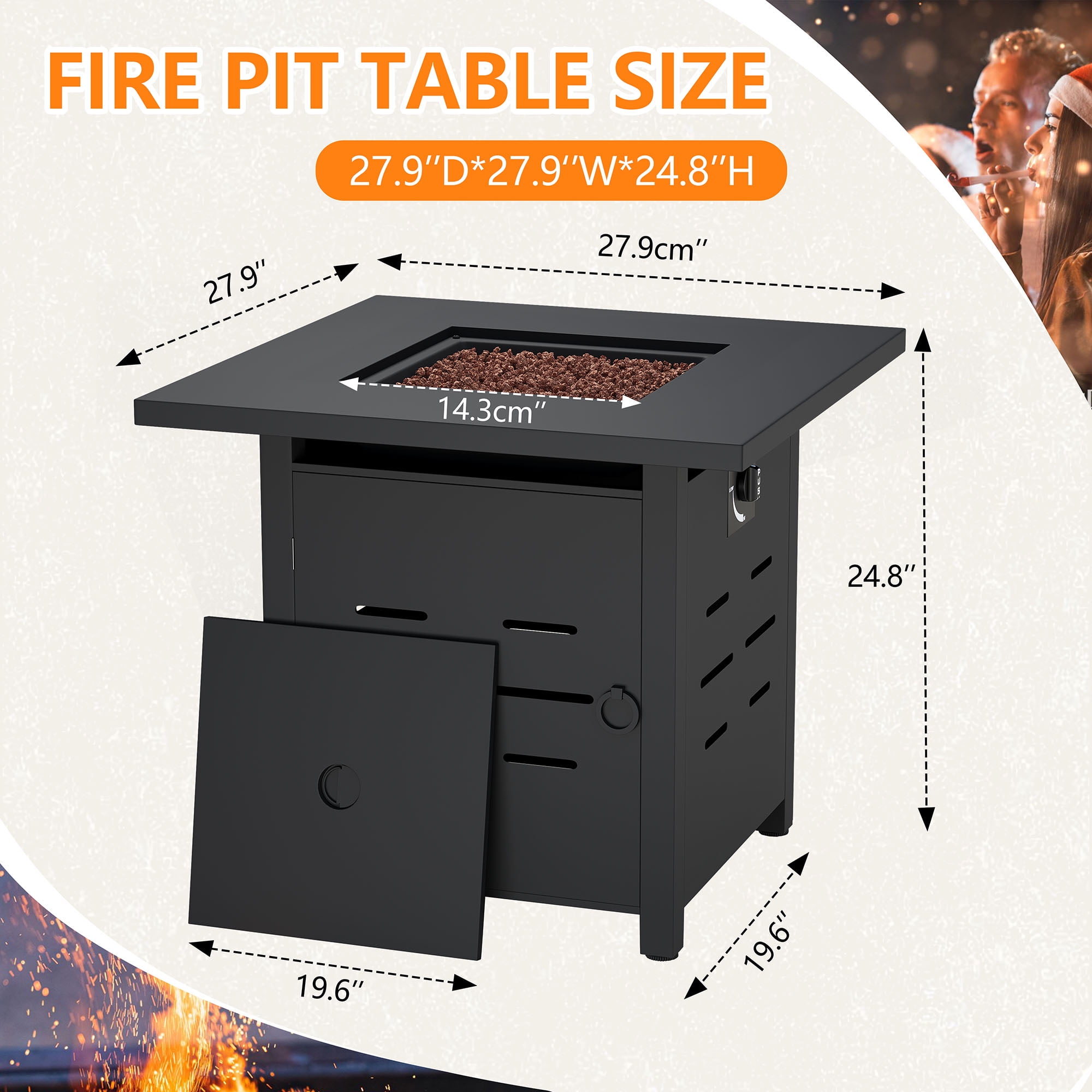 Walsunny 28 Inch Propane Gas Fire Pit Table 40000 BTU with Lid Square Firepit Table Lava Rock Fire Table with Waterproof Cover