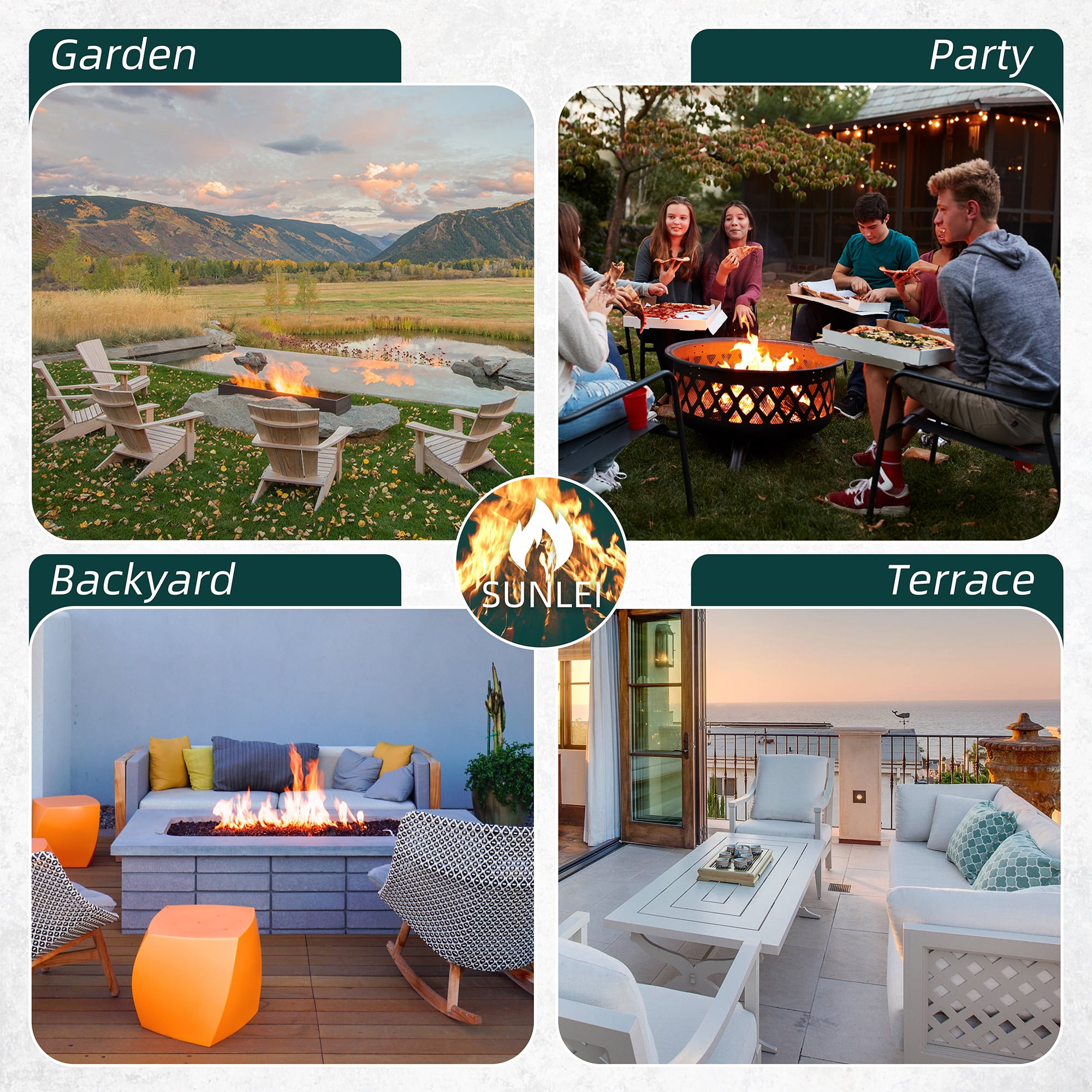 2-in-1 Versatile Design: This 2-in-1 propane fire pit table features an elegant lid that allows for easy conversion. Remove the lid to light a fire and create a warm fire pit; put the lid back on to create a stylish side table, perfect for drinks and food, creating an ideal outdoor dining space. Create a Romantic Gathering Atmosphere: Imagine sitting around this gas fire pit table with your family and friends on a cool night, toasting and chatting under the warm firelight. The soft flames create a pleasant and romantic atmosphere, adding infinite romance to your patio or terrace. Stylish Rattan Exterior: This fire pit table features a classic rattan design that blends naturally into the outdoor environment. It has exquisite glass stones built in, which reflect the bright light when the flame is lit, presenting a stunning visual effect. Clean & Powerful Warmth: Say goodbye to smoke, ash, and heavy wood with this fire pit table! Turn the knob to ignite for a clean burn with an adjustable flame. With up to 50,000 BTU of heat output, this outdoor patio fire pit table provides warm, comfortable, surround heat that is safe and reliable. Sturdy and Durable Thoughtful Configuration: The main body of Walsunny 45 inch propane fire pit table is made of durable steel and is durable. This large gas fire pit table is equipped with brilliant glass stone, safety wind shield, multi-functional cover and waterproof protective cover (for easy storage). (Note: propane gas tank needs to be purchased separately) Specifics: Assembled Size: 45″L x 22.8″W x 24.4″H Package Weight: 92.4 lb Package Includes: 1 x Fire Pit Table 1 x Rain Cover 1 x Removable Pit Lid 1 x Lava Rocks 1 x Assembly Instruction Note: Equipped with a PVC protective cover to protect from rain and dust. With beautiful blue glass beads. Propane gas tank needs to be purchased separately.