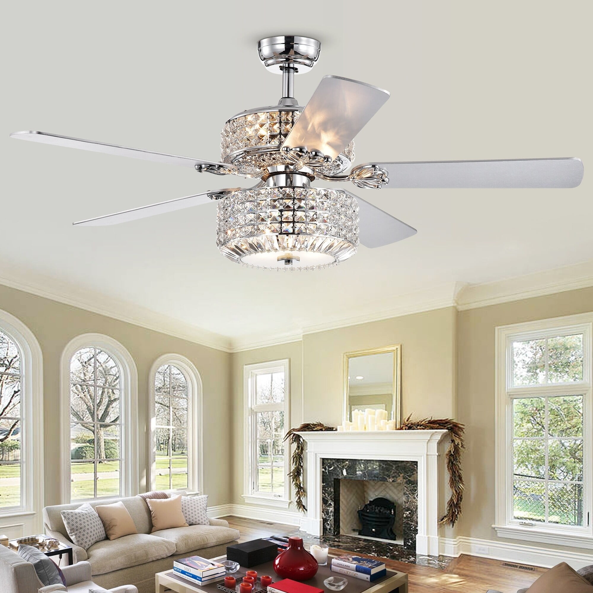 Walter Dual Lamp Chrome 52-inch Lighted Ceiling Fan w Crystal Shades (includes Remote and Light Kit)