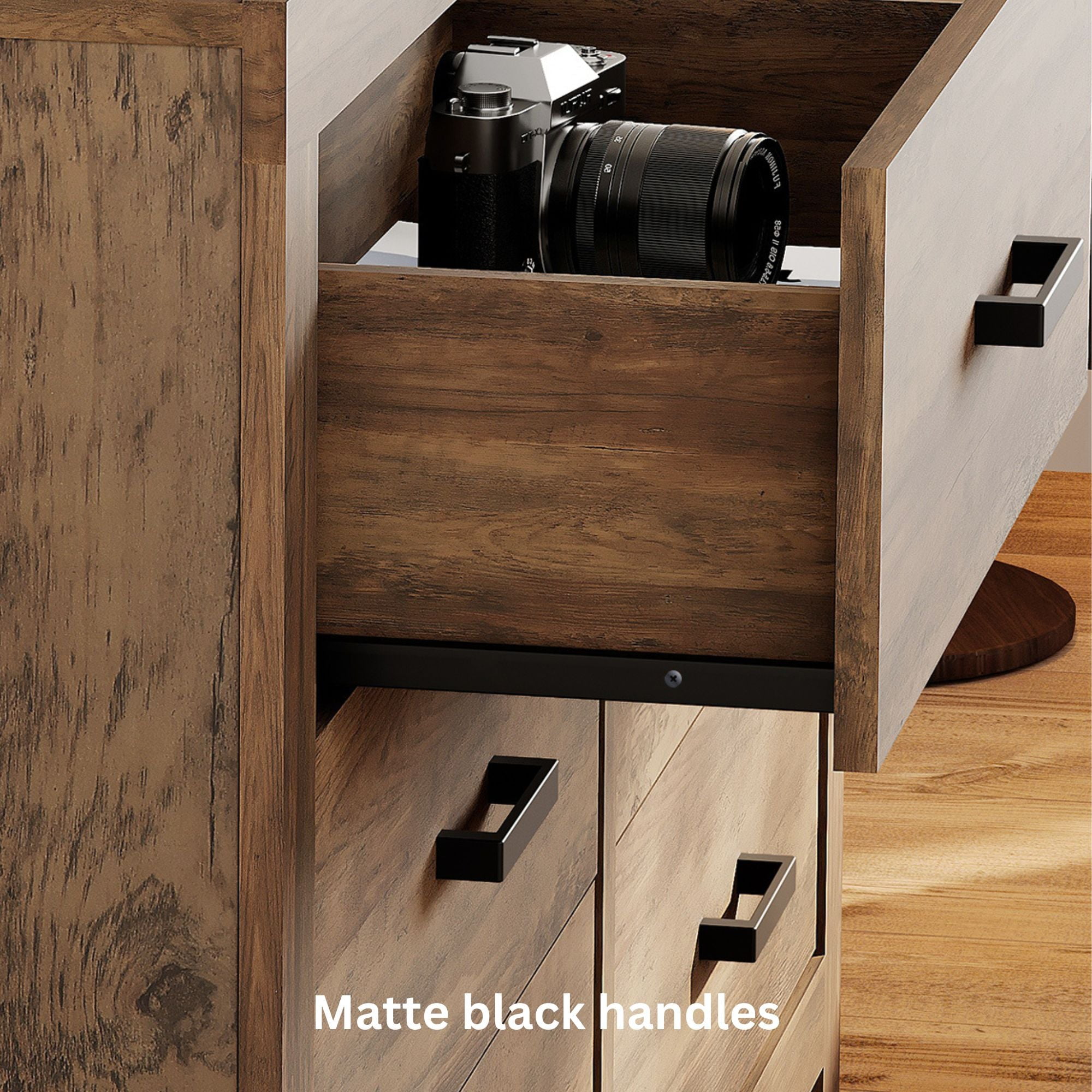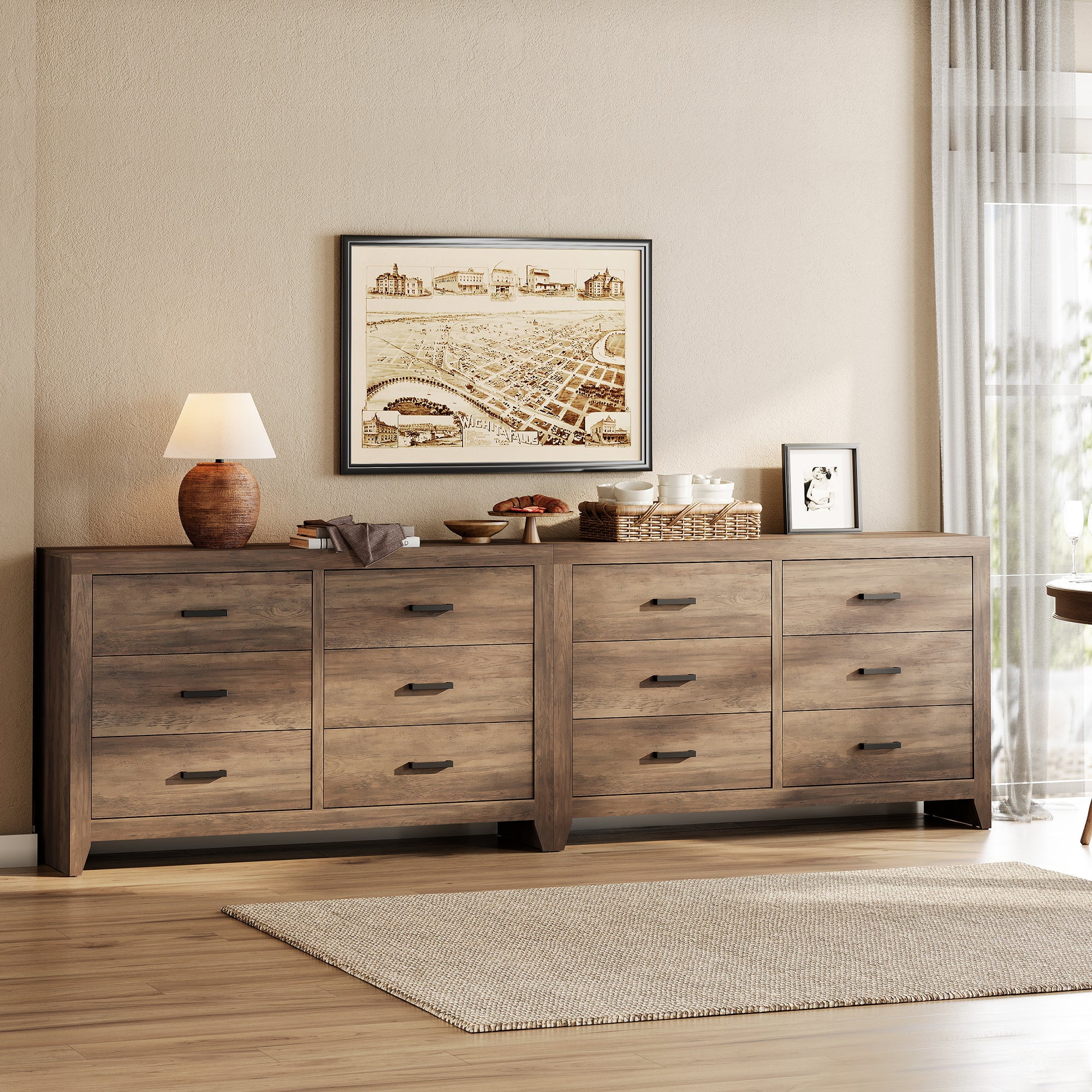 ASSEMBLED DIMENSIONS & WEIGHT: This dresser measures 106.3″W x 15.3″D x 33.1″H and weighs 291 lbs. It arrives in two box with all pieces ready for assembly. CONTEMPORARY DESIGN WITH FARMHOUSE FLAIR: Designed to save space, this dresser features 12 spacious drawers and a sturdy top that can hold up to 110 lbs, all finished in a rustic brown tone for a cozy, rustic vibe. BUILT TO LAST: Crafted from non-toxic, laminated composite wood with a durable medium-density fiberboard backer, this dresser is built for long-term use. It’s also waterproof, easy to clean, and eco-friendly, making it a practical choice for any home.