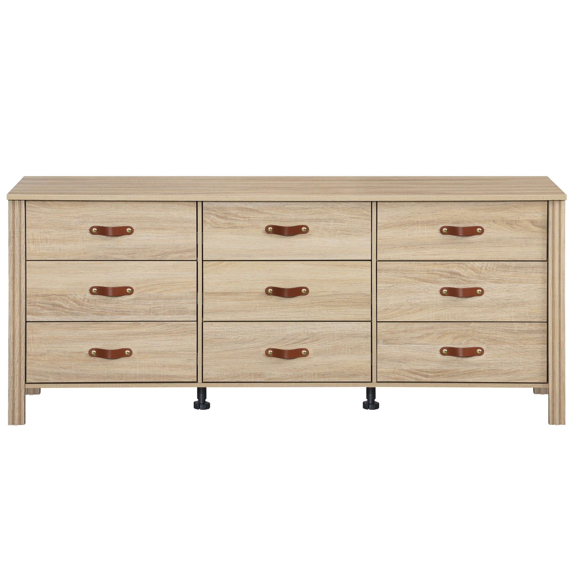 Color: Light Oak Featured with 9 Drawers to support large storage space It can be used as a bedroom nursery dresser, a storage unit or entryway organizer Crafted from high-quality wood to ensure stable construction Easy to Assemble with clear instructions Smooth wooden surface ensure easy to clean and maintain We provide one year warranty of this WAMPAT Farmhouse Dresser