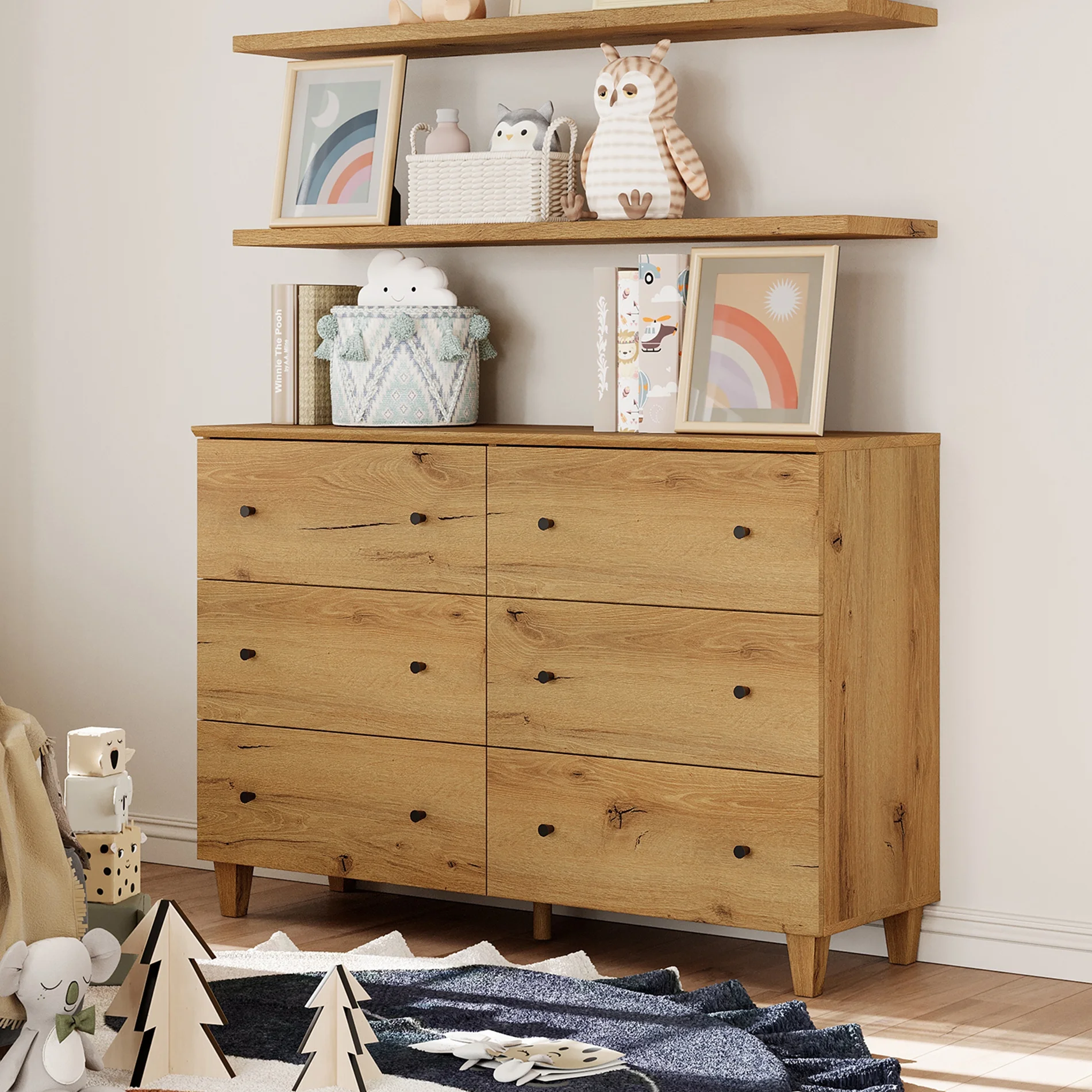 WAMPAT Wooden Dresser with 6 Drawers, Bedroom Modern Rustic Brown Chest of Drawers for Kids baby Room, Nursery