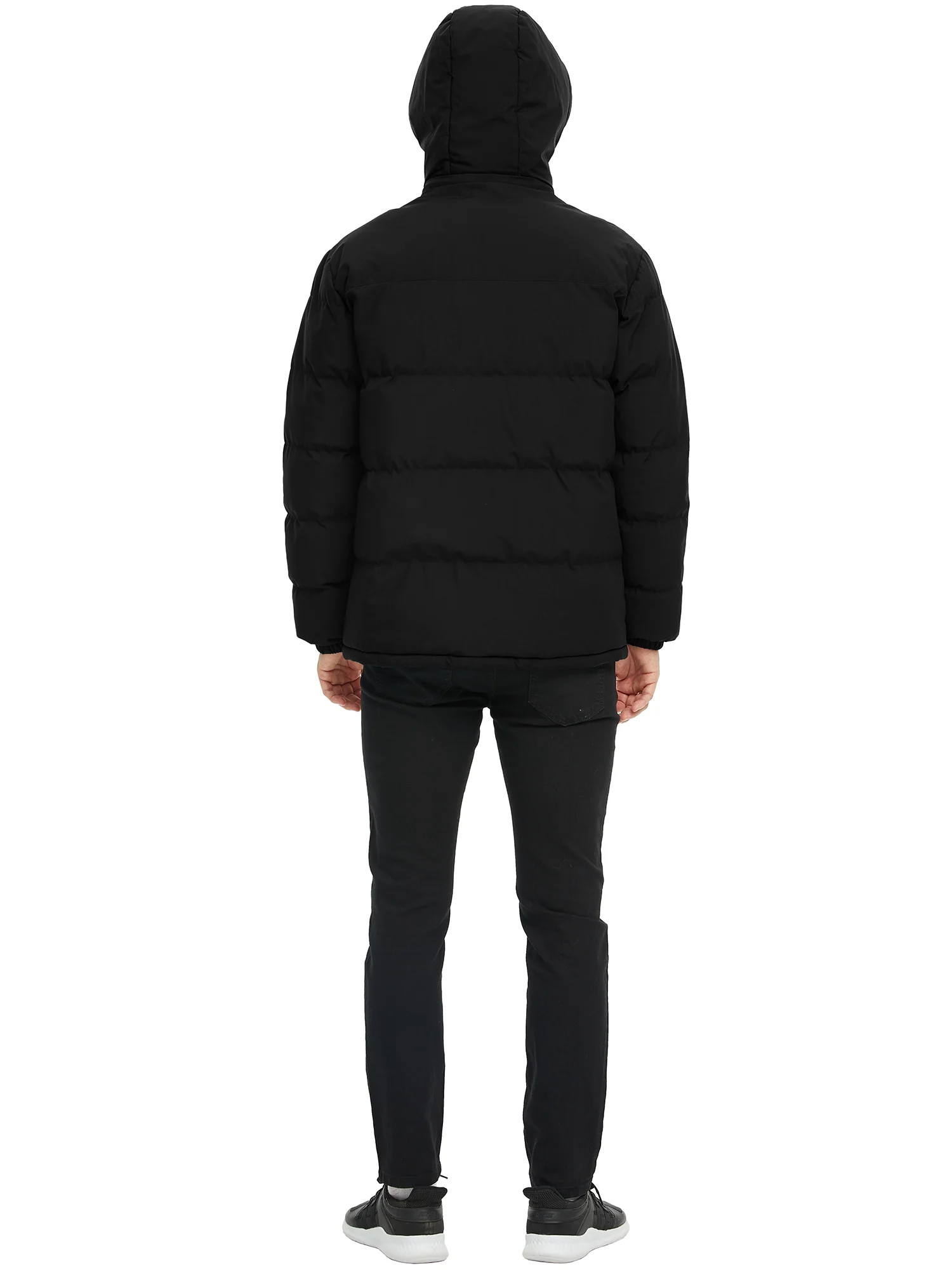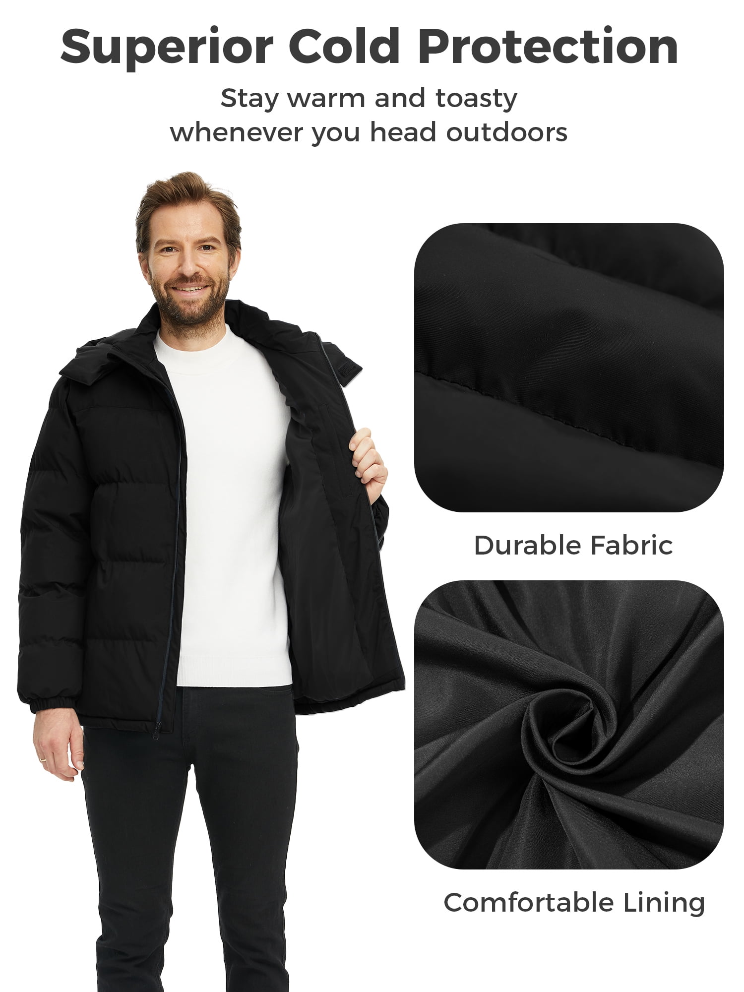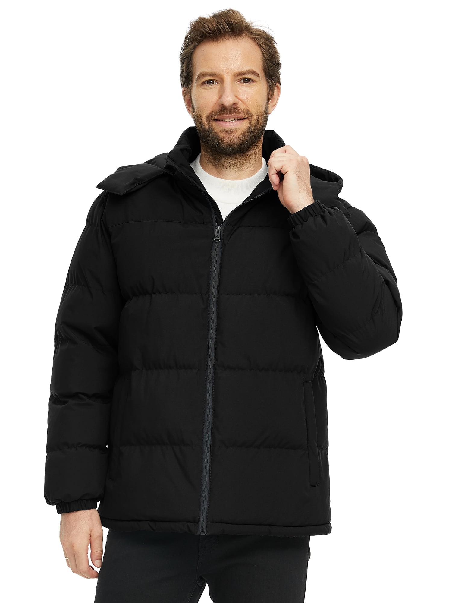 Wantdo Men‘s Winter Coat Recycled Puffer Jacket Waterproof Winter Jacket with Hood Black L