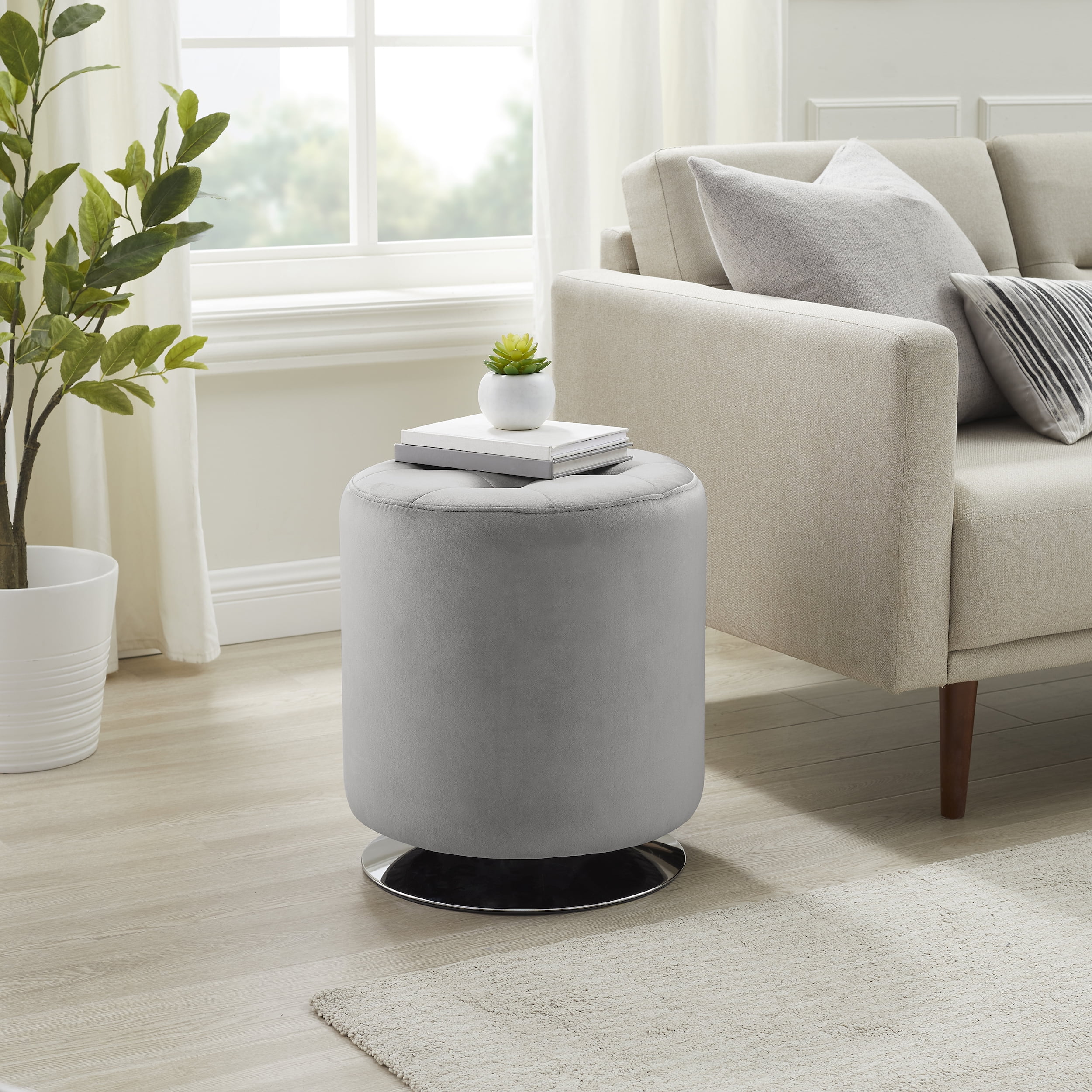 This Forza ottoman by Warehouse of Tiffany is the ultimate incomfort and style. Simple but elegant, its foamy leather, cubeshape and artisan work with accented crystals is great foraccentuating any decor for better ambiance. This ottoman stool with crystal accents is a versatile pieceof furniture that can be used as a footrest, an extra place to sitor an end table in your living room or bedroom. The crystal accentsin the tufts of the ottoman add a glamorous note to the room’sdecor. Set includes: One (1) ottoman Materials: Faux leather Finish: Upholstery: Cream faux leather Upholstery color: White Dimensions: 15 inches x 15 inches x 15 inches