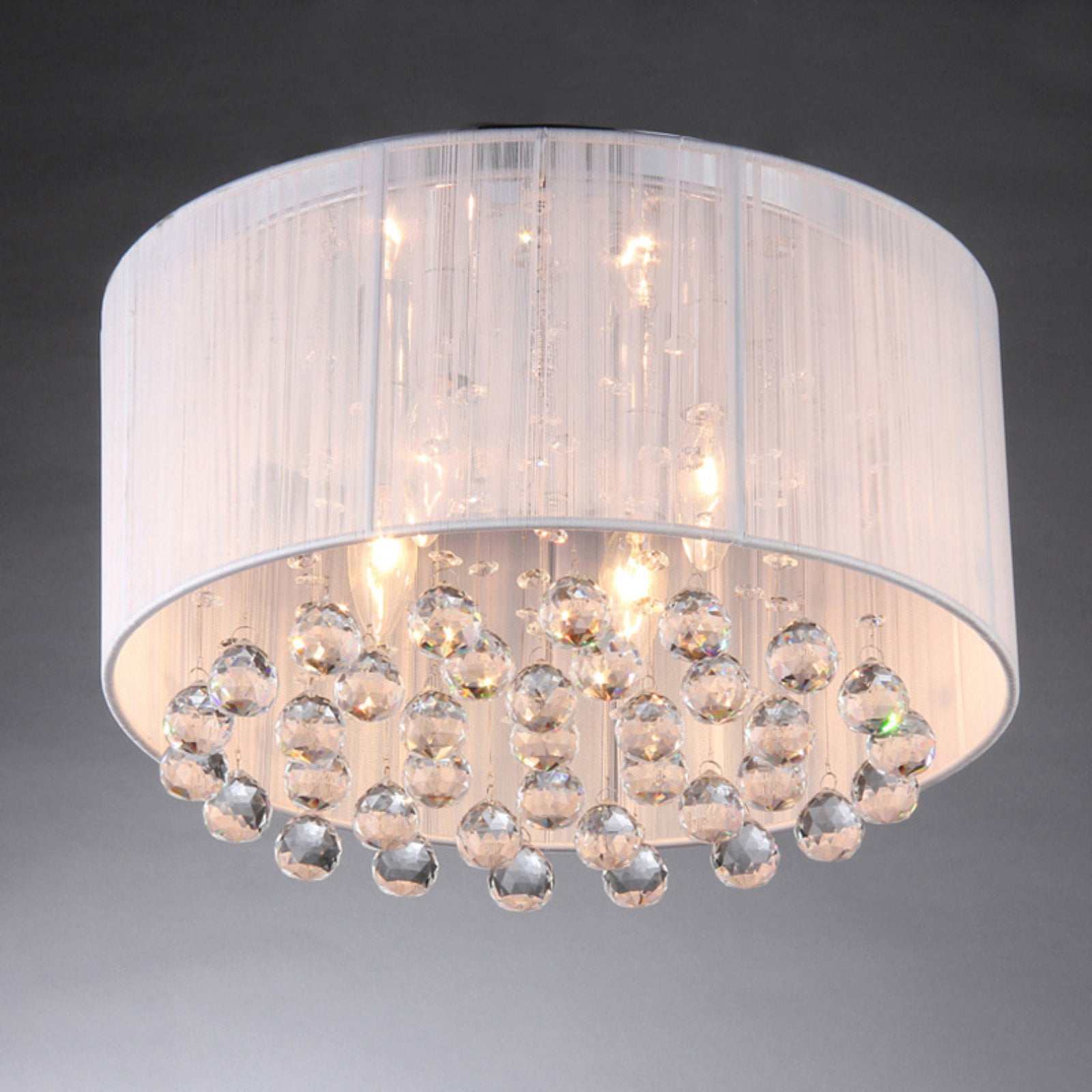 Give your room’s decor a dramatic focal point with this Optimus chandelier. The light fixture features a host of large crystals under the drum shade that catch the light and make the room sparkle. The chrome and white colors of this chandelier make it work well with almost any color scheme, giving you more options for your decor. Optimus Chandelier