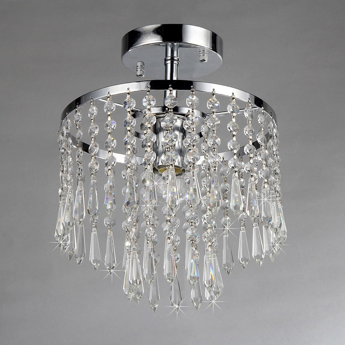 Add refined elegance to your home decor with the Seek Crystal Chandelier, featuring a glinting, high polish chrome finish. This dynamic lighting element features generous rows of cascading crystals to catch the single light on the inside. Details: Crystal and metal construction High polish chrome finish One (1) light Requires one (1) 60 watt bulb (not included) Measures 11 inches high x 11 inches wide x 6 inches long This fixture does need to be hard wired. Professional installation is recommended.