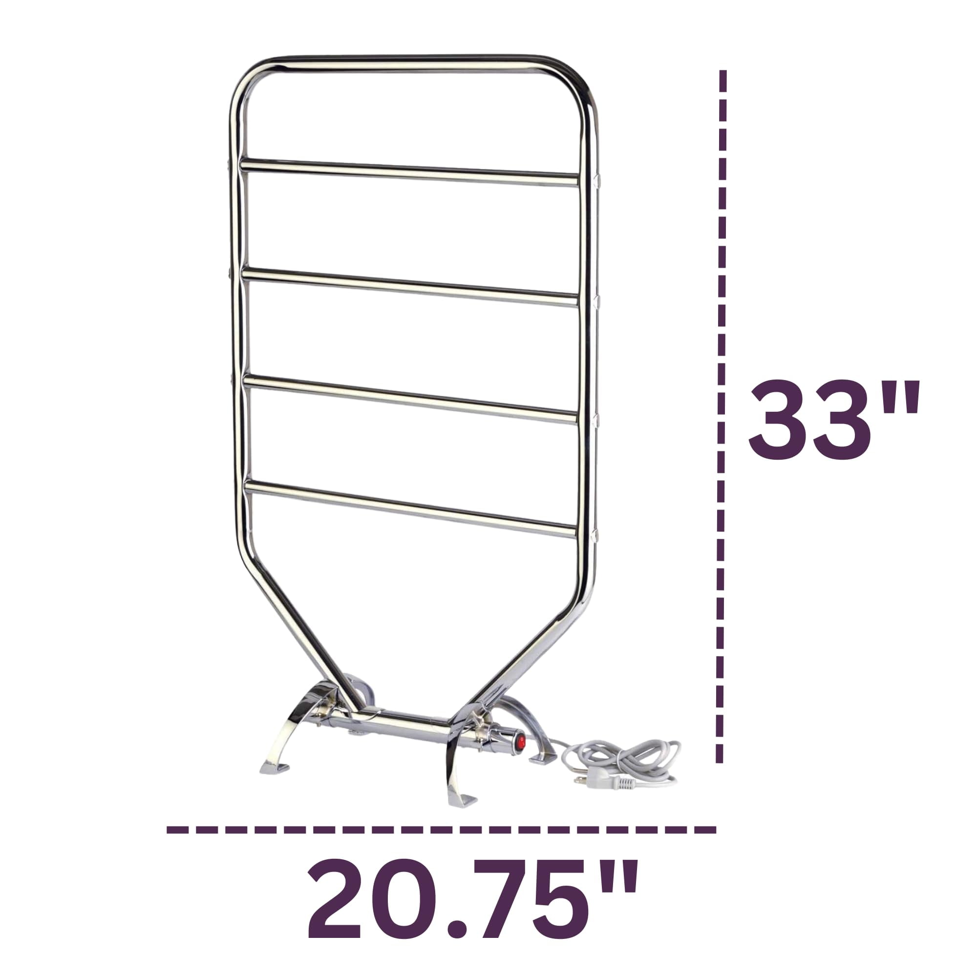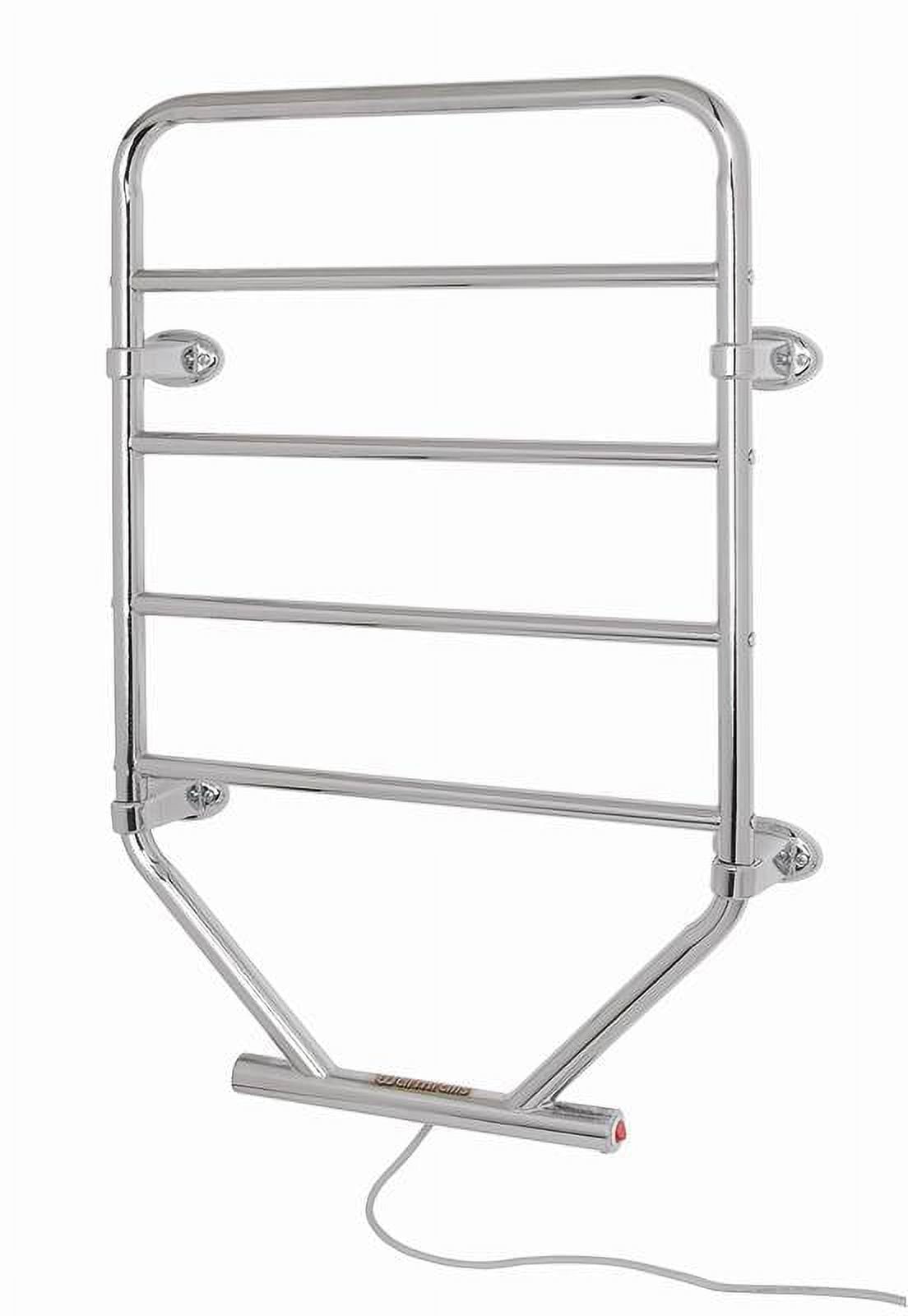 VERSATILE AND MULTIPURPOSE – This heated towel rack can be used to dry and gently warm towels, clothing, swimsuits, and more. Avoid cleaning up a soaking wet mess by quickly drying swimsuits and clothing garments using the Warmrails Traditional Towel Warmer. Or enjoy the luxurious feeling of stepping out of the shower and wrapping up in a warm, dry towel. Whether it’s used in a spa or a personal bathroom, this high-quality towel warmer is great for everyday use and will be enjoyed for years WALL-MOUNT OR FREE-STANDING – Looking to save space in your bathroom? This traditional towel warming rack can be mounted to the wall or remain free-standing! This sleek, chrome finish towel warmer looks modern and luxurious while still remaining practical and versatile. FAST HEATING AND DRYING – Warmrails Towel Warmers are designed to heat up in 15 – 20 minutes. This ensures that your towels and garments will dry much quicker than if they were placed on a regular rack or hook. The towel warming rack is used to dry towels and slightly warm them. Designed with safety in mind, the towel rack heats up enough to dry the towels quickly without getting hot enough to cause burns or safety risks. CONVENIENT AND ENERGY-SAVING – The slim frame saves space and allows it to be portable or wall mounted. The Filatherm dry element has an 80-Watt rating and uses less energy than the average light bulb. This towel warmer also saves water and energy by reducing the frequency of washings needed to keep towels clean and smelling nice. The towel warmer also has an illuminated on/off switch and a 7-foot power cord. The convenient towel warming rack requires minimal assembly and maintenance INSTALLATION AND USAGE – The WarmrailsTraditional towel warmer requires minimal assembly and includes installation instructions. The Towel Rack is designed to warm up to a safe temperature in order to quickly dry towels and clothing without giving off too much heat. It is not designed to heat the towels although they may warm up slightly during the drying process. The towels dry the quickest when they are not overlapping or stacked on top of each other.