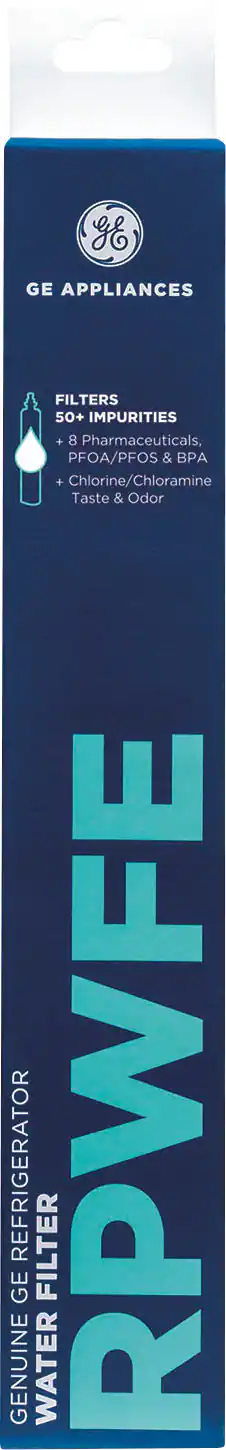 This GE RPWFE water filter removes trace pharmaceuticals, cysts, lead, mercury, asbestos and other contaminants to provide safe drinking water. Tool-free replacement makes it easy to install in your compatible GE French door refrigerator.