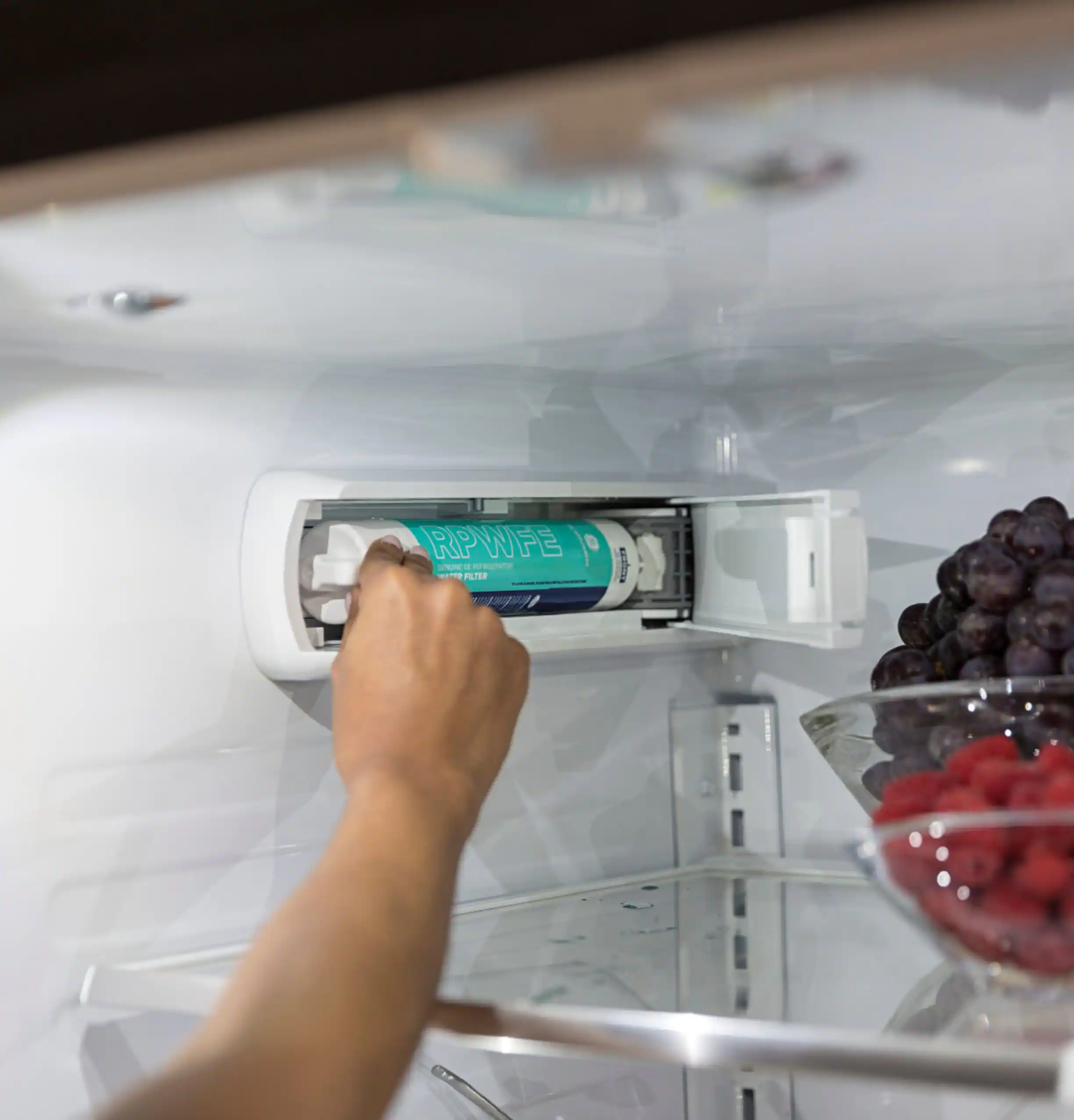 No tools or water-turnoff required to replace cartridge inside refrigerator