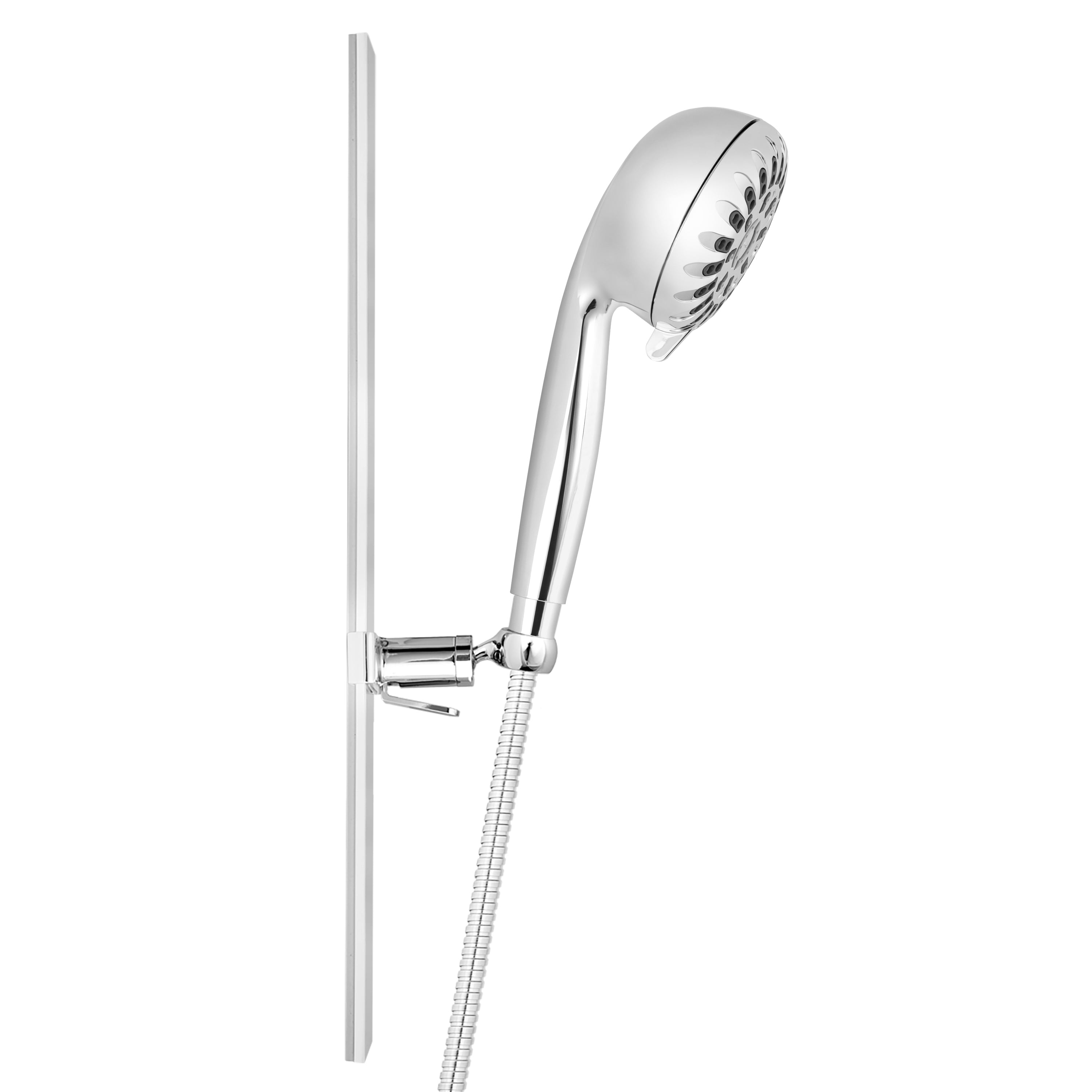 This innovative Waterpik shower system offers a sleek 20-inch metal rail with a sliding bracket and a powerful 7-mode shower head featuring PowerPulse. Now you can quickly customize your shower height by sliding the bracket up and down the rail in one simple motion. Made with rust resistant materials, the stainless-steel rail mounts flush to your shower wall for a contemporary and convenient look.