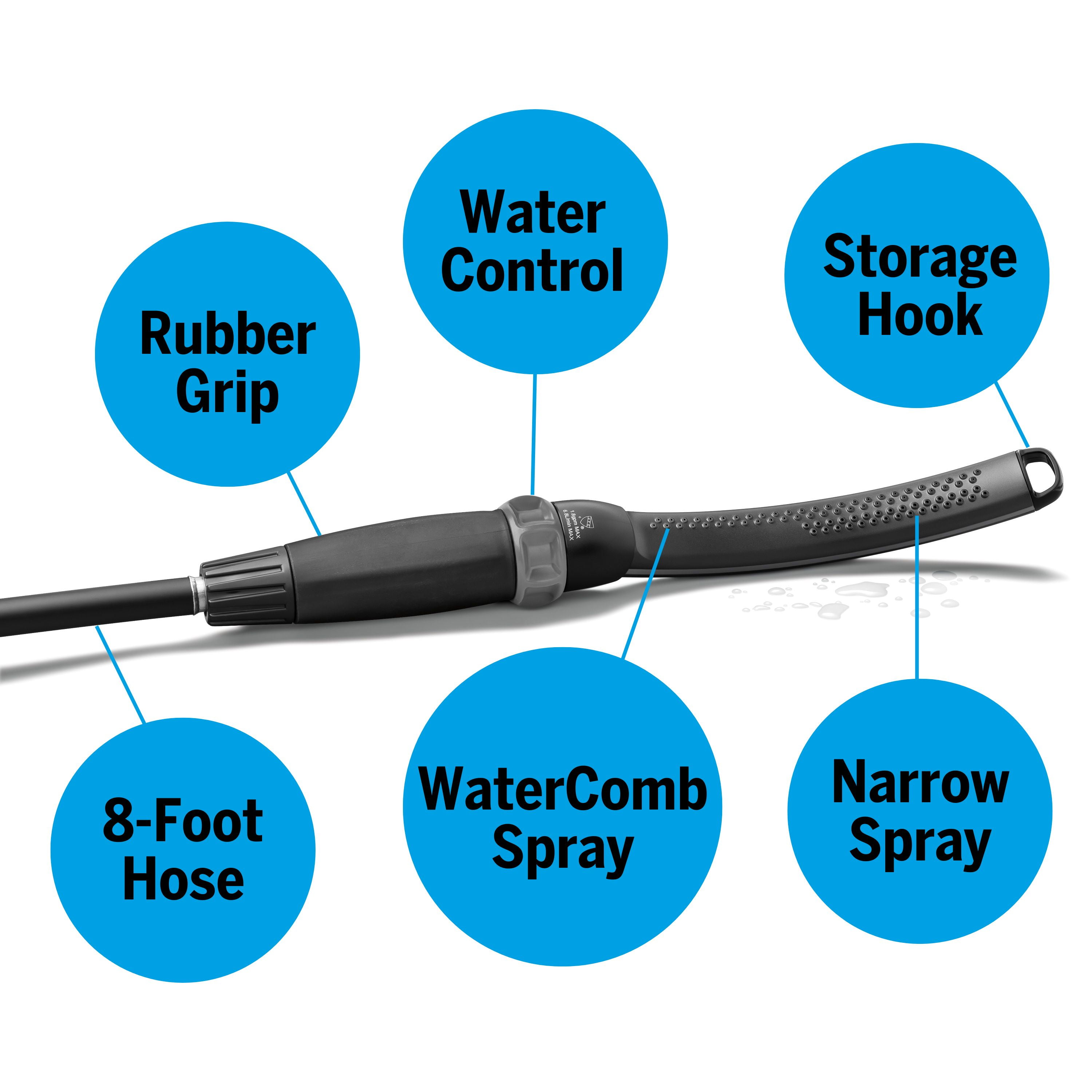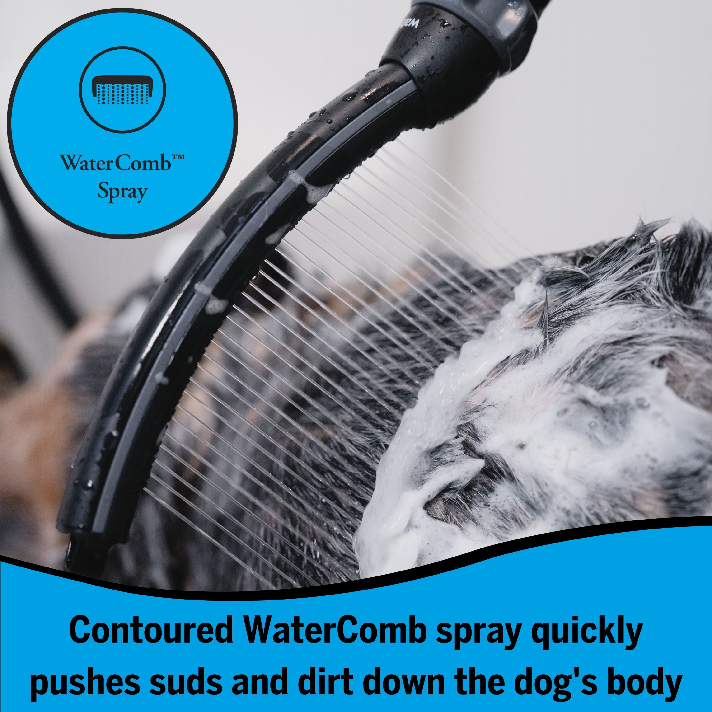 Contoured Shape for Dogs Diverter for indoor installation Easy Pause Waterpik Easy Select Spray Selector on Handle For all Dog Types Installs in Minutes Lifetime Limited Warranty One Handed Operation Ultra Flexible 8-Foot Hose