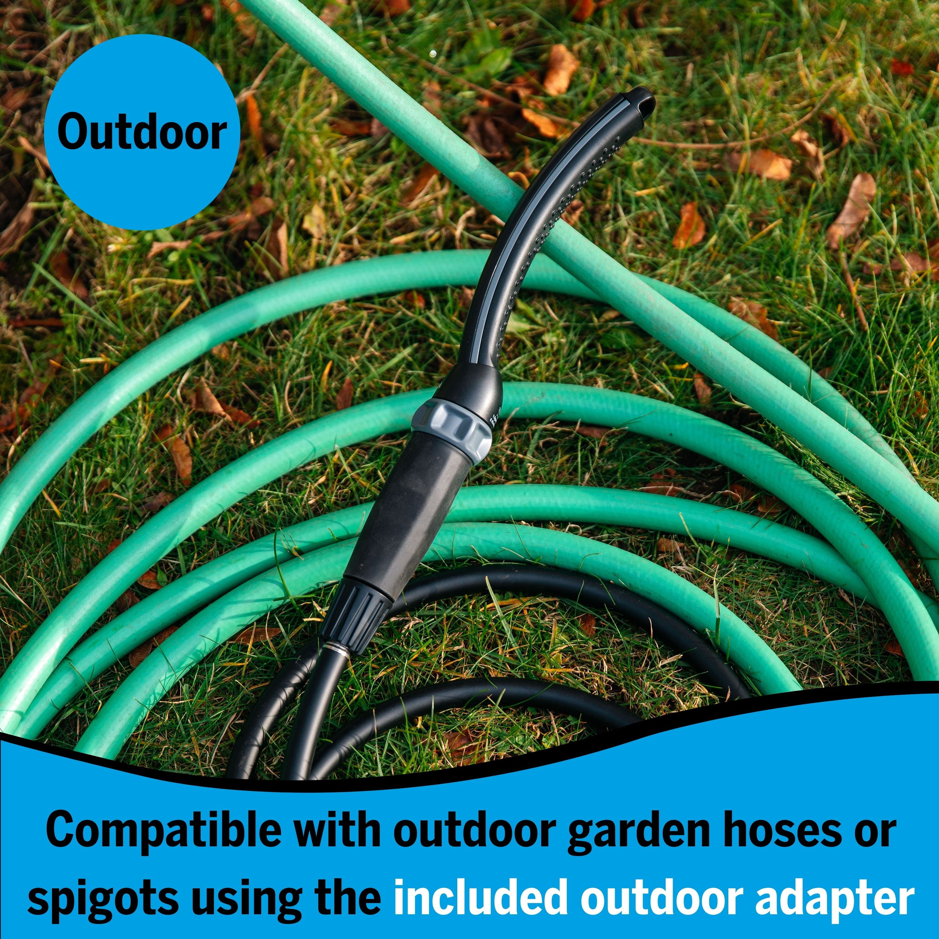 The Waterpik Pet Wand PRO Deluxe Dog Shower Attachment for indoor-outdoor use is designed with you and your dog in mind. Now you can have a professional grade product for a superior clean at home. The Pet Wand PRO Deluxe in Black features a unique WaterComb™ spray that provides maximum cleaning coverage and the power you need for effective rinsing of thick fur. It also includes a targeted narrow spray that is perfect for hard-to-reach or sensitive areas, and a bonus lick mat for spreadable treats to calm pets during bath time. For one-handed operation, the EasySelect™ dial allows you to control the spray settings, change water pressure, and even pause to a trickle. You can connect the Pet Wand PRO Deluxe to your existing shower – the convenient 2-way diverter lets you easily switch between the shower head and the Pet Wand PRO Deluxe. Or use it outdoors with the included outdoor adapter.
