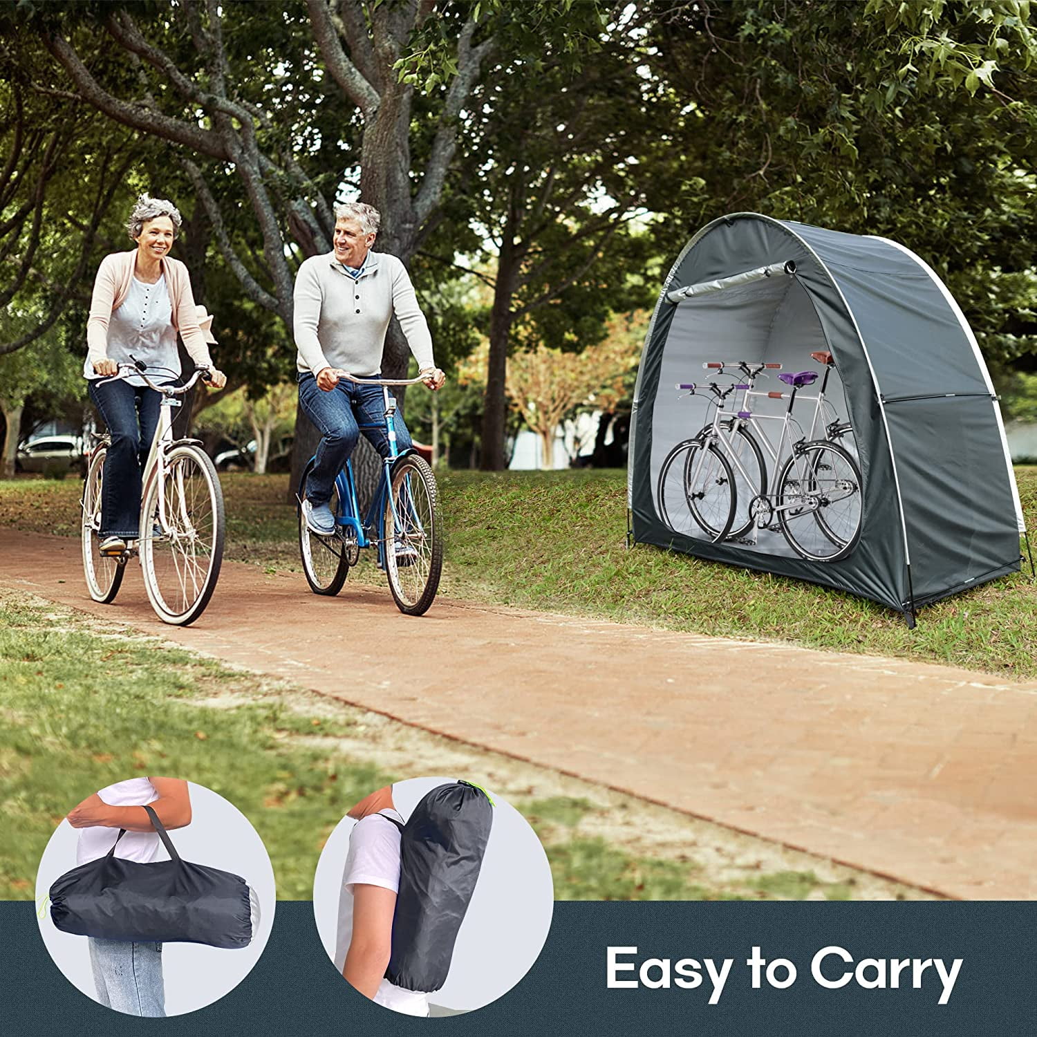 Large enough for 2-3 bikes Portable storage – home and away Bike storage and more for your Garden or Yard A practical low cost storage shelter Come with a handy carry bag 210D Durable Oxford Fabrics Extra Inside Pocket & Air Vent Window Quick & Easy to assemble Waterproof & UV protection & Snow protection & Windproof & Dustproof & Pest-proof
