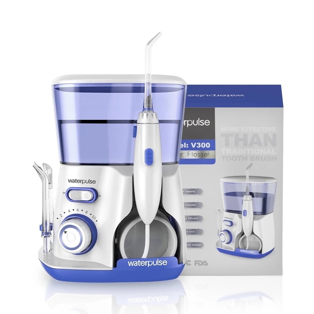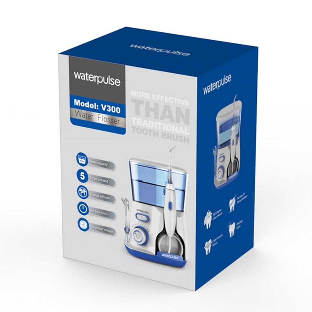 Features: 10 pressure settings with rotary knob for easy adjust, more effective to clean the hard-to-reach areas like massage and clean the gum line, crowns, cleaning between teeth and braces. Come with 5 interchangeable nozzles to meet your different cleaning demands, 3 standard nozzles for daily cleaning, 1 periodontal pocket nozzle for deep cleaning and 1 tongue scraper for tongue coating for fresh breath. 800ml large capacity water tank with dust-proof cover, no need to add water during flossing and can prevent dust entering into the tank, safe and clean. Specifications Plug Type: US Plug Color: Blue Water Tank Capacity: 800ml Pressure Settings: 10 Levels Water Pressure Range: 20~120PSI Main Unit Size: 163*125*212mm Package Included: 1* Oral Irrigator 1* Power Adapter 4* Interchangeable Nozzles 1* Tongue Scraper 1* User Manual