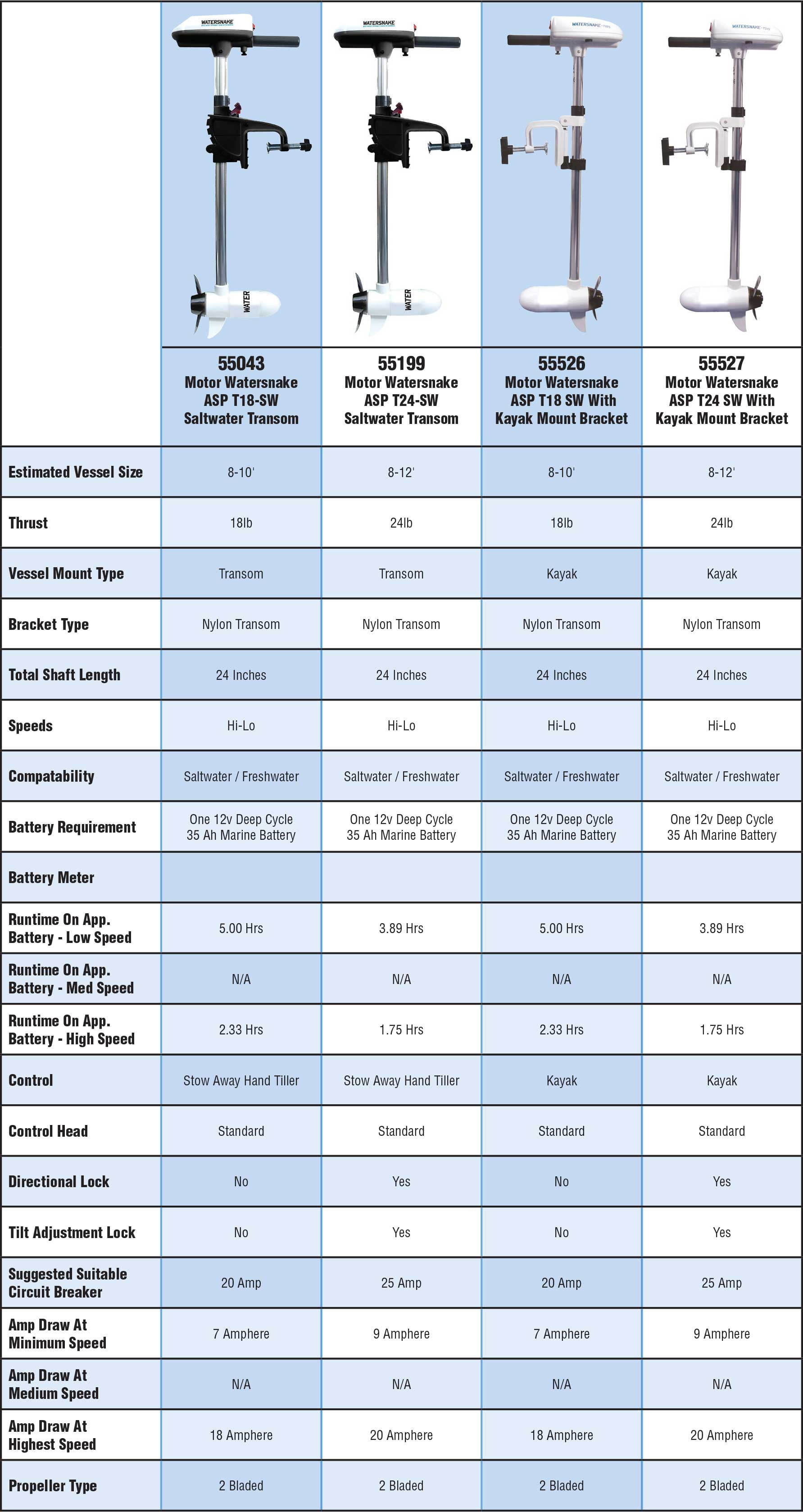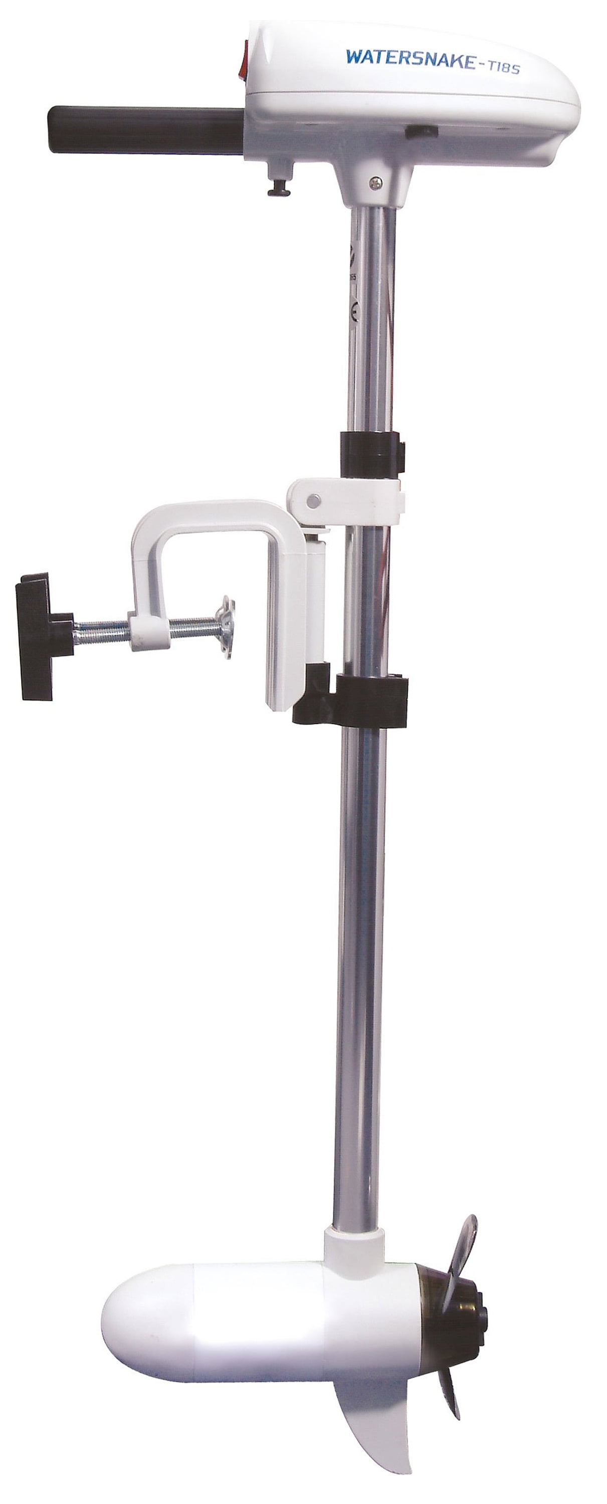 Watersnake Freshwater Handle Bar Steer 24″ Shaft 18 lb Thrust Electric Transom Mount Trolling Motors Universal design suitable for most kayaks Adjustable kayak mount fitting for easy installation Anti-impact clip system for added durability High and low speed control with two speed settings Forward and reverse switch for versatile operation