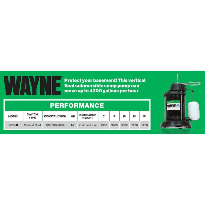 Wayne 1/2-HP 120-Volt 72-GPM Thermoplastic Submersible Sump Pump