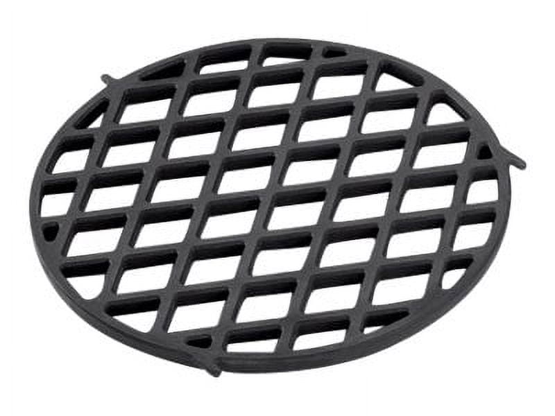 Weber 8834 Gourmet BBQ System Sear Grate: Cast iron sear BBQ grate Delivers professional sear marks that seal in moisture and flavor Porcelain-enamel finish prevents sticking and allows for easy clean ups Retains heat For use with the Gourmet BBQ System Hinged Cooking Grate The Weber sear grate fits 22.5″ Weber charcoal grills For more information about this Weber product, please call 1-800-446-1071